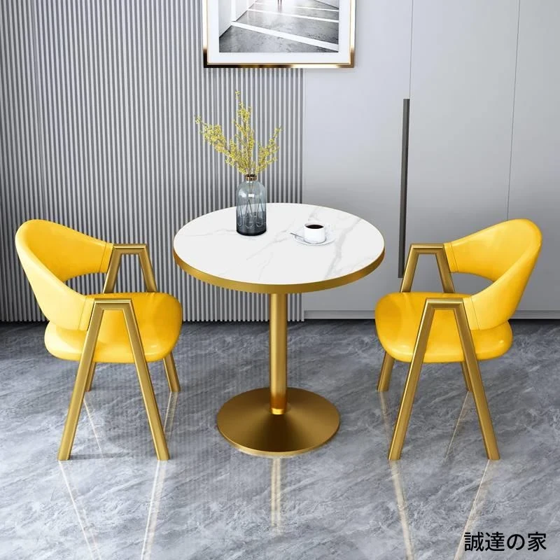 軽奢感溢れる岩板製ダイニングテーブルセット!商談や接客にも最適なモダンな大理石の小さな丸テーブル。おしゃれな売り場で注目を集める、快適なリラクゼーション空間を演出します!