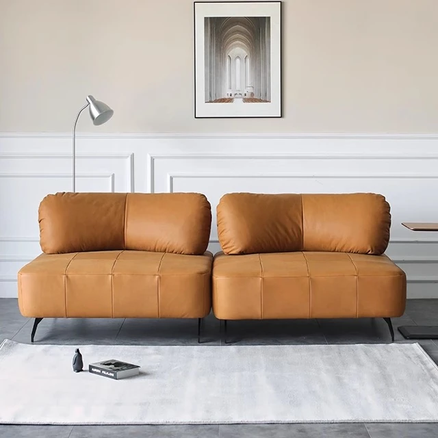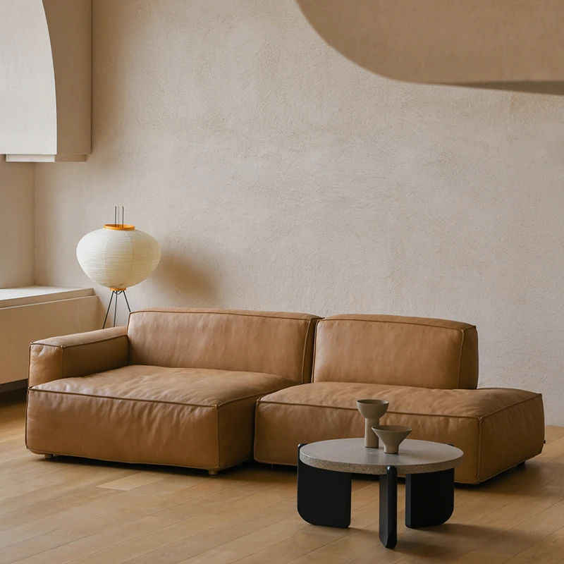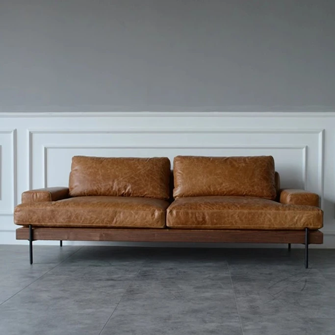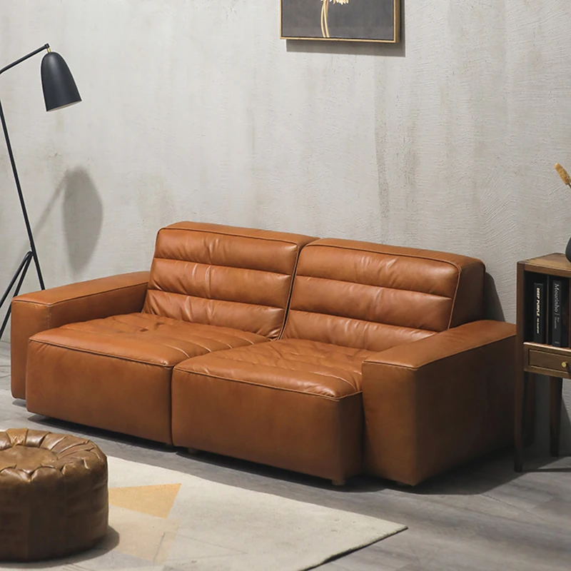 Nordic Genuine Leather Sofa - Top Layer Cowhide Vintage Modular Corner Sofa for Living Room, Retro Style American Design, Perfect for Cozy Spaces