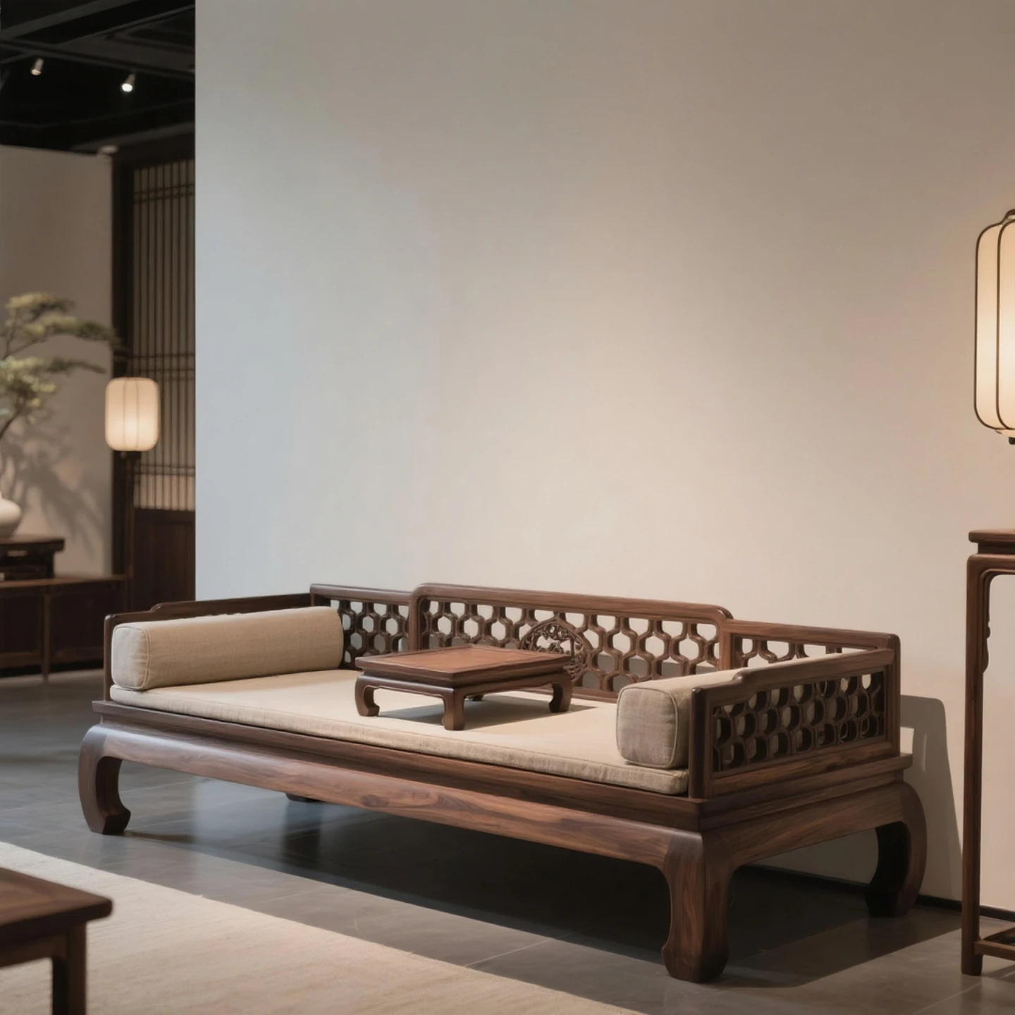 New Chinese Style Solid Black Walnut Sofa Set with Ash Wood Luohan Bed - Zen Sofa Bed for Living Room and Tea Room
