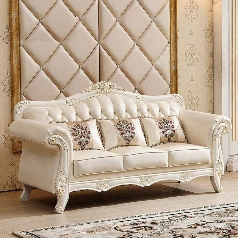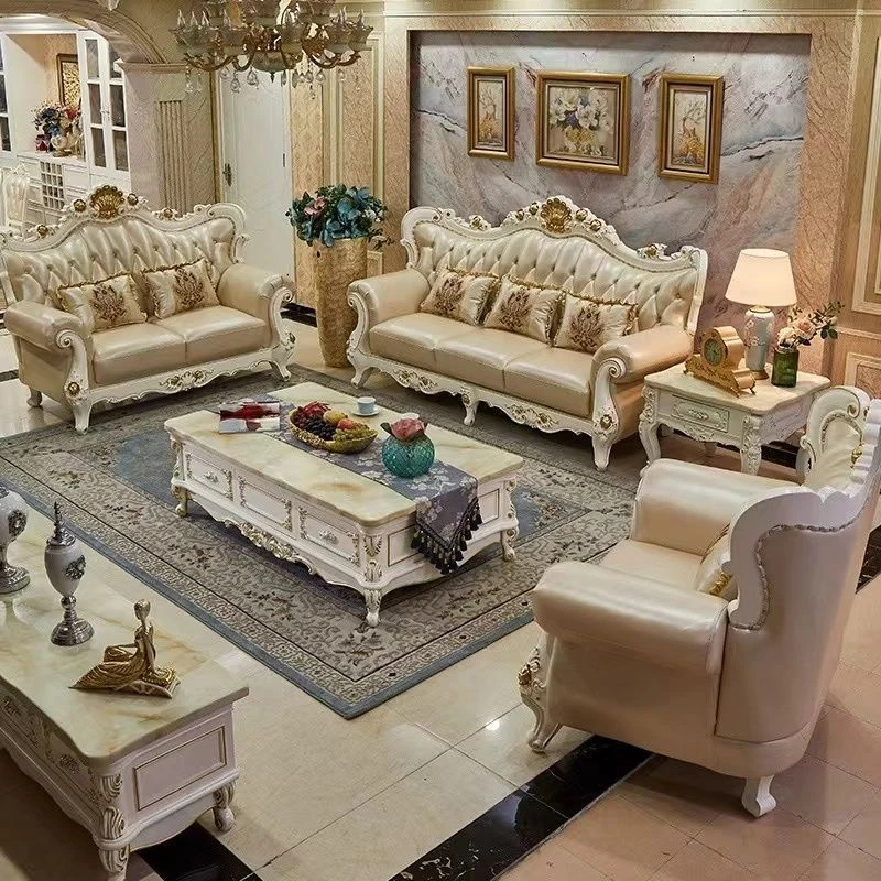Luxurious European Leather Sofa - Genuine Top-Grain Cowhide with Exquisite Solid Wood Carvings, Perfect for Villas and French-Inspired Living Rooms, Ideal Corner Sectional for Any Space Size