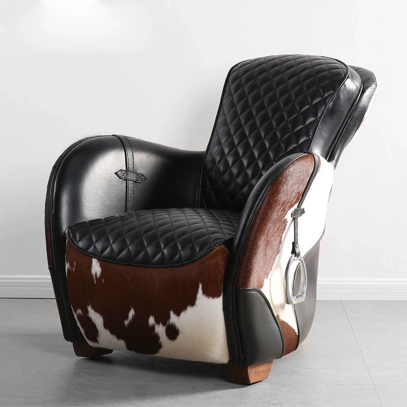 Vintage British Style Cowhide Leather Sofa Chair - Designer Cigar Lounge Recliner, Saddle Chair for Relaxation - Perfect for Chic Home Decor