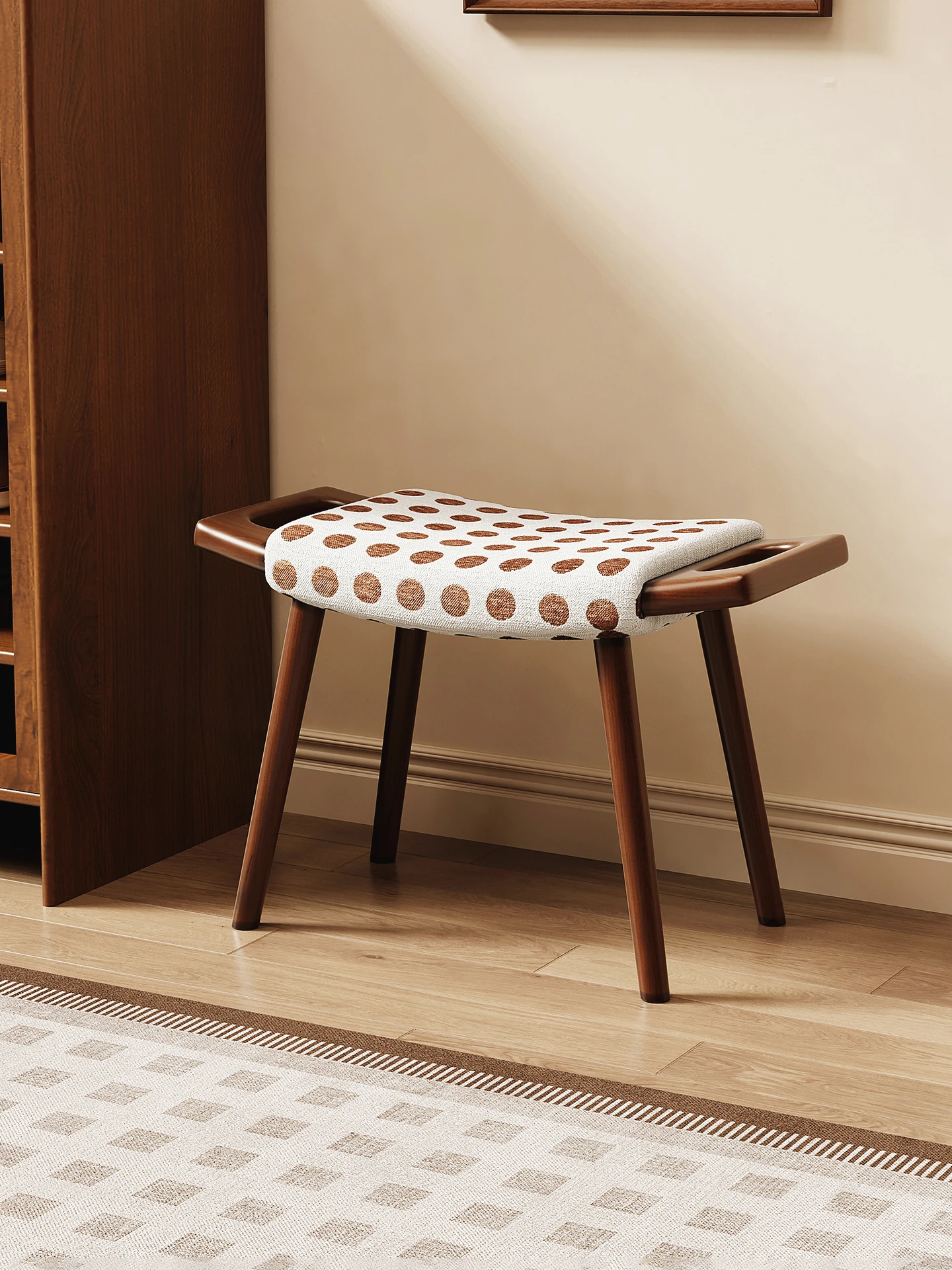 French Vintage Solid Wood Vanity Stool - Elegant Makeup & Shoe Changing Seat for Bedroom & Closet, Perfect for Women Seeking Style and Comfort