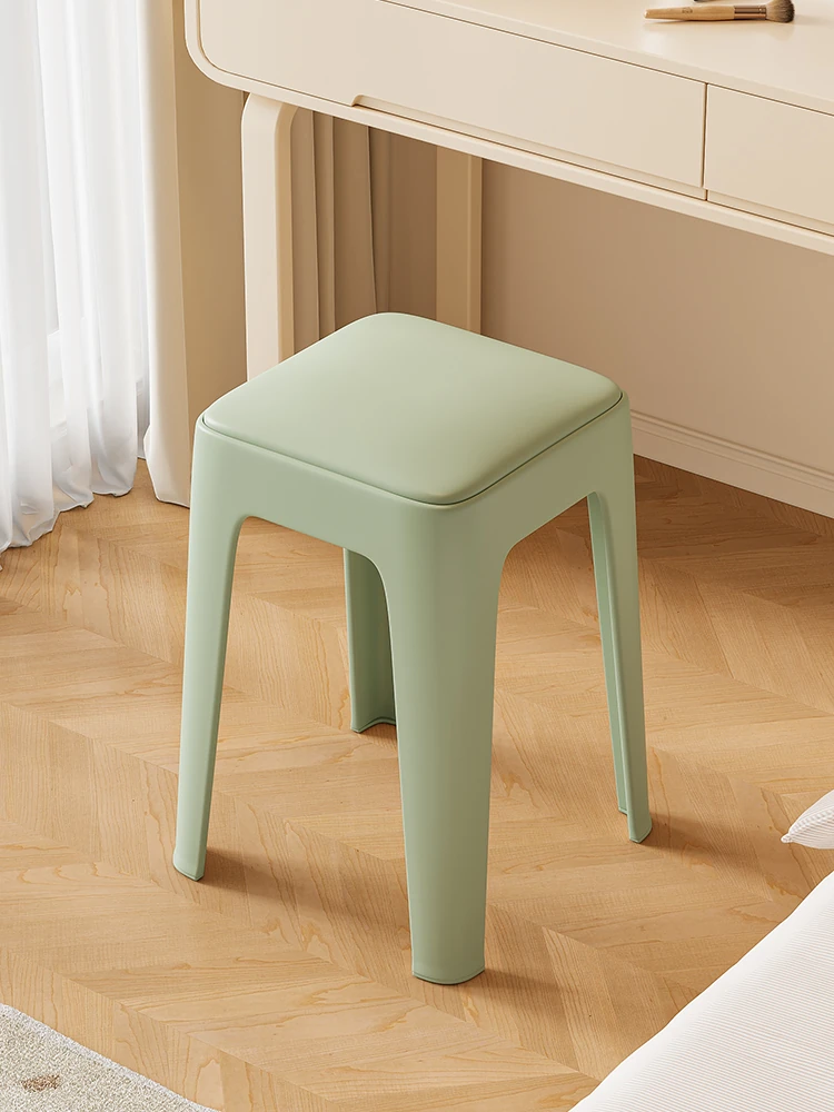 Modern Cream-Style Makeup Stool for Girls’ Bedrooms - Thick, Stackable, and Minimalist Plastic Vanity Chair for Home Use