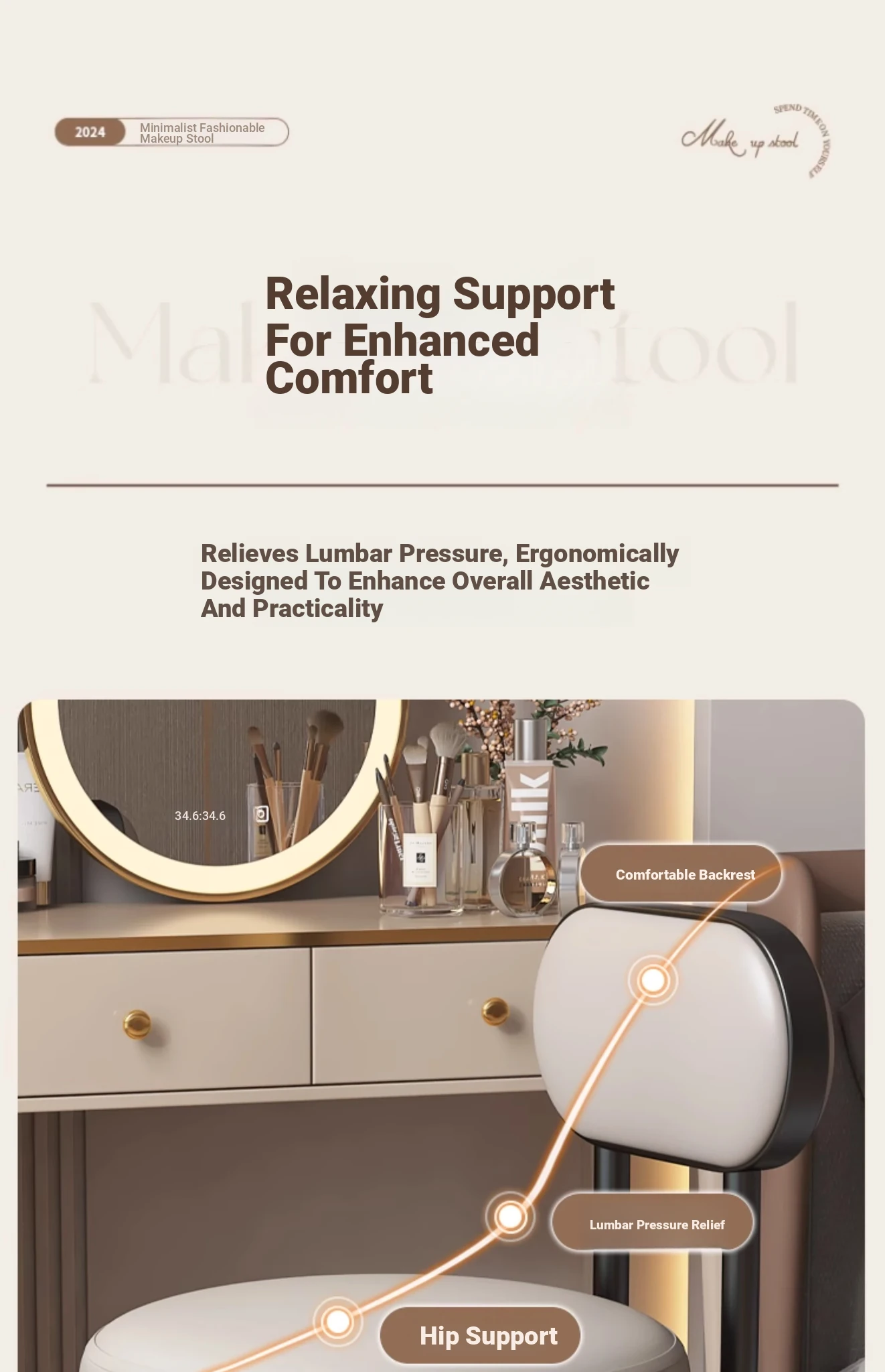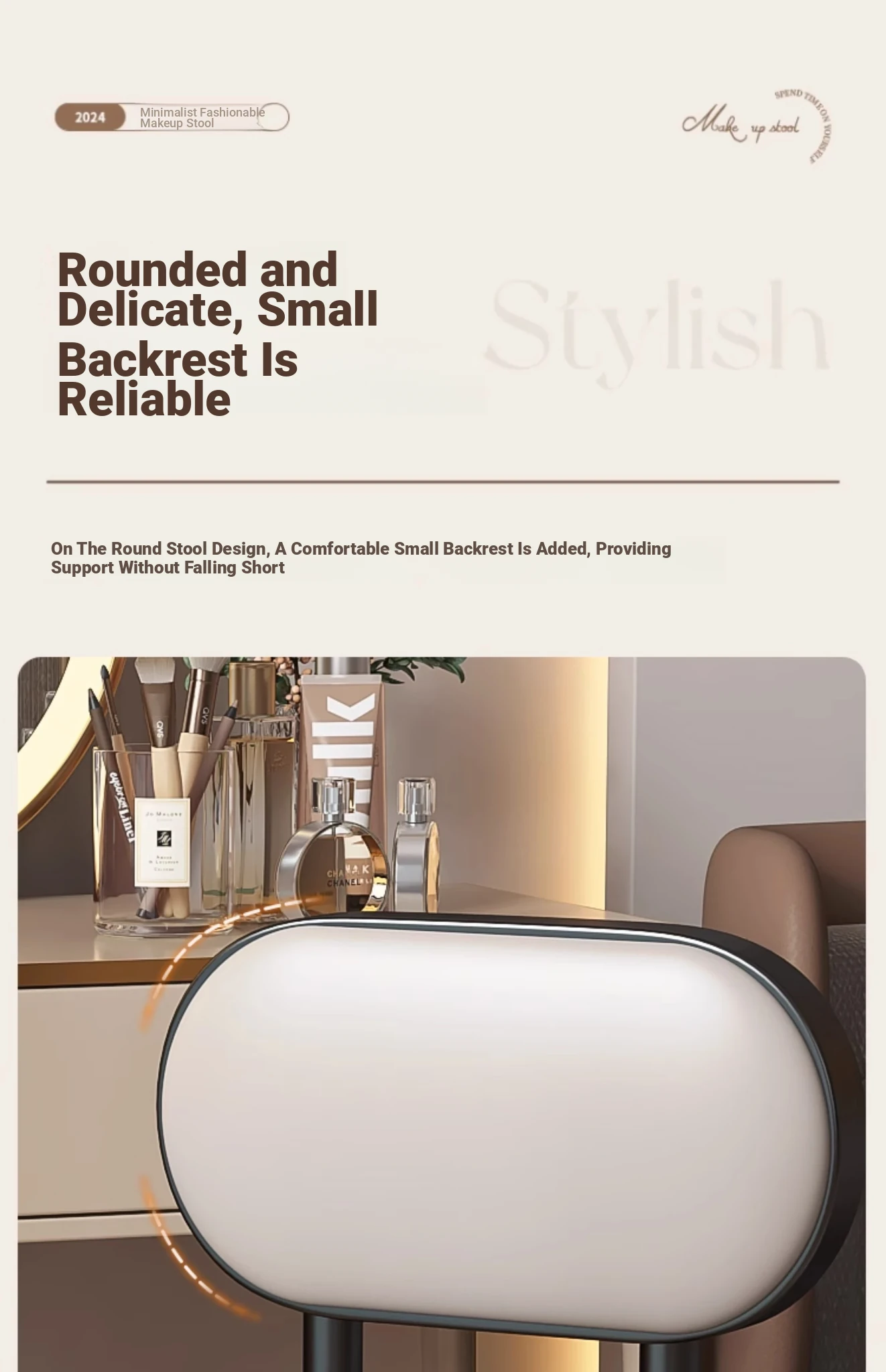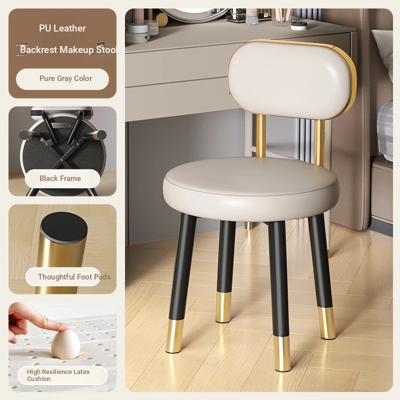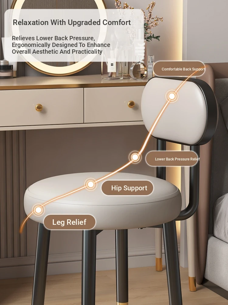2025 New Premium Makeup Chair for Home - Stylish Bedroom Vanity Stool with Backrest, Perfect for Women’s Dressing Tables