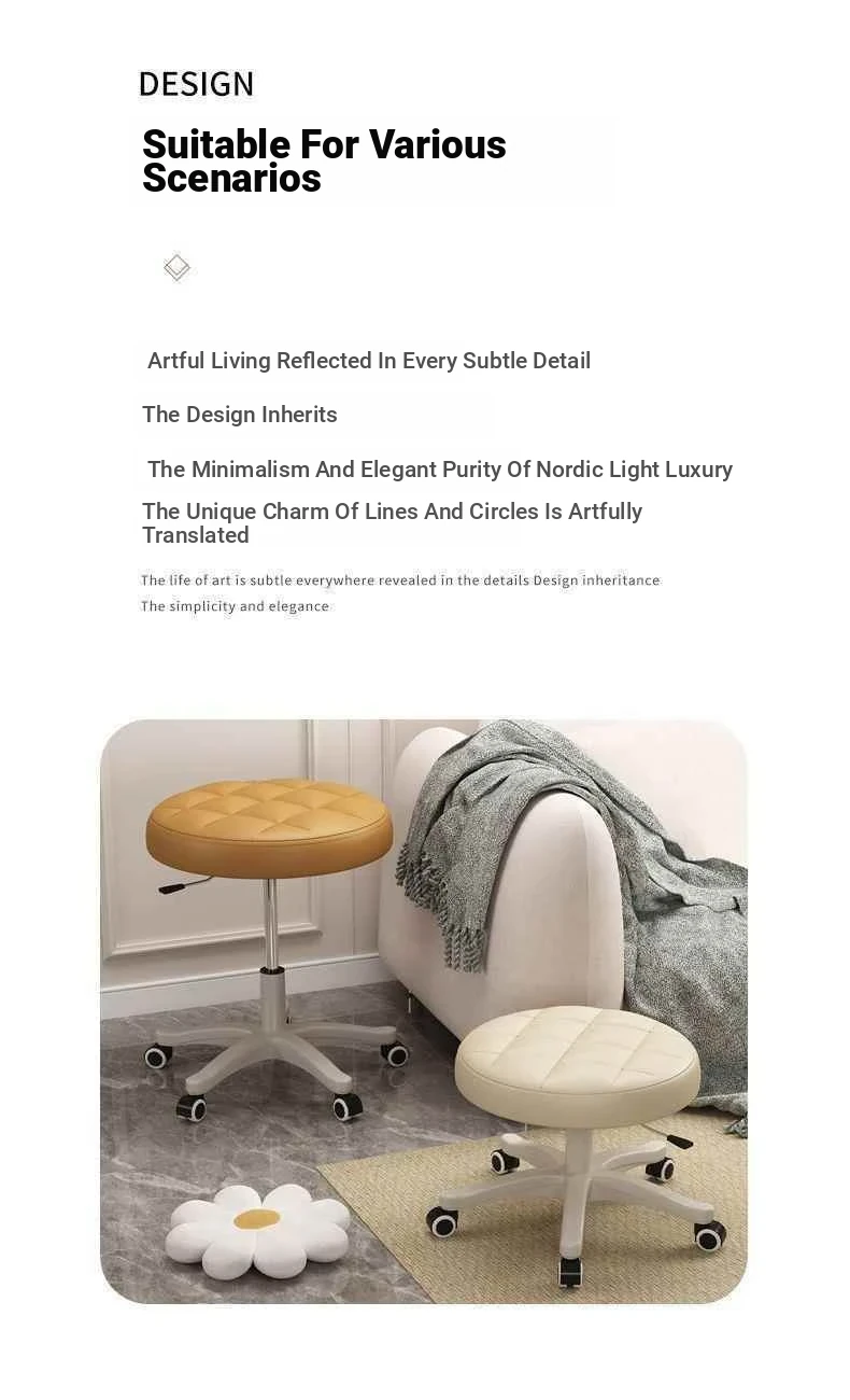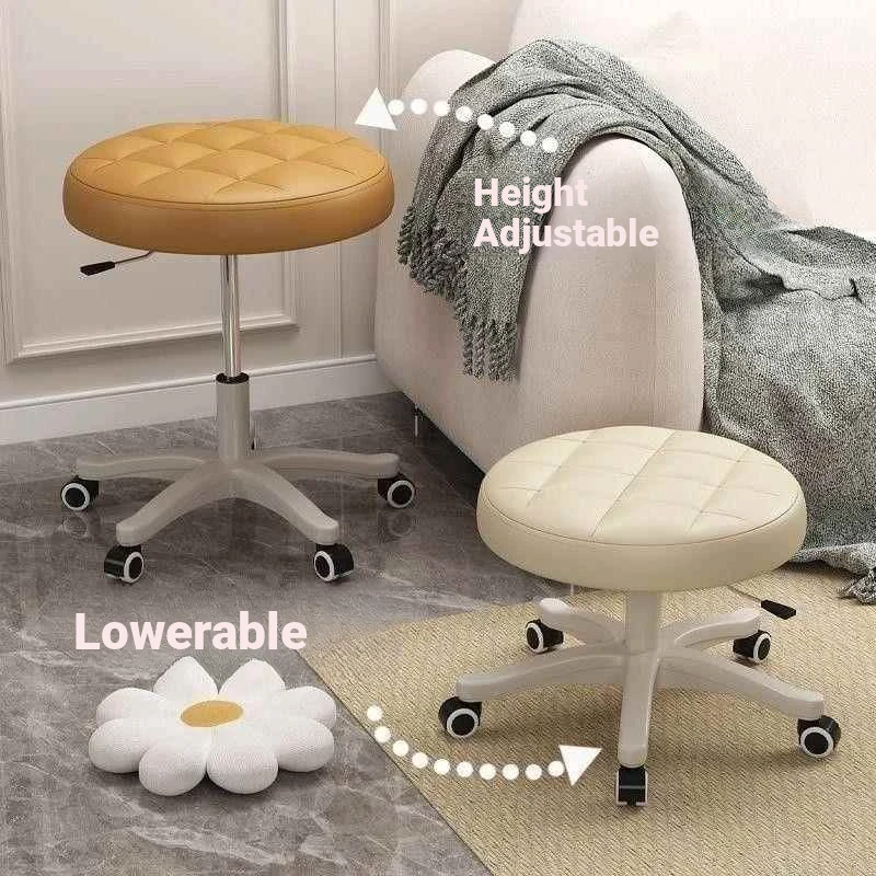 Adjustable Swivel Stool for Home - Soft Padded Small Bench with Wheels, Perfect for Kids and Shoe Changing, Ideal for Living Room Use