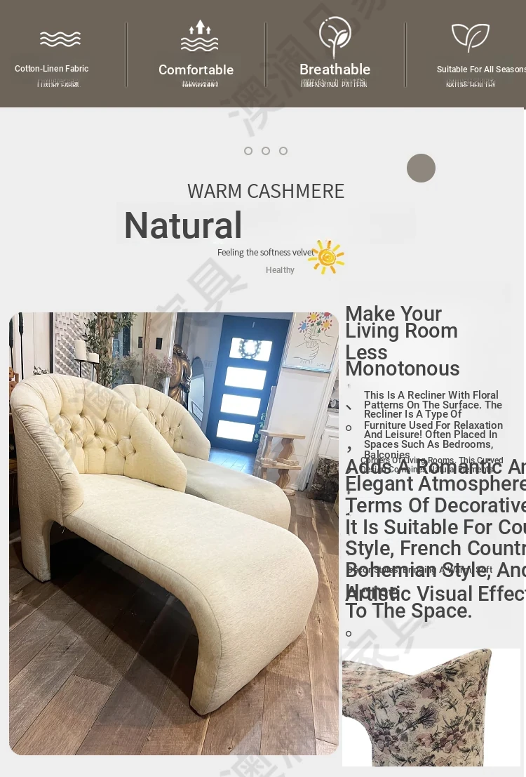 American Style Fabric Chaise Lounge - Elegant Soft Furnishing for Bedroom and Living Room, Perfect for Fashion Stores and Hotels, Stylish Sofa Chair for a Chic Atmosphere