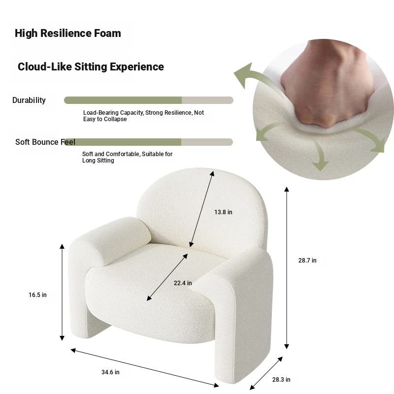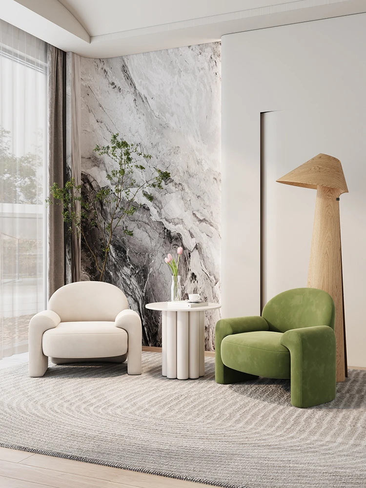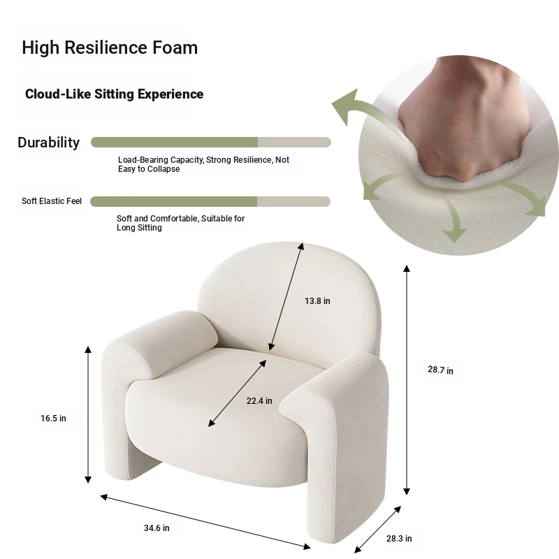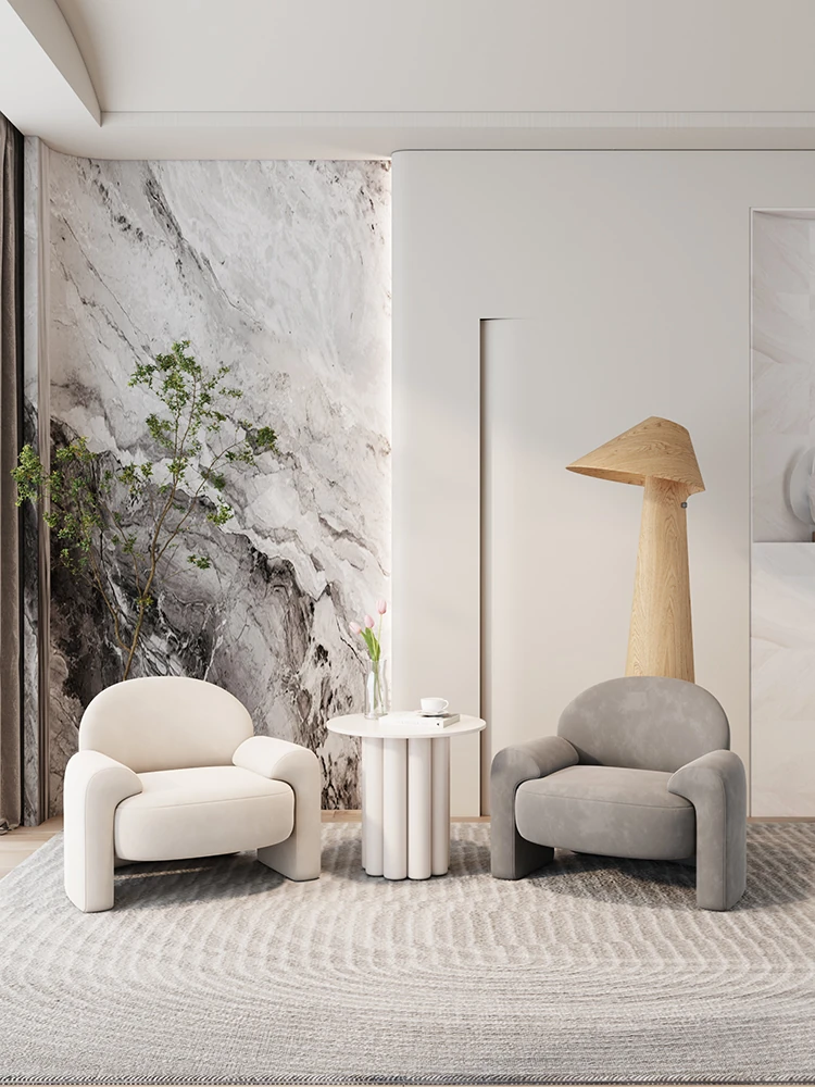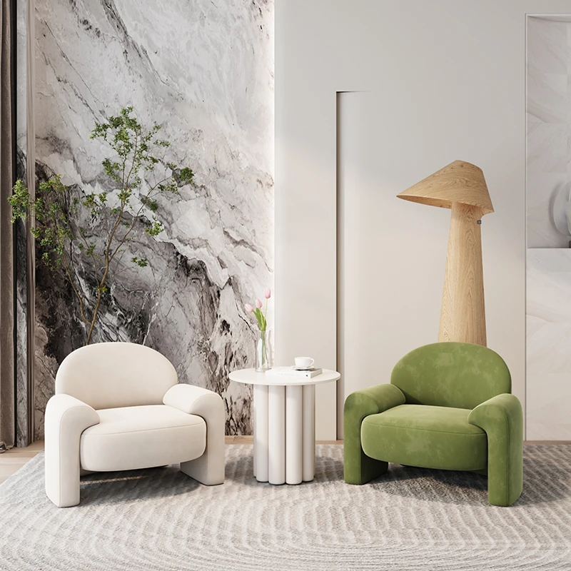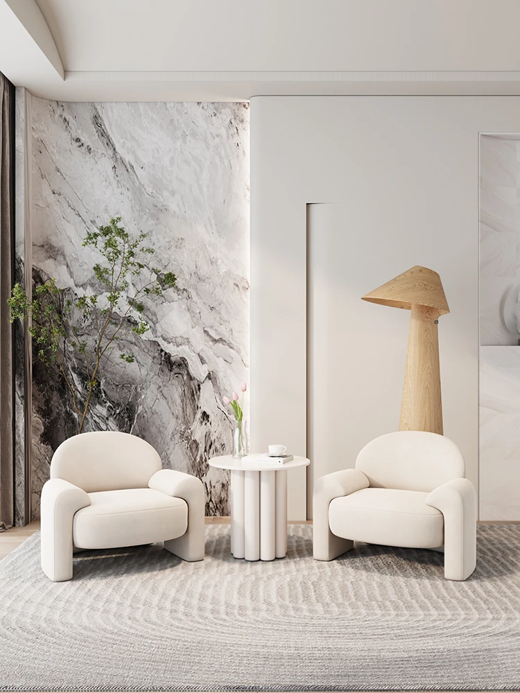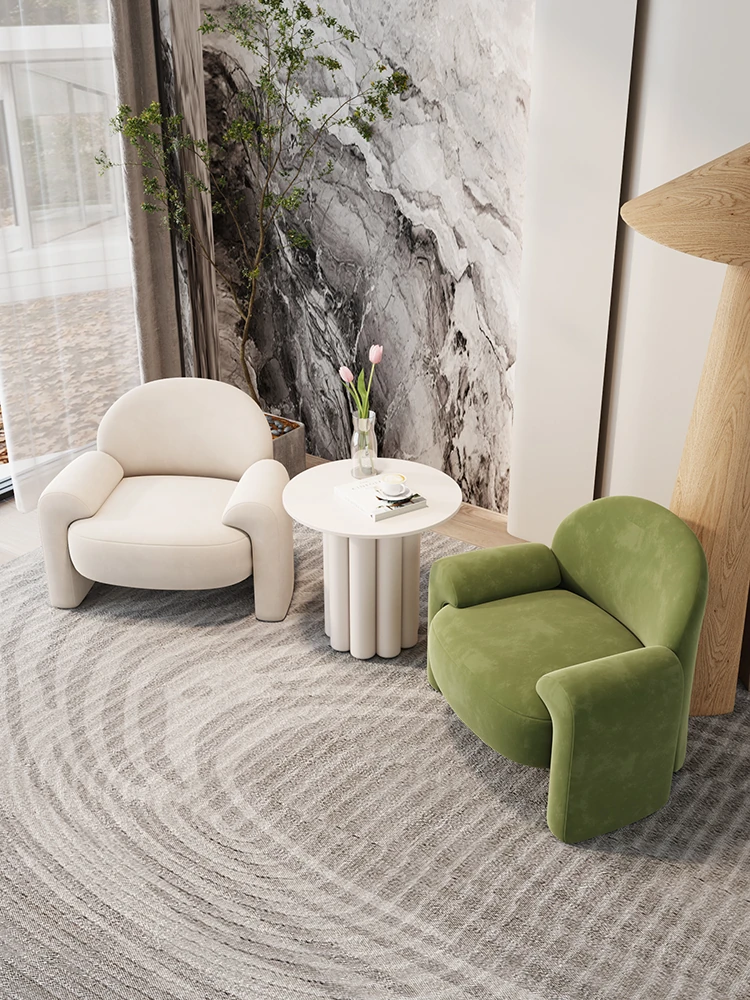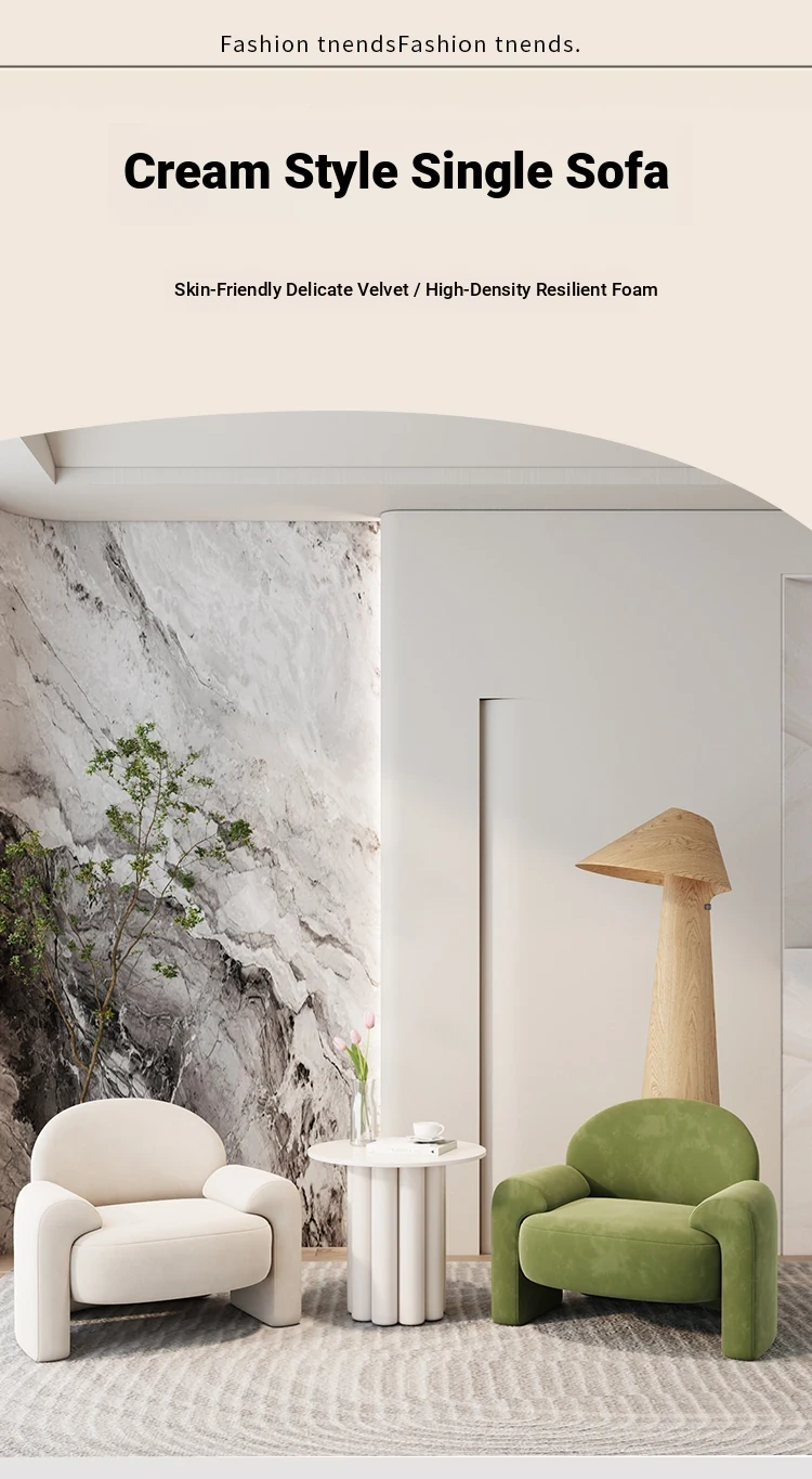 Chic Creamy Single Chair - Trendy Designer Sofa for Fashion Stores, Perfect for Relaxation and Reception in Minimalist Nordic Style
