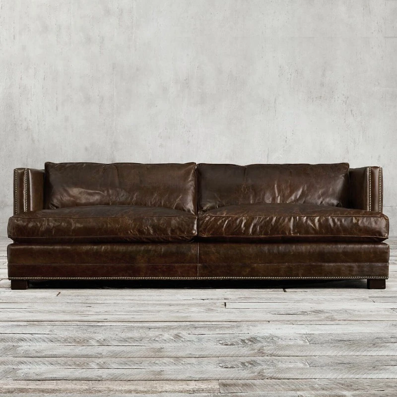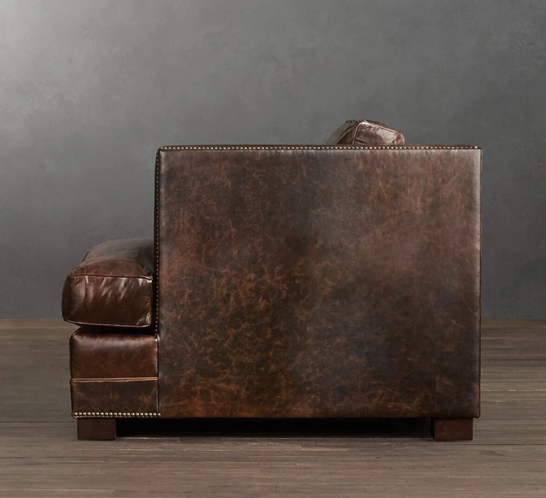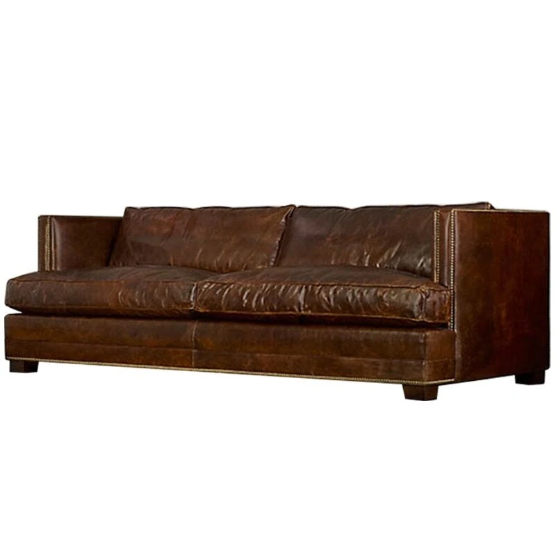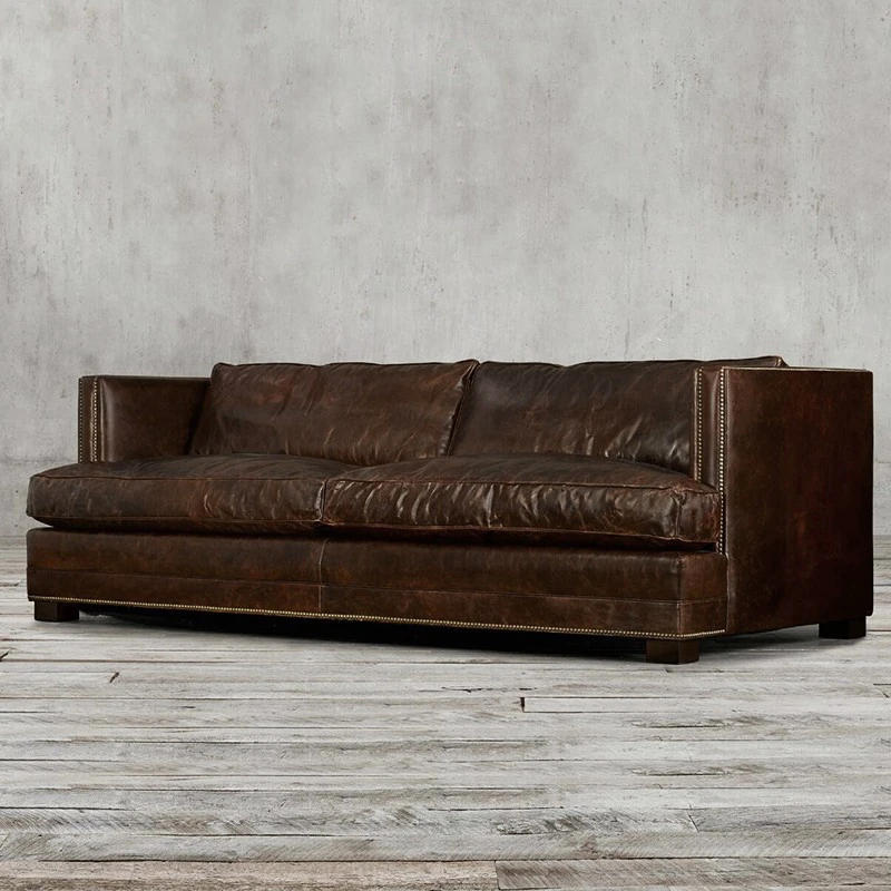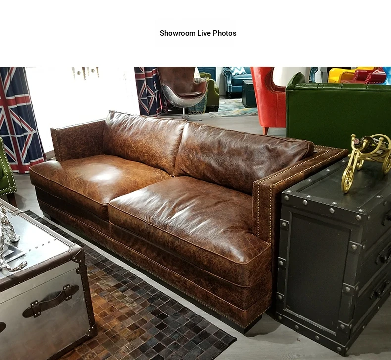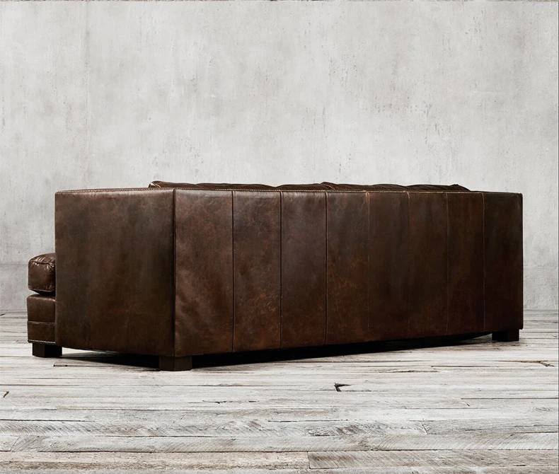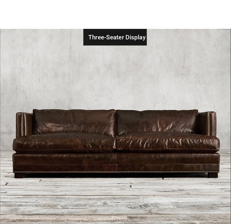 Classic American Leather Pull-Down Three-Seater Sofa - Vintage European Style Cigar Lounge Furniture for High-End Villas