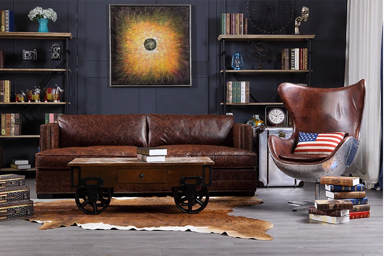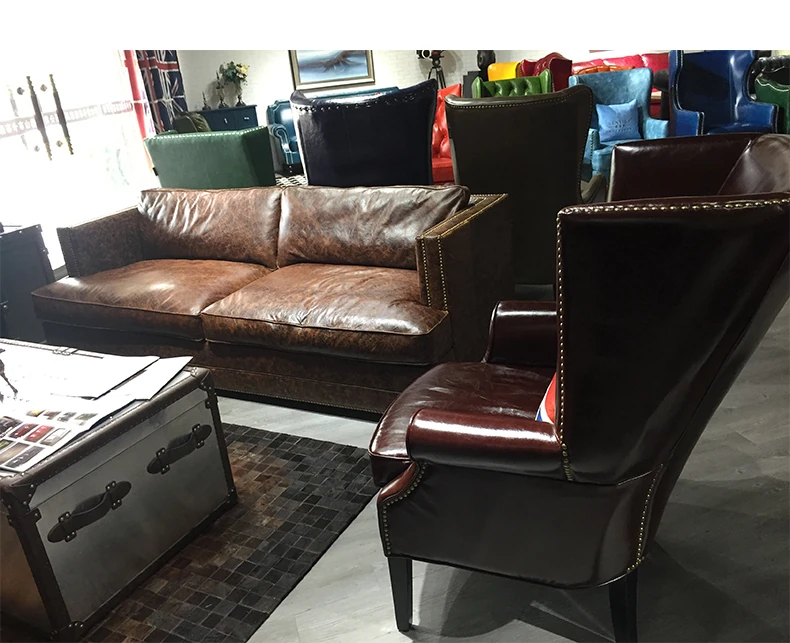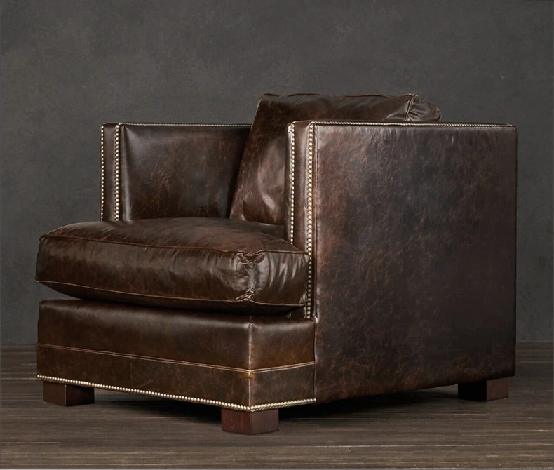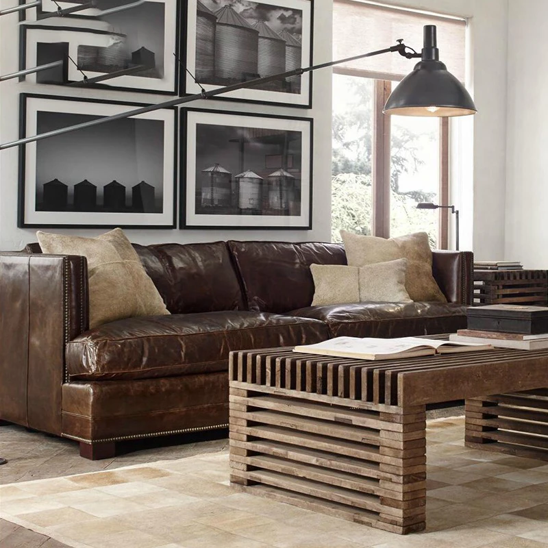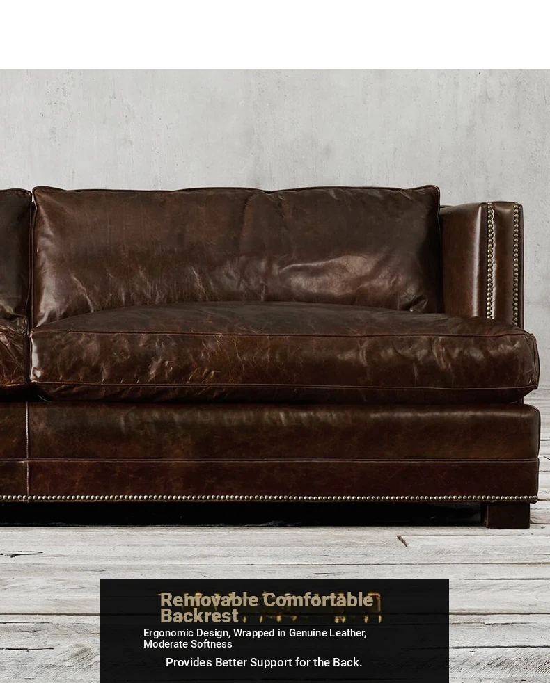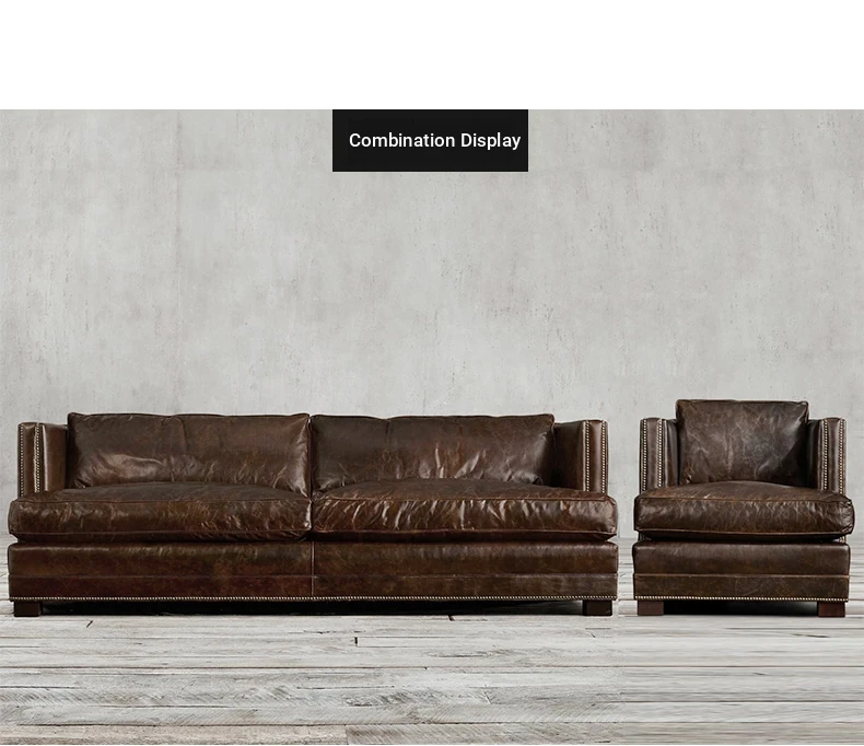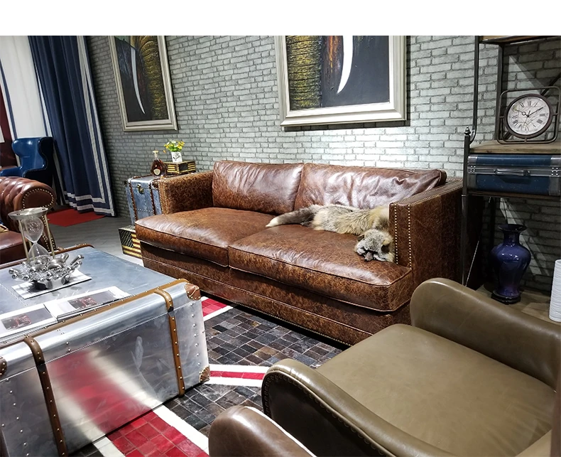 Classic American Leather Pull-Down Three-Seater Sofa - Vintage European Style Cigar Lounge Furniture for High-End Villas