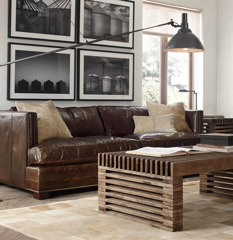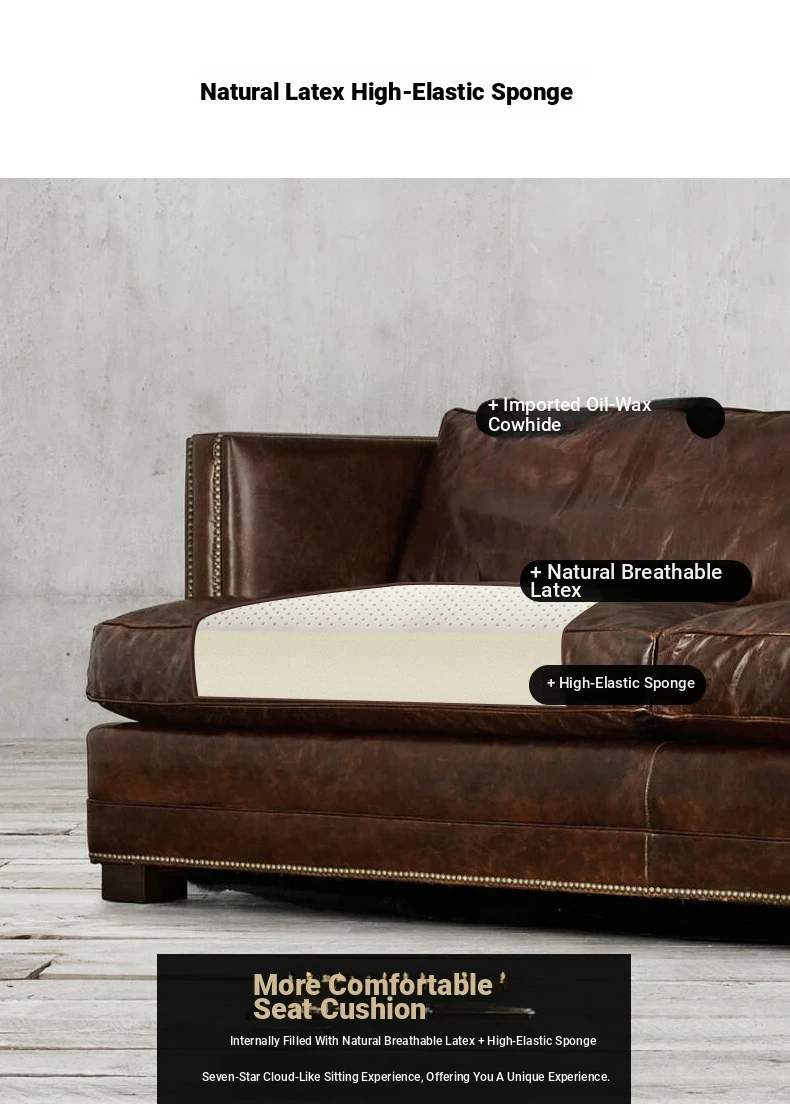 Three-seat sofa/R-grade oil wax leather/contact surface
