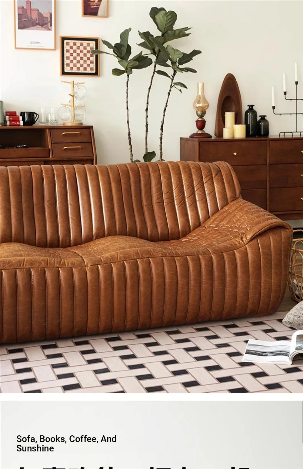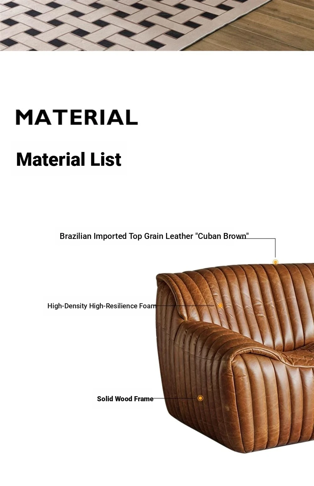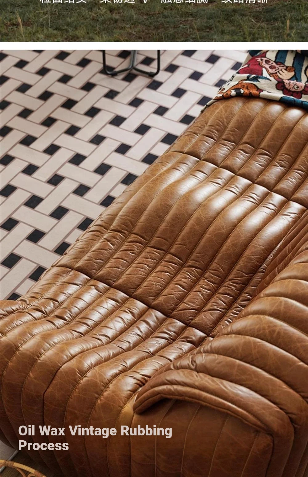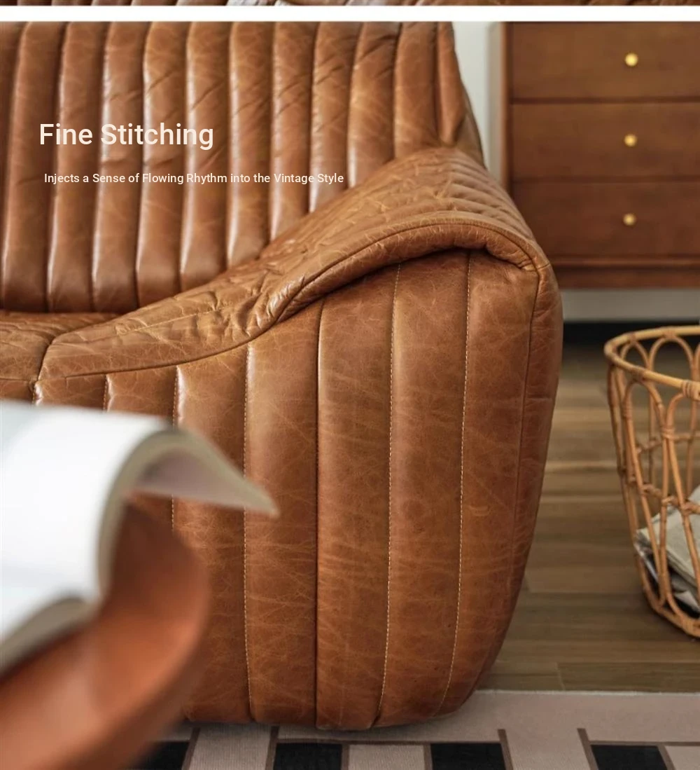 Classic American Leather Three-Seat Retro Sofa - Vintage Cigar Room Style with Waxed Leather for Villa Living Room Furniture