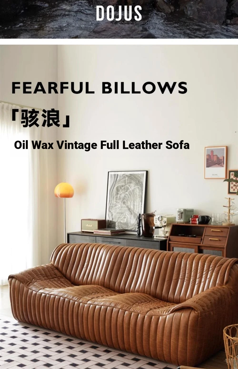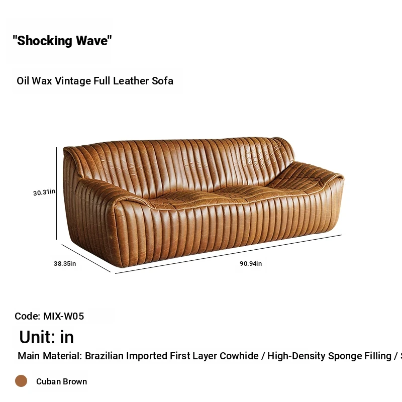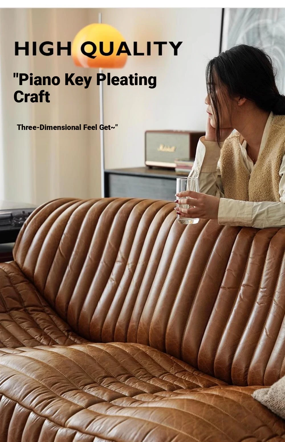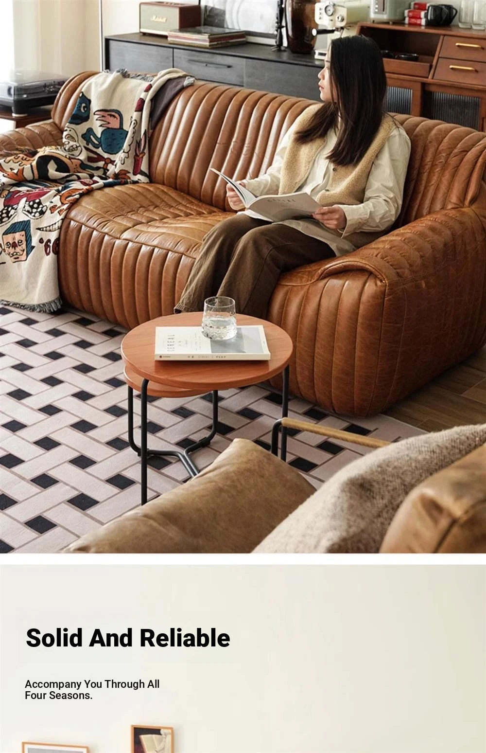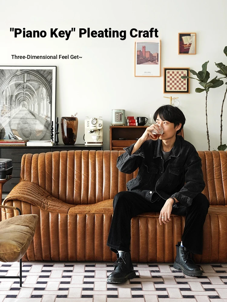 Classic American Leather Three-Seat Retro Sofa - Vintage Cigar Room Style with Waxed Leather for Villa Living Room Furniture