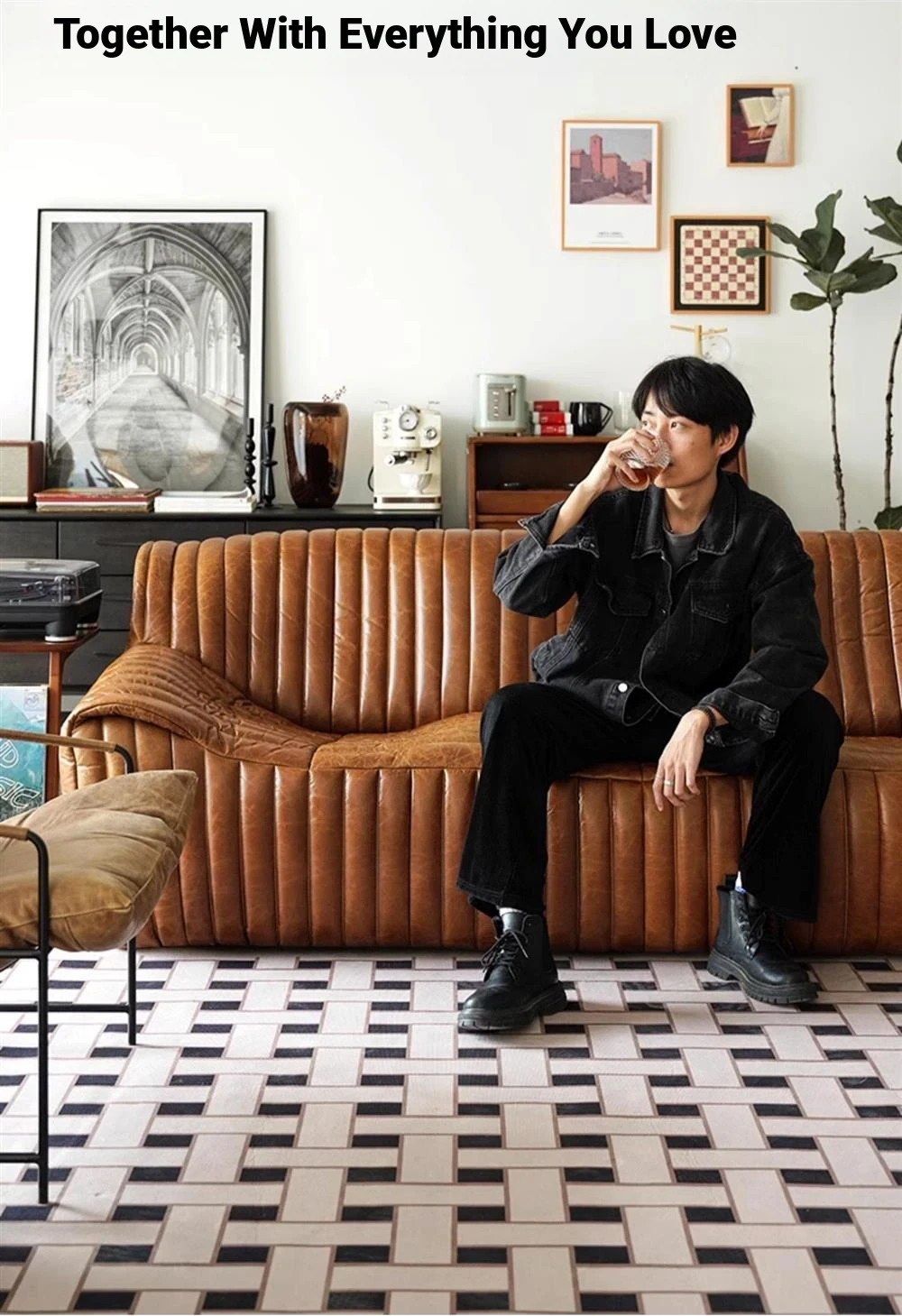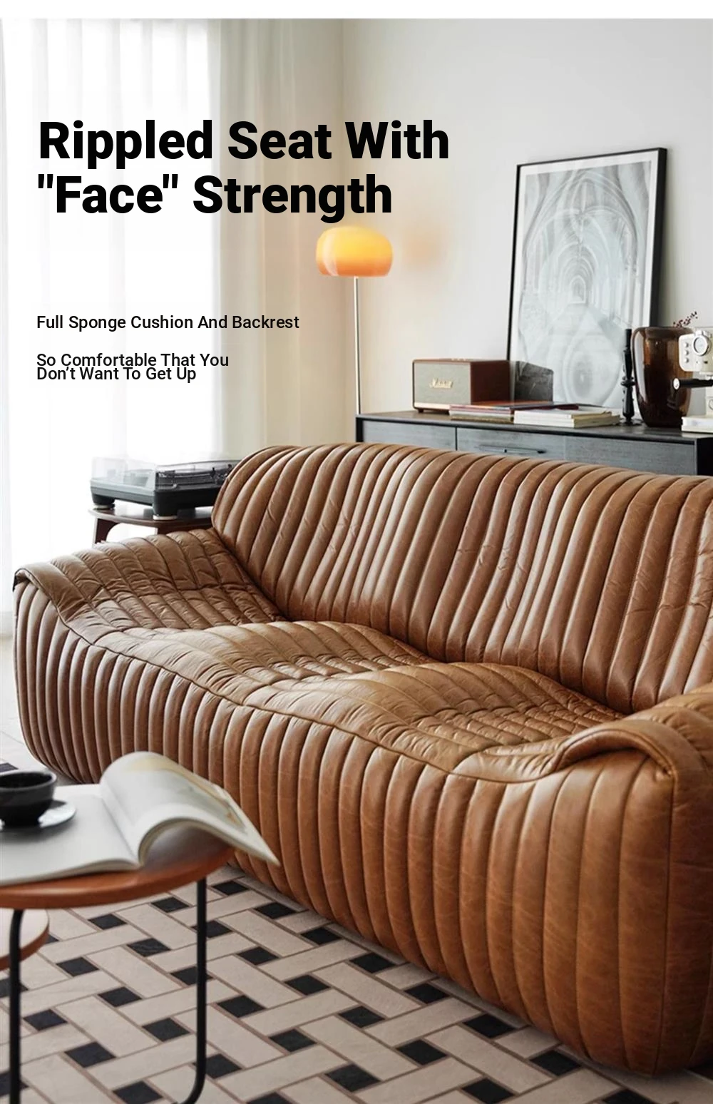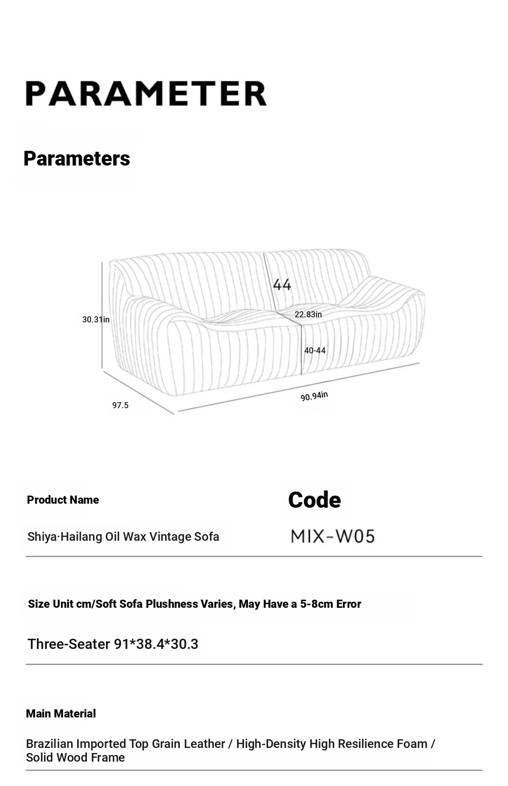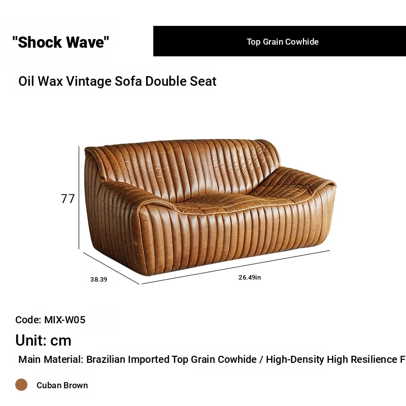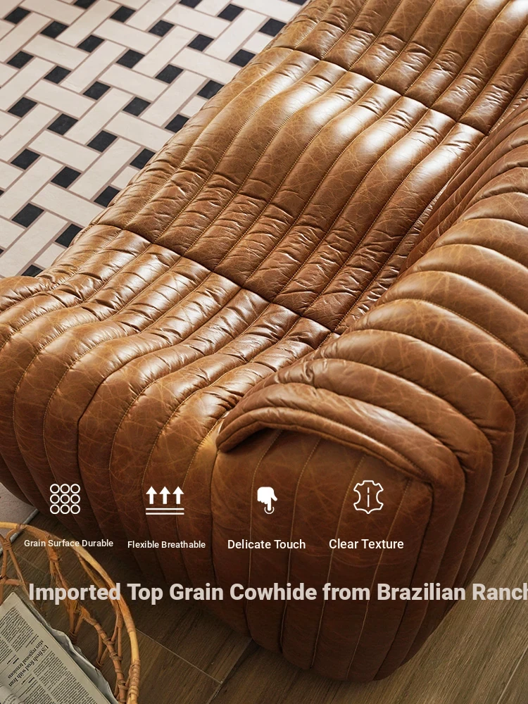 Classic American Leather Three-Seat Retro Sofa - Vintage Cigar Room Style with Waxed Leather for Villa Living Room Furniture