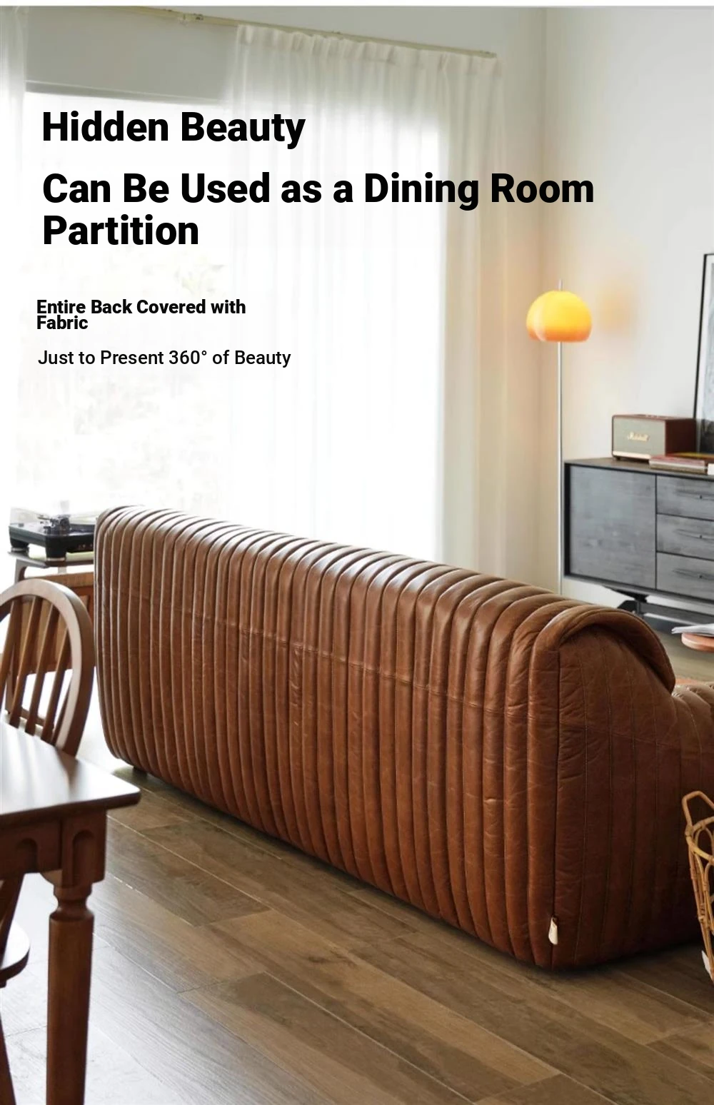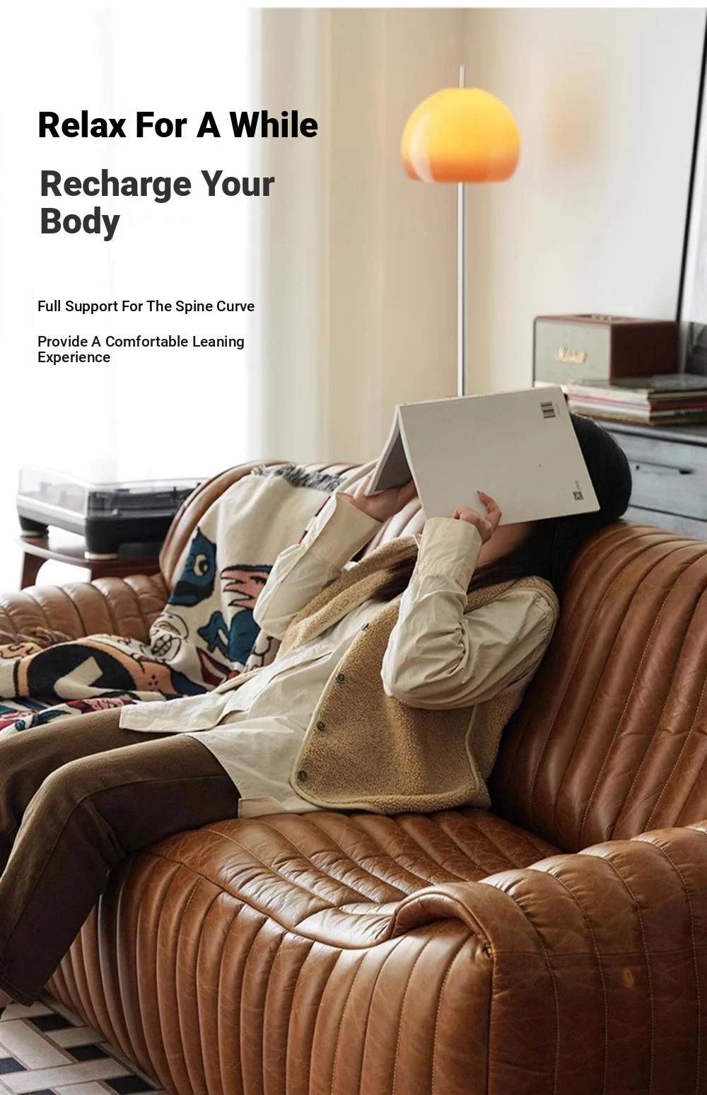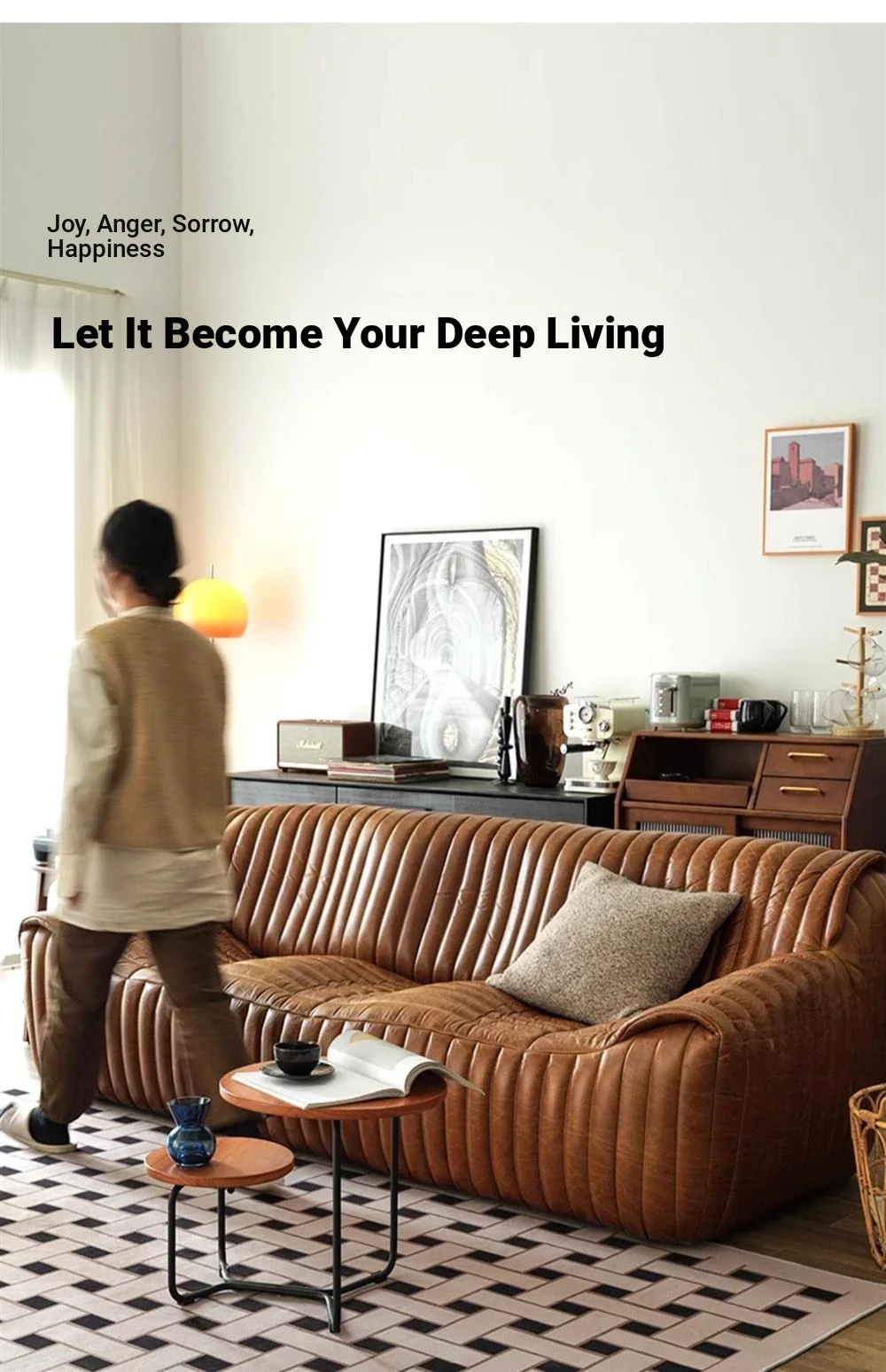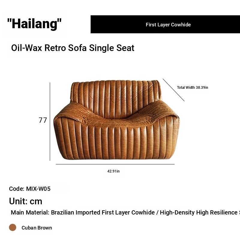 Classic American Leather Three-Seat Retro Sofa - Vintage Cigar Room Style with Waxed Leather for Villa Living Room Furniture
