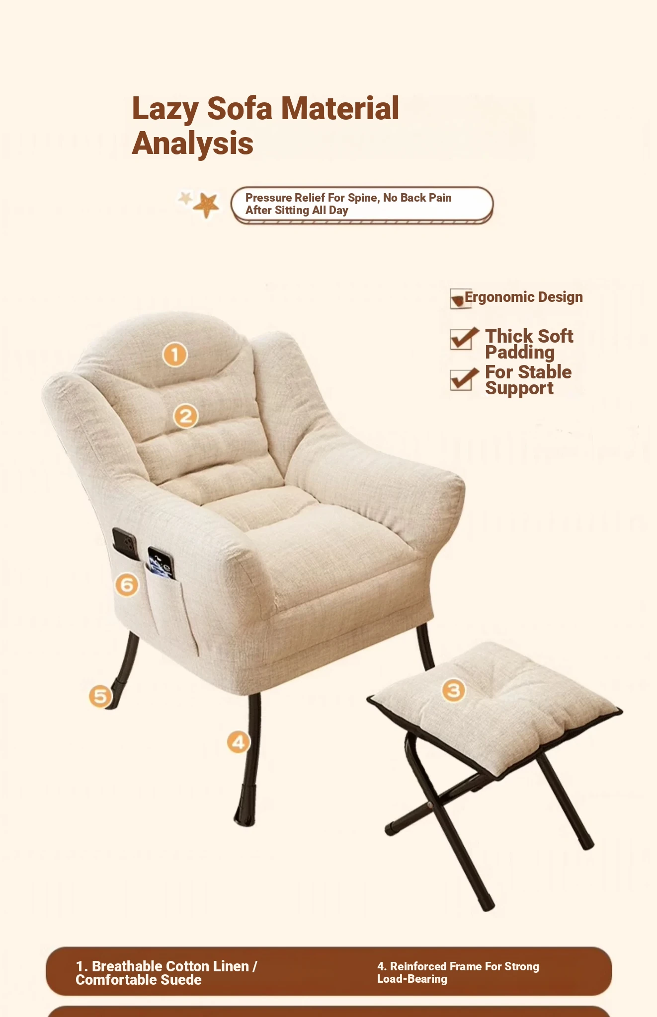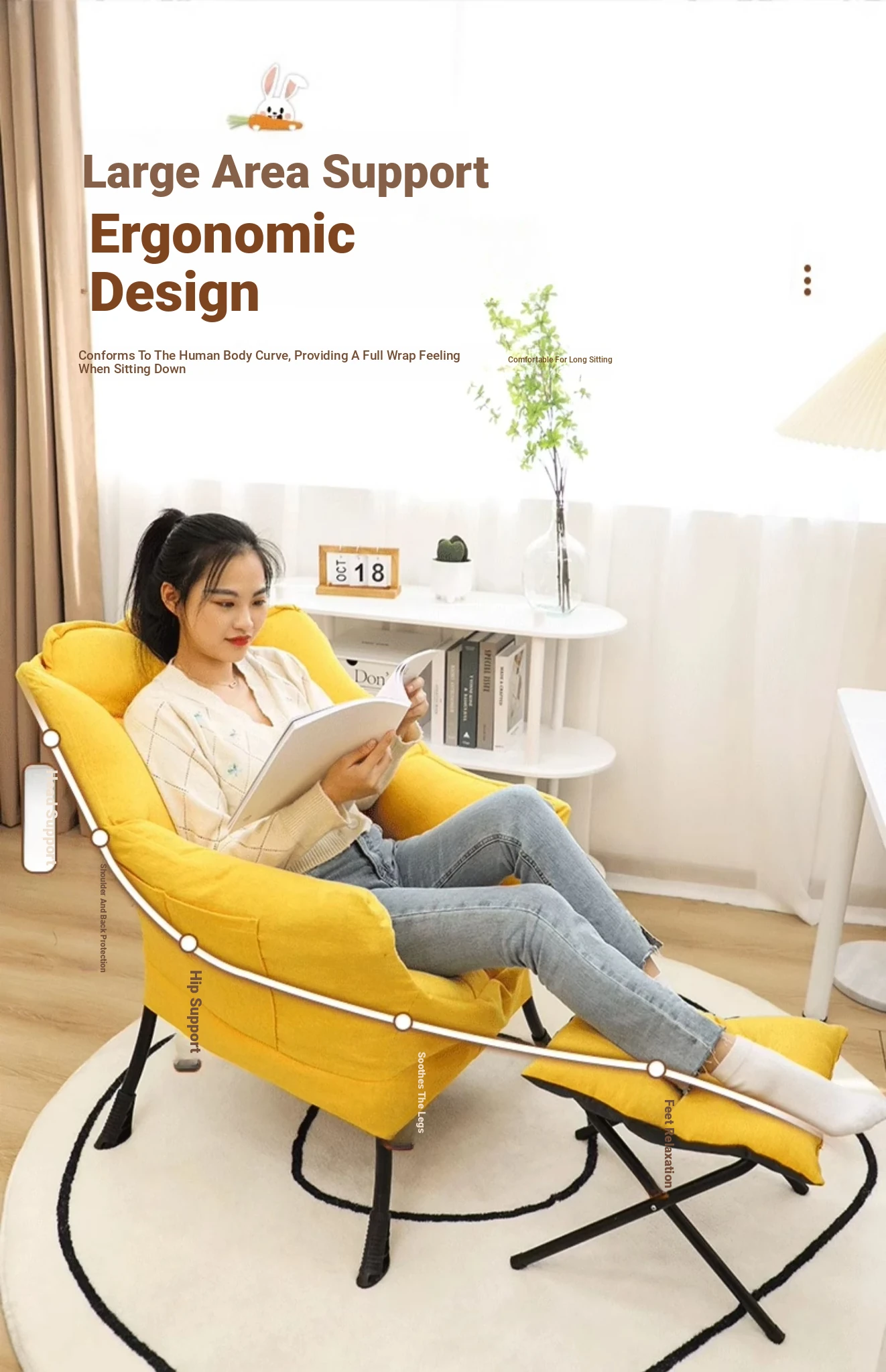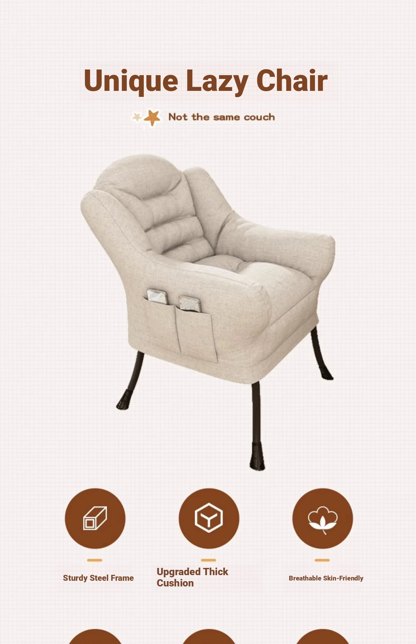 Cozy Lazy Sofa Chair for Students - Comfortable Single Recliner for Dorms, Perfect for Balconies & Bedrooms, Ideal Computer Chair with Back Support
