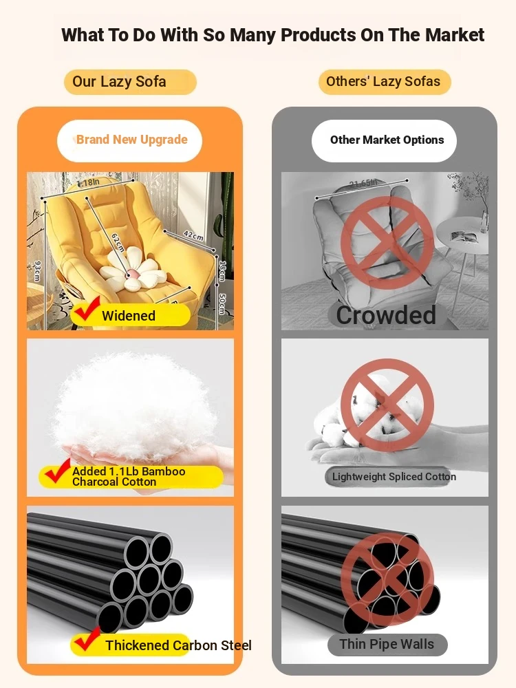 Cozy Lazy Sofa Chair for Students - Comfortable Single Seat Recliner for Dorm Rooms, Balconies, and Bedrooms - Perfect Computer Chair and Relaxation Spot!