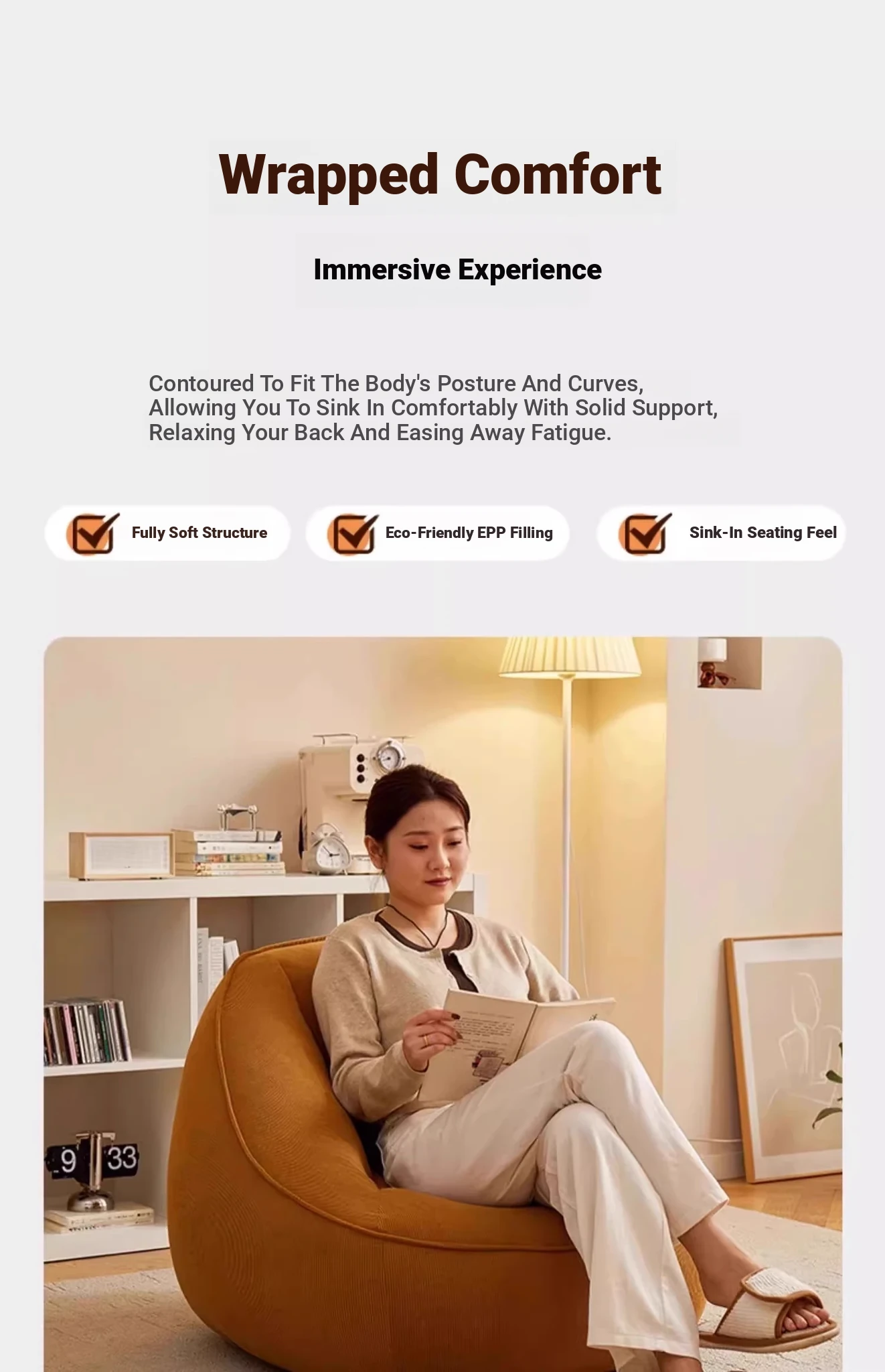 Cozy Lazy Sofa Chair - Single Tatami Lounge for Bedroom, Living Room & Balcony, Versatile, Reclining & Sleeping-Friendly, Trendy Nook Chair for Ultimate Relaxation