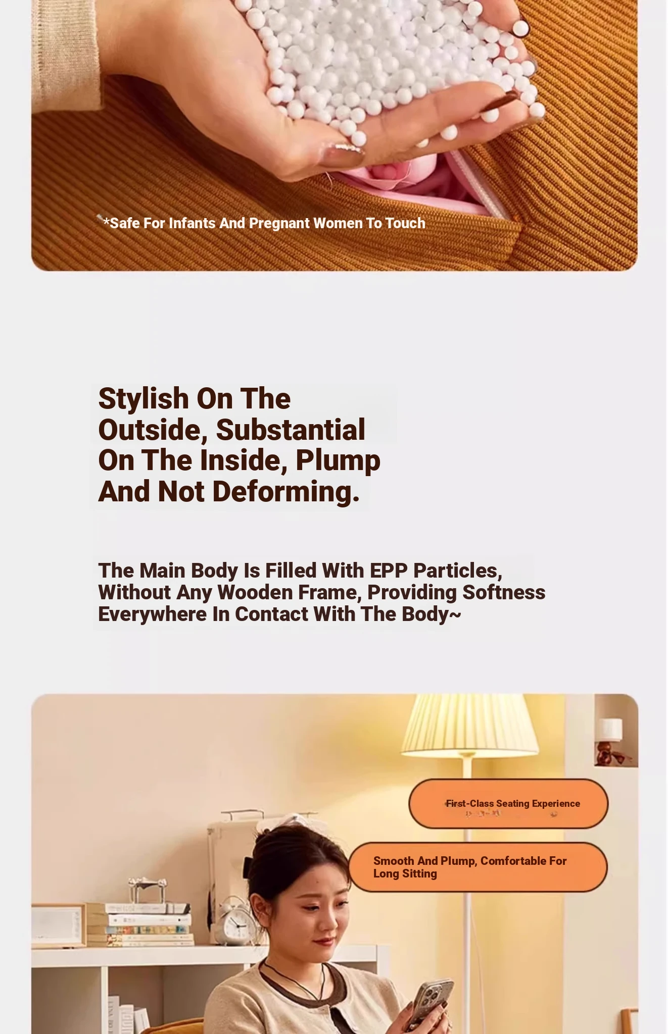 [ Bedside sofa ] Cheese White + Foot Pads [ High density filling ]