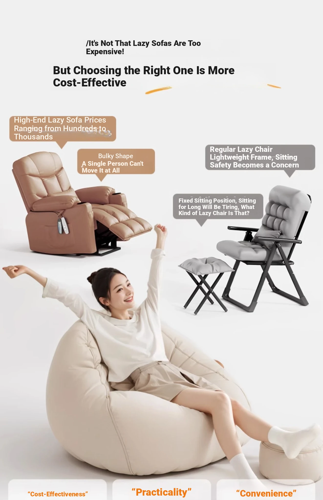 Cozy Lazy Sofa Chair - Versatile Lounge Chair for Relaxing and Sleeping, Perfect for Living Room, Bedroom, Balcony, Bay Window, and Tatami Use! Ideal for Humans and Pets Alike!
