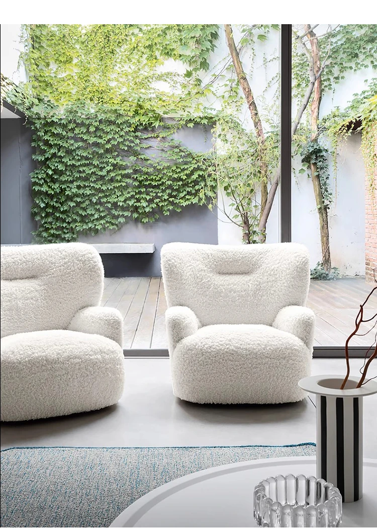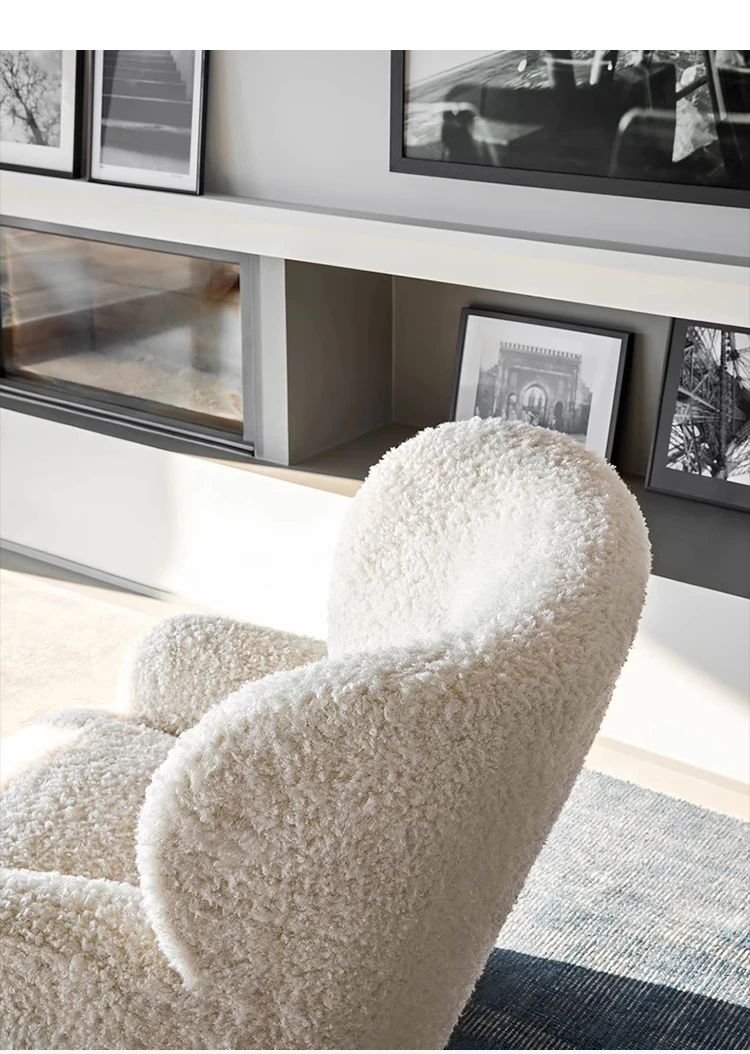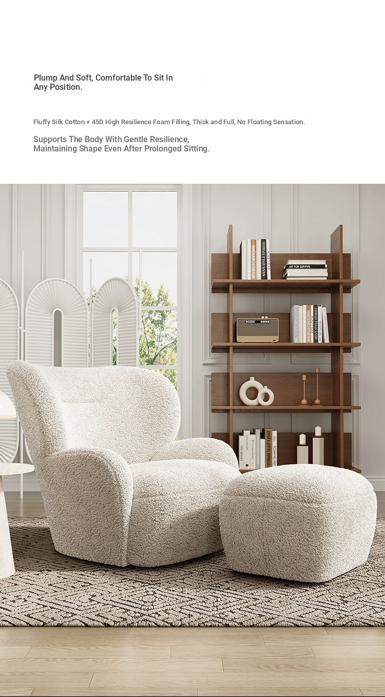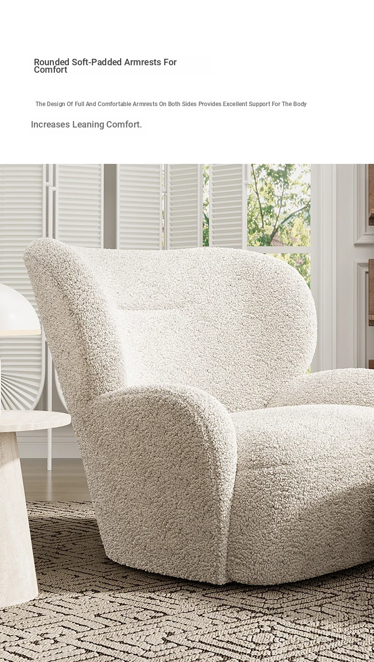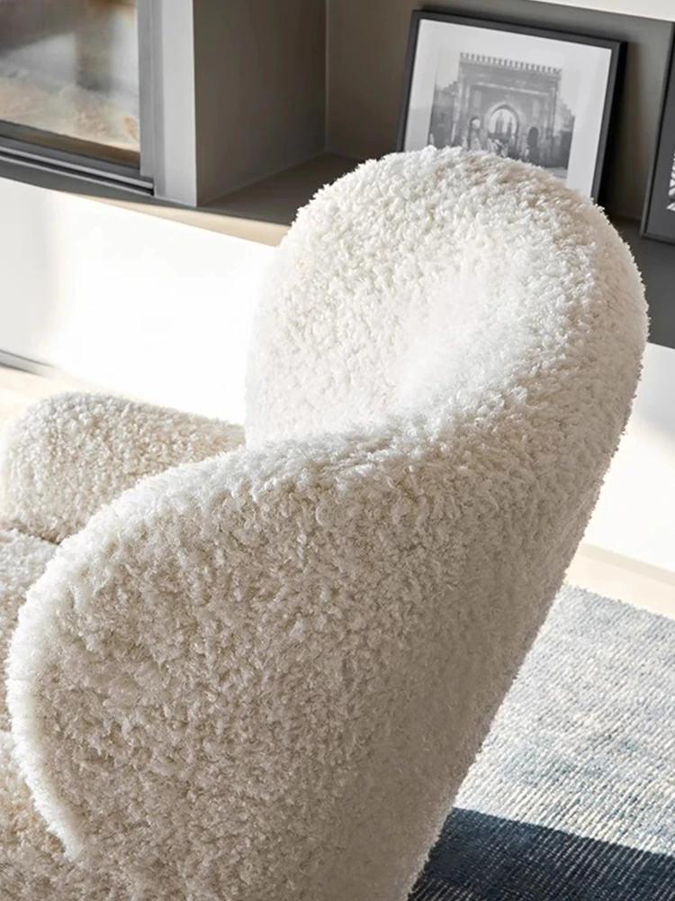 Cozy White Bear Single Sofa Chair – Luxurious Lamb Fleece Upholstery, French Cream Style, Perfect for Living Room or Bedroom Relaxation