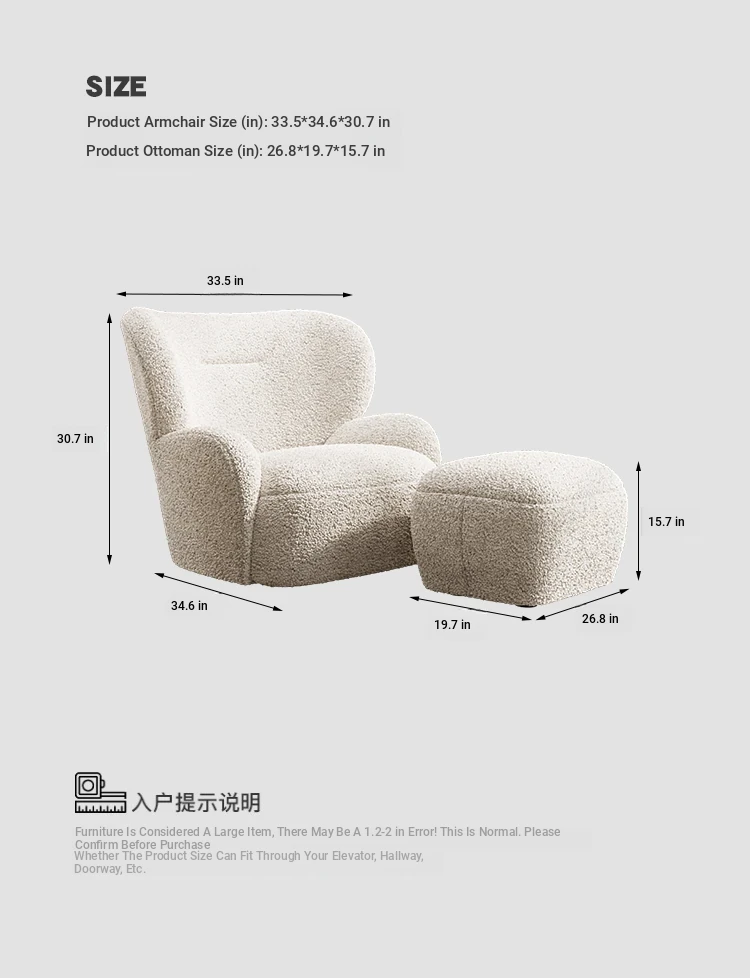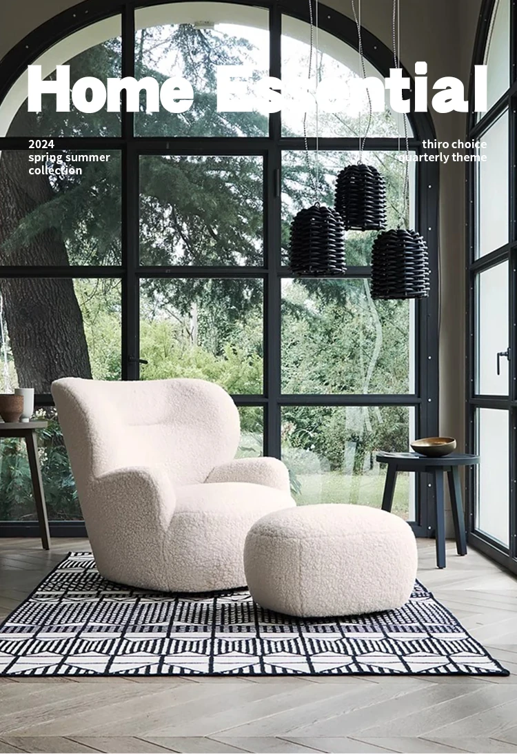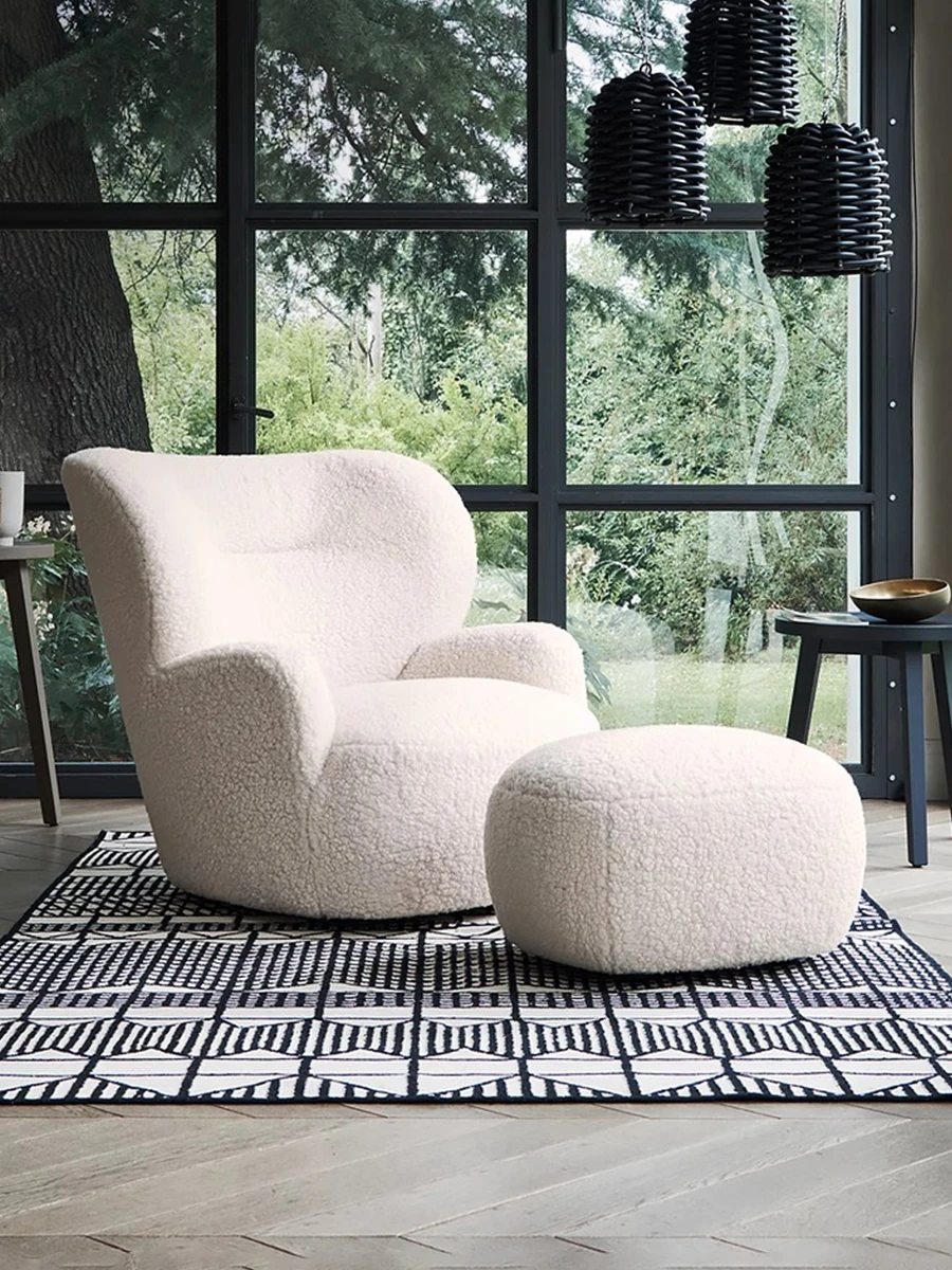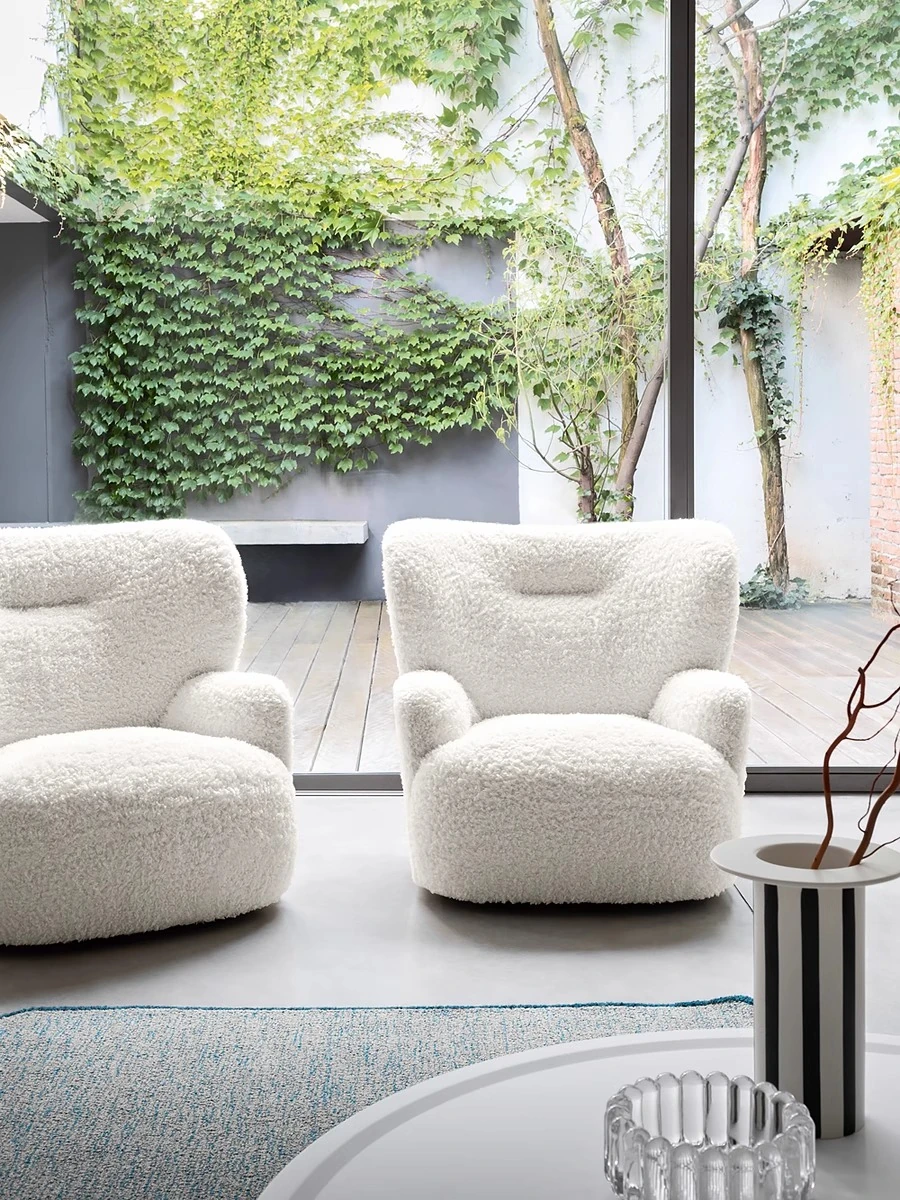 Cozy White Bear Single Sofa Chair – Luxurious Lamb Fleece Upholstery, French Cream Style, Perfect for Living Room or Bedroom Relaxation