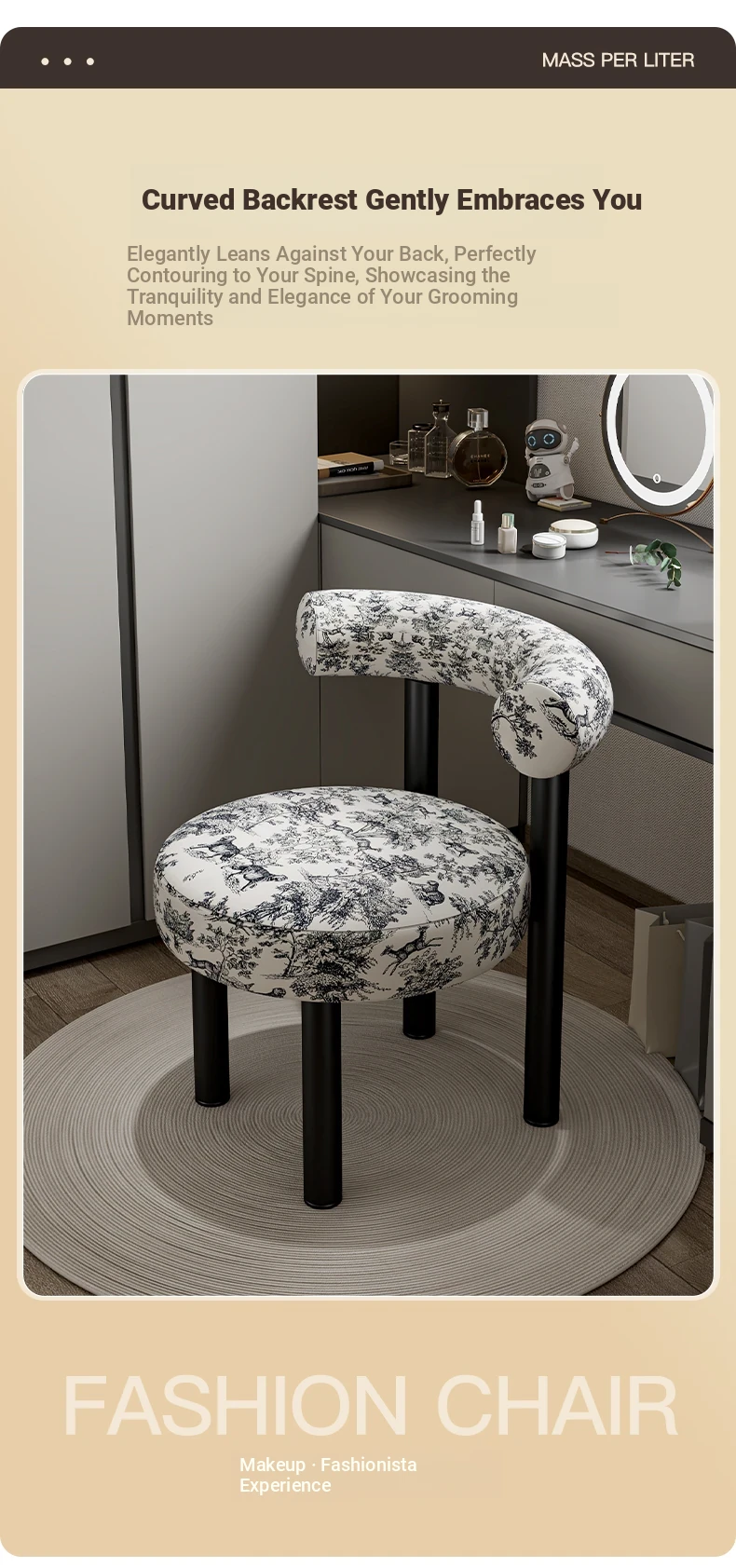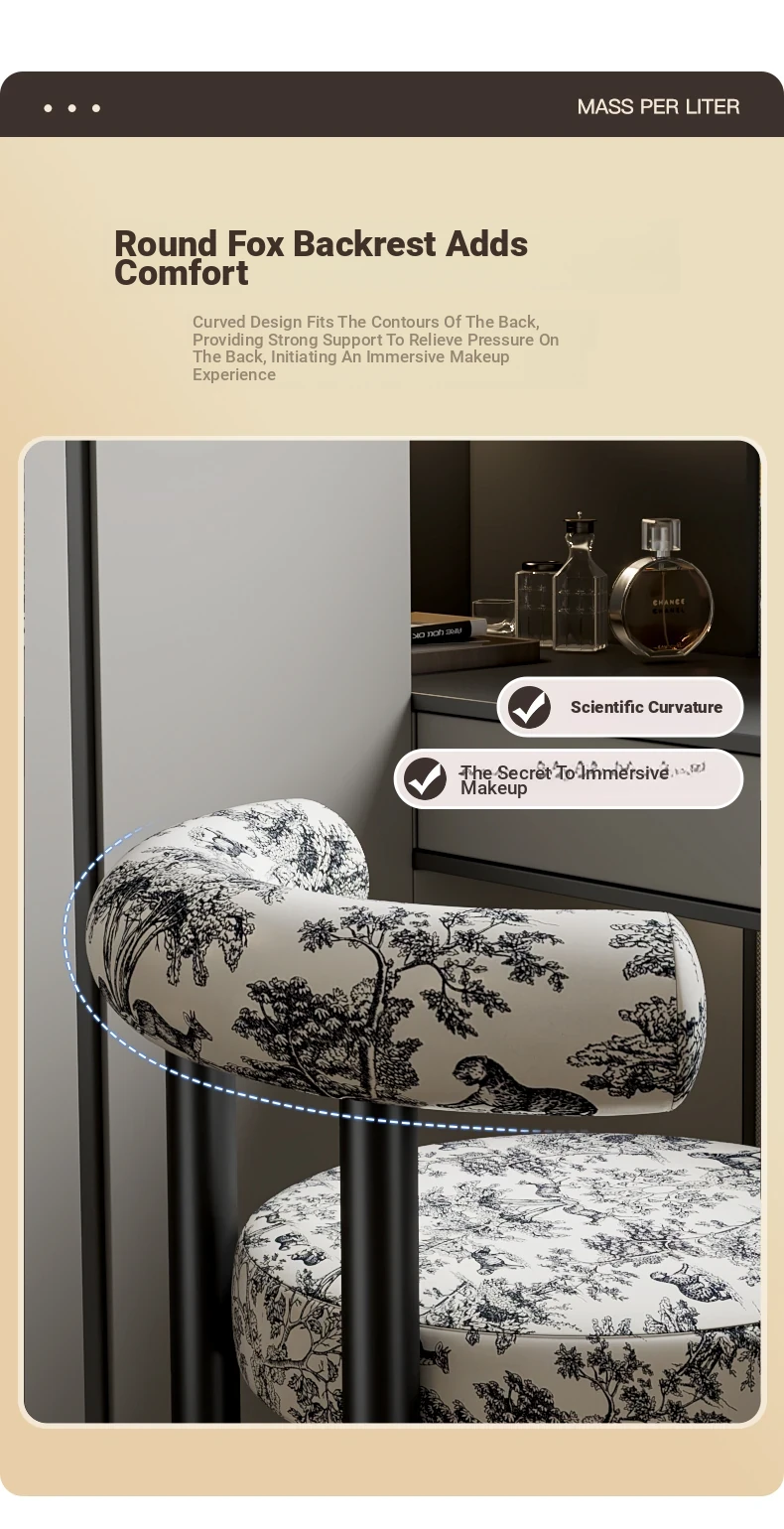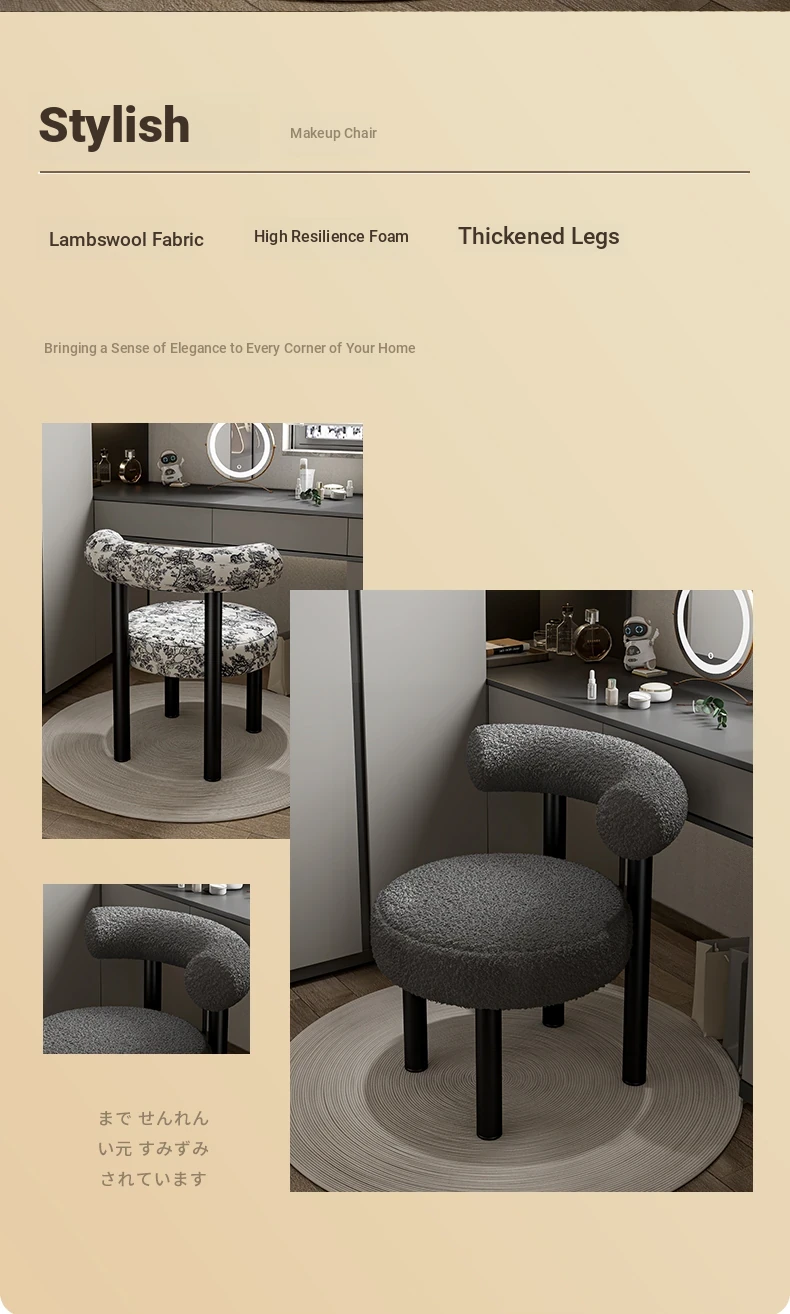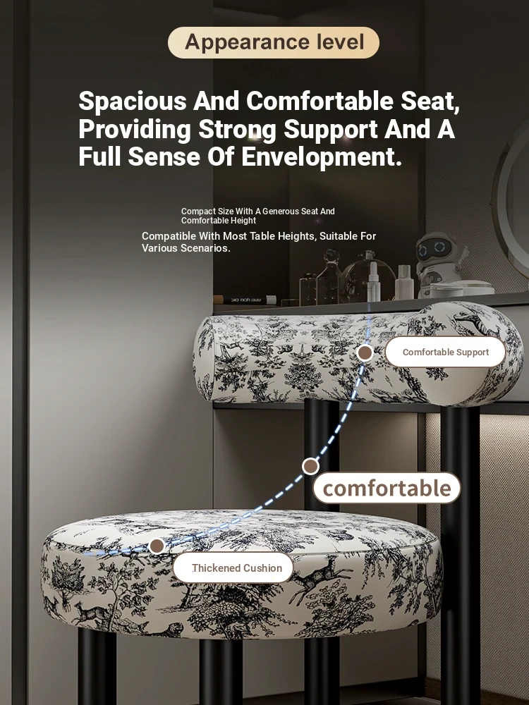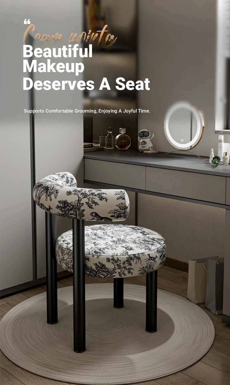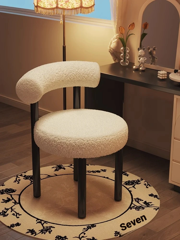Creamy Luxury Chair with Elegant Backrest - Perfect Vanity Stool for Master Bedroom, Ideal for Women's Makeup and Nail Art in Bedrooms.