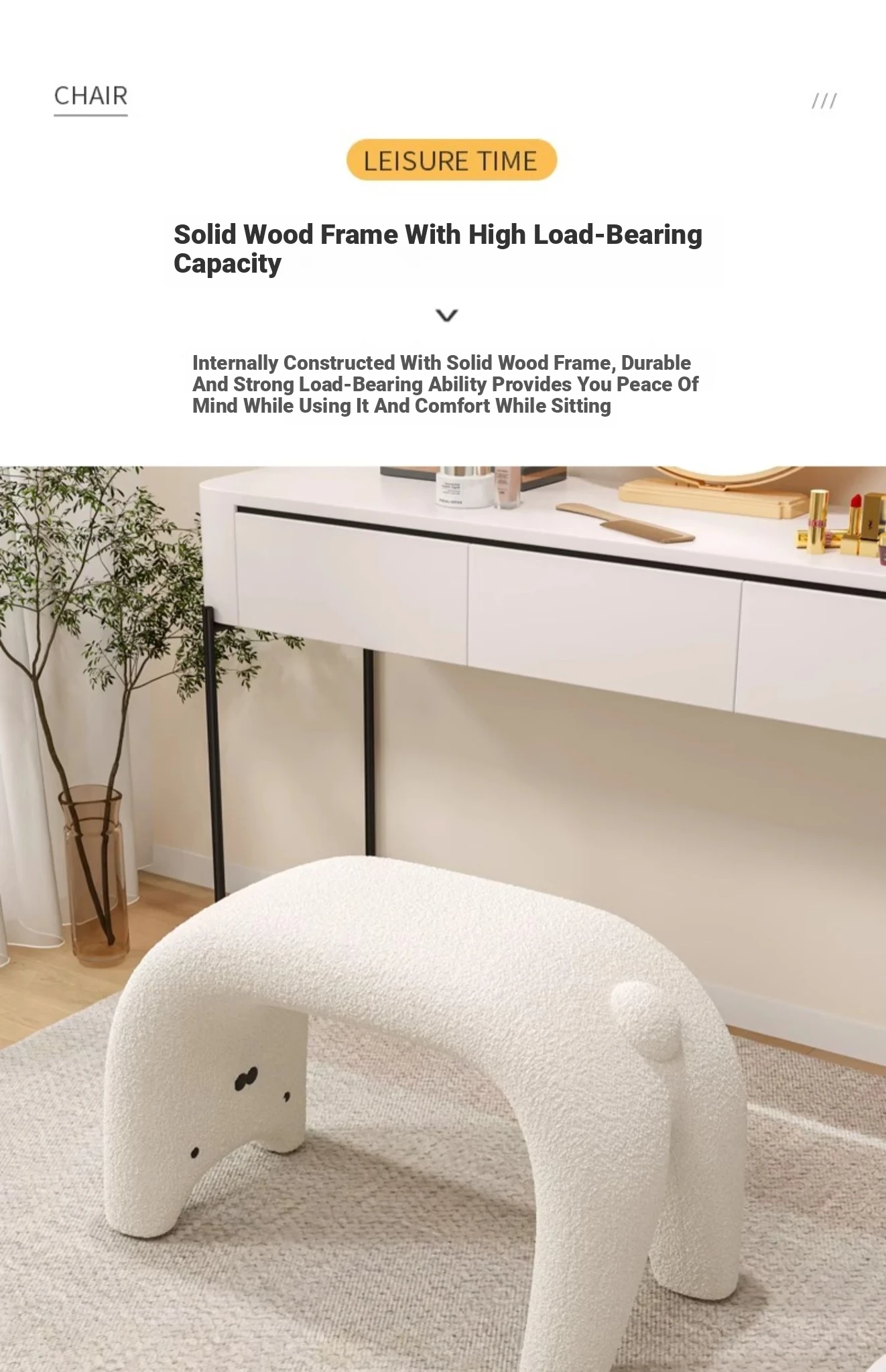 Creamy Makeup Vanity Stool - Luxurious Chic Dressing Table Chair for Women's Master Bedroom, Perfect for Beauty Routines and Stylish Decor, Trendy and Comfortable Design
