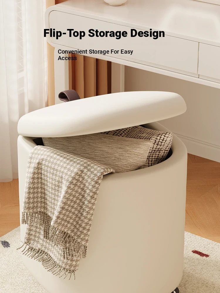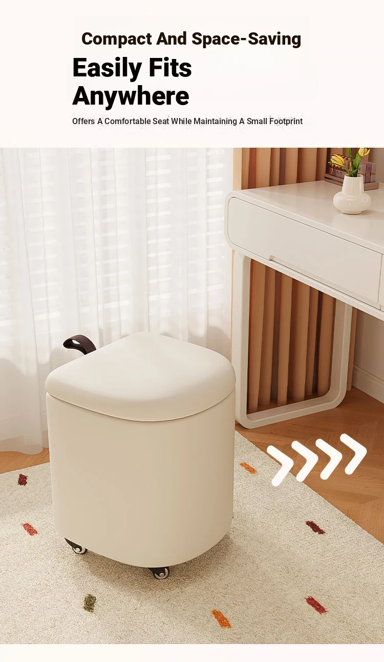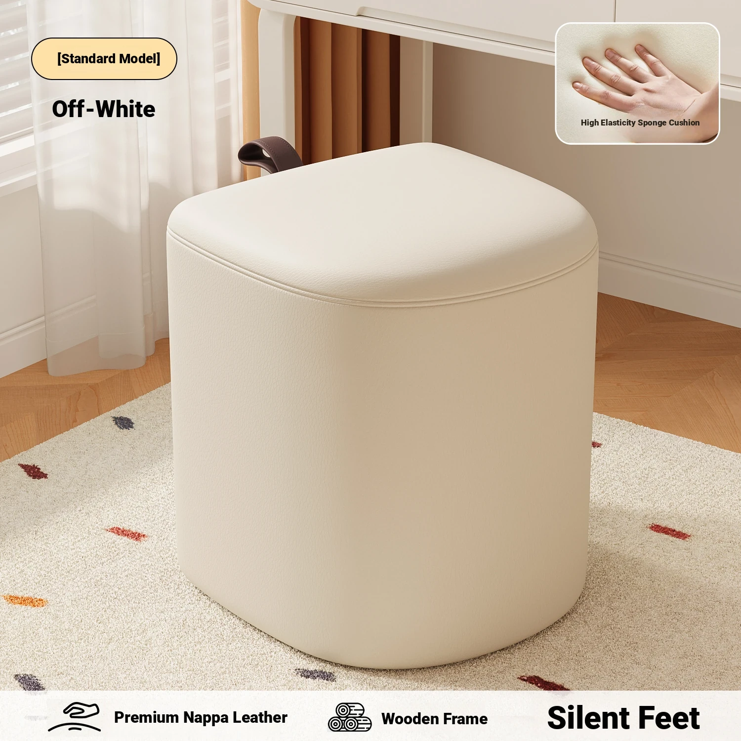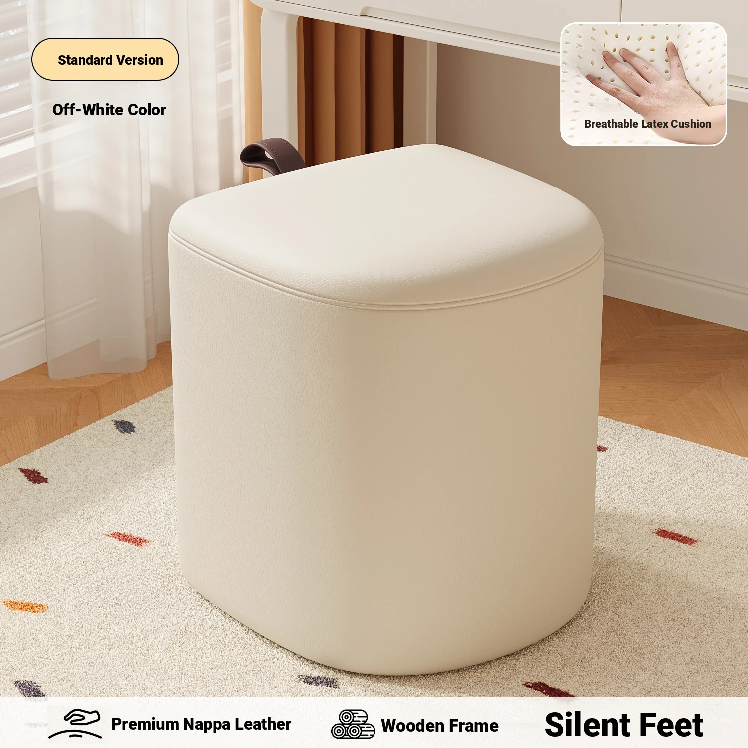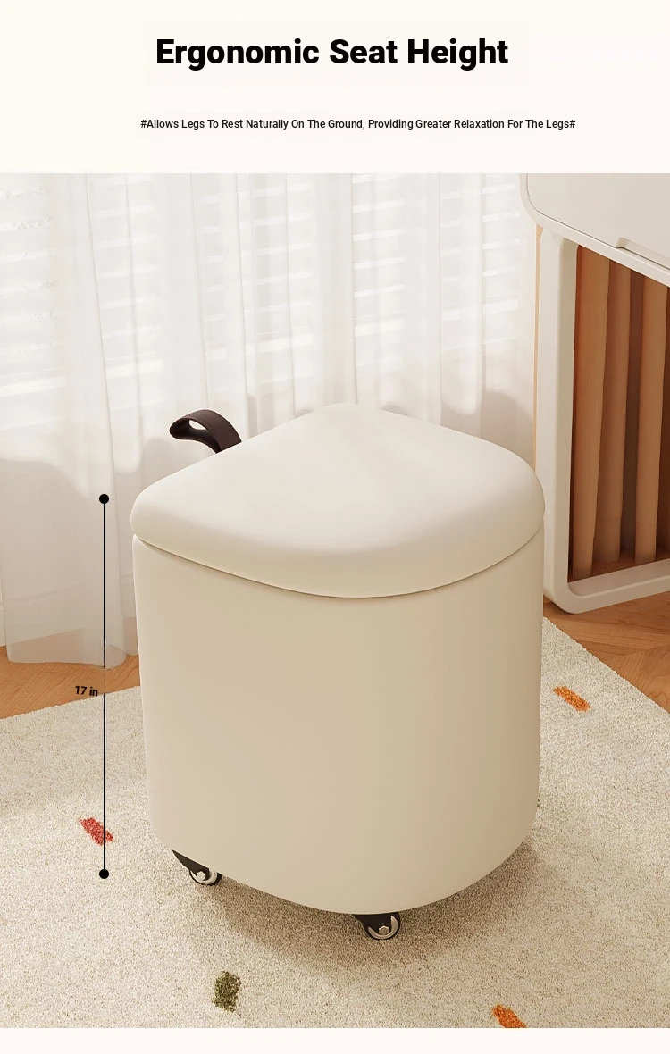 Creamy Vanity Stool for Girls - Elegant Makeup Chair for Bedroom, Lightweight Luxury with Storage, Perfect for Home Use and Nail Art. Square Design for Stylish Comfort.