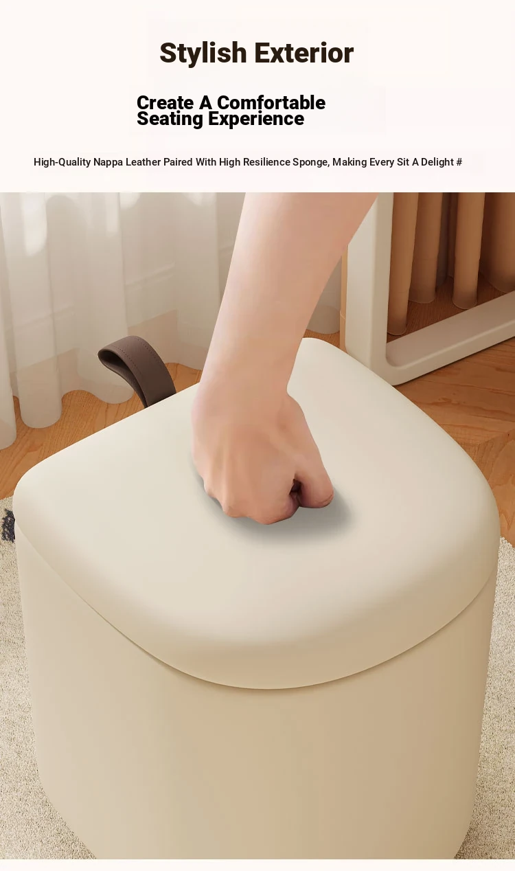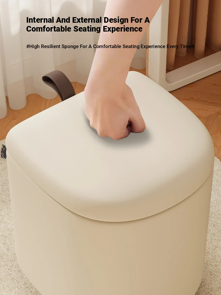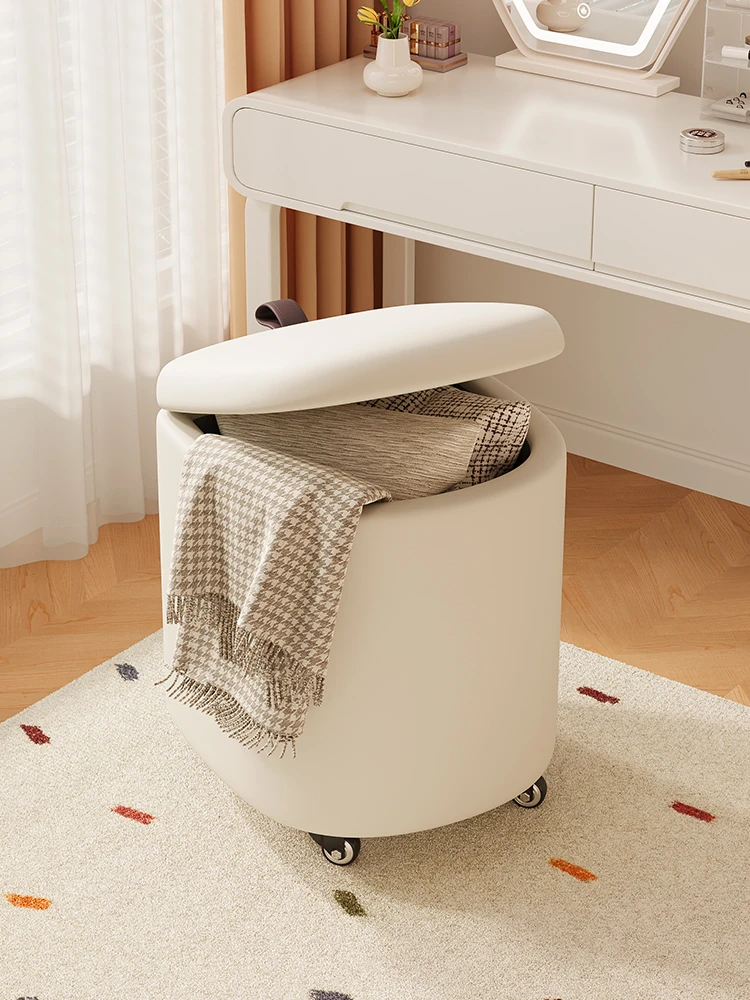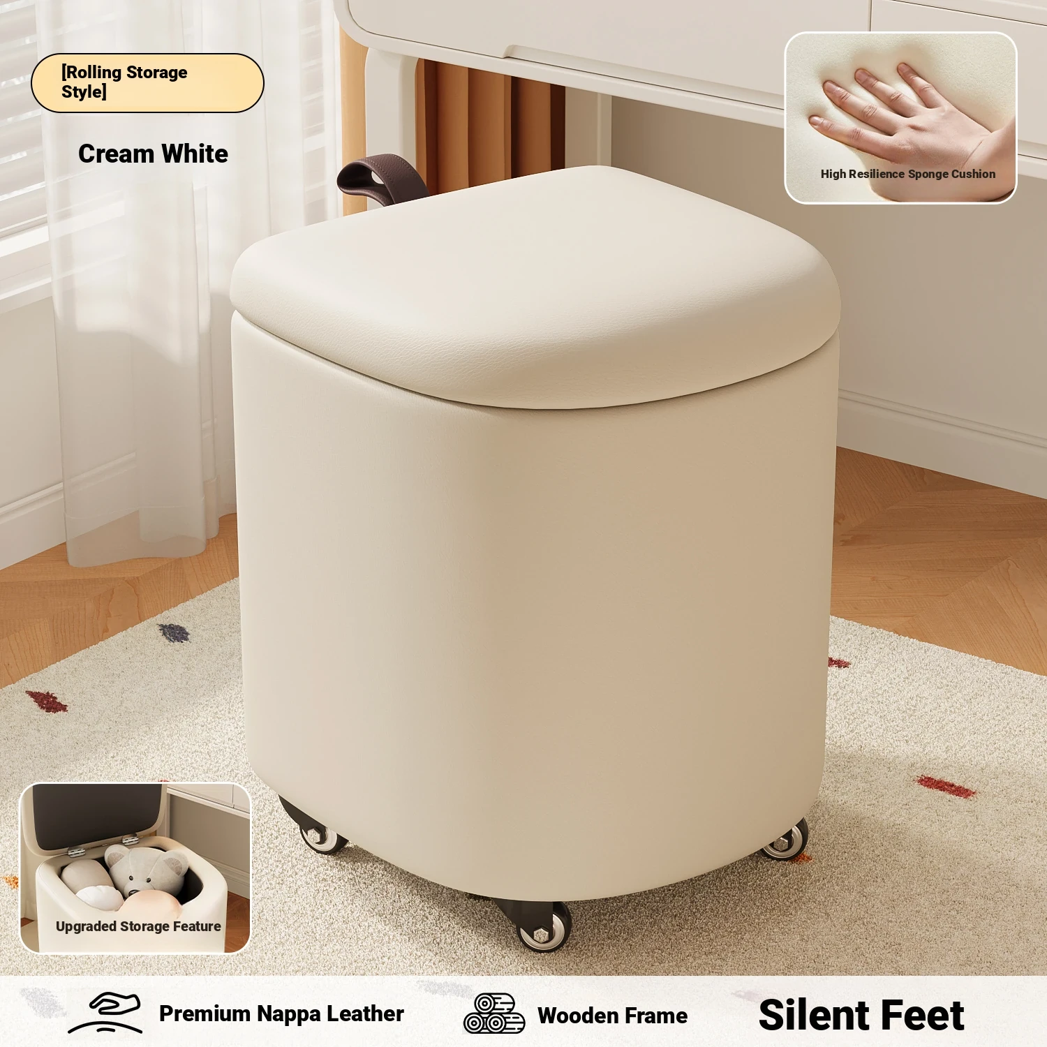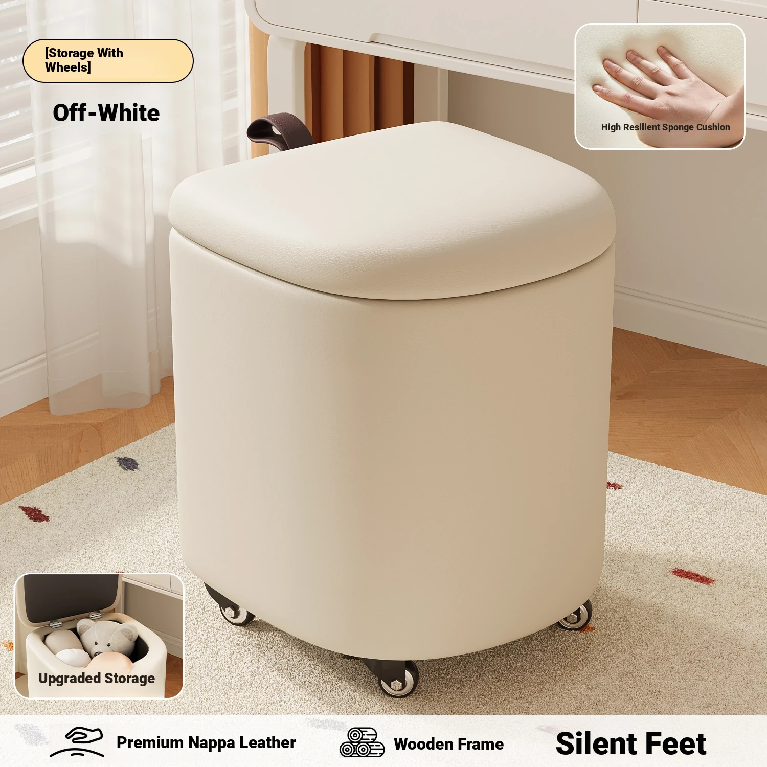 Creamy Vanity Stool for Girls - Elegant Makeup Chair for Bedroom, Lightweight Luxury with Storage, Perfect for Home Use and Nail Art. Square Design for Stylish Comfort.