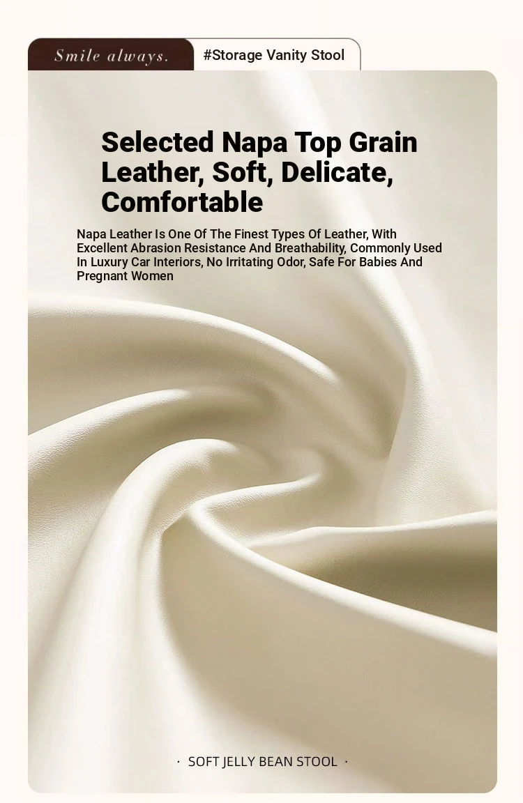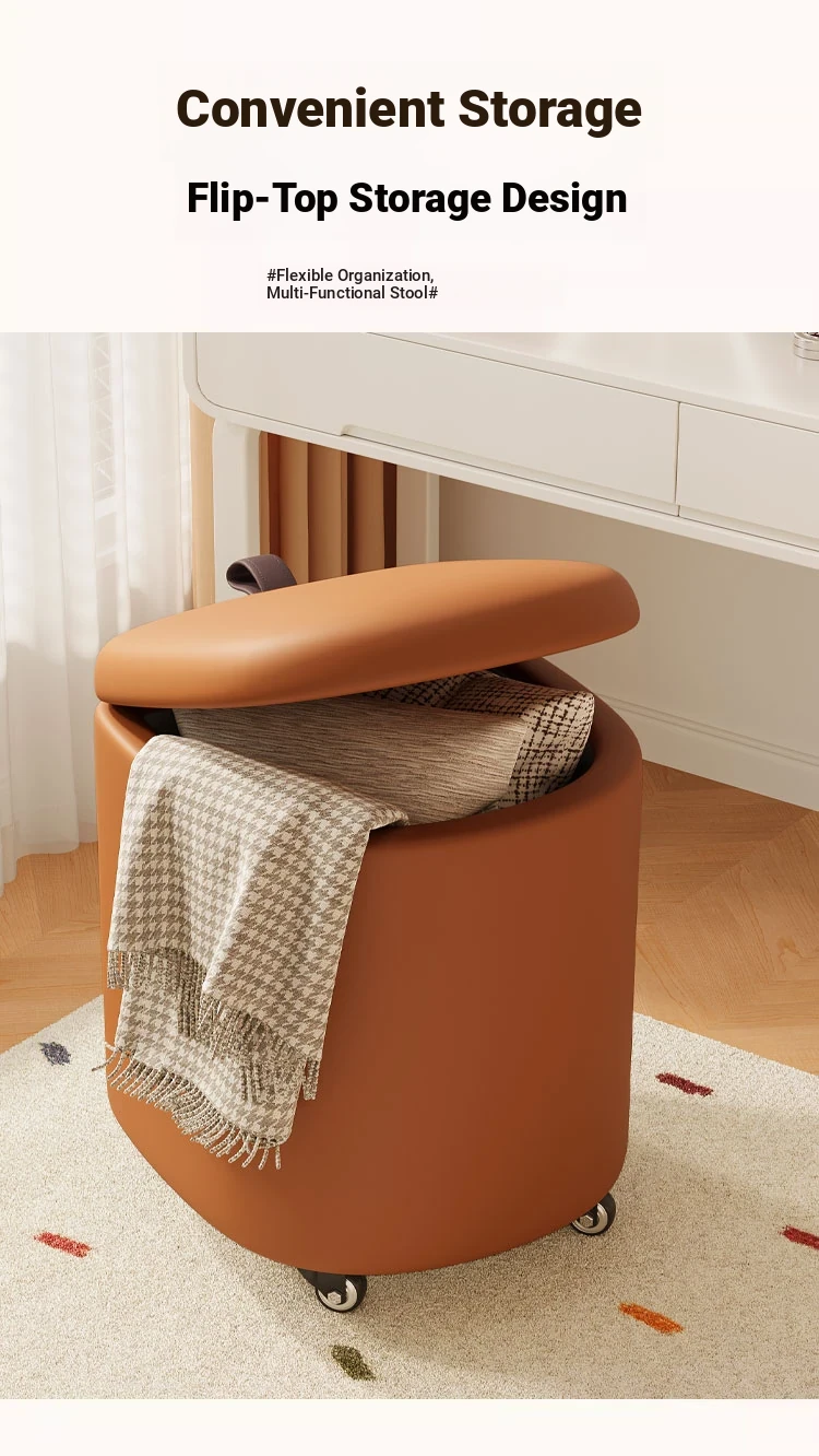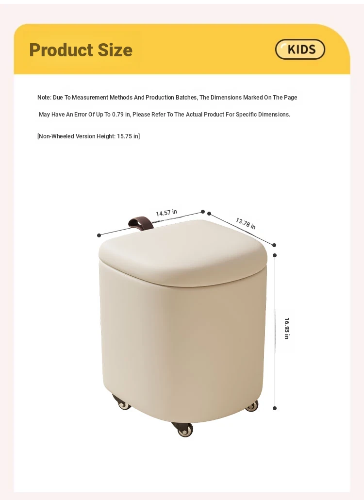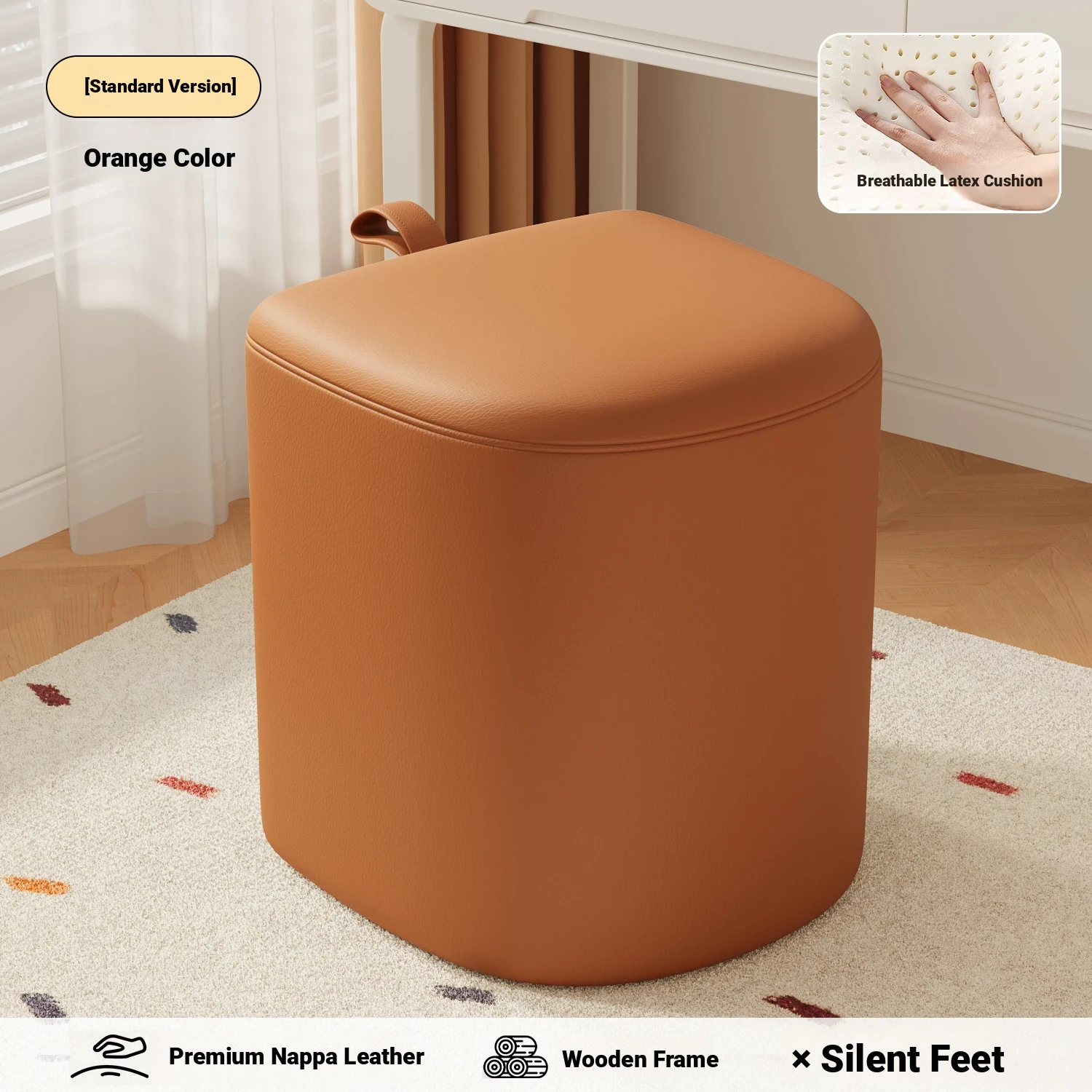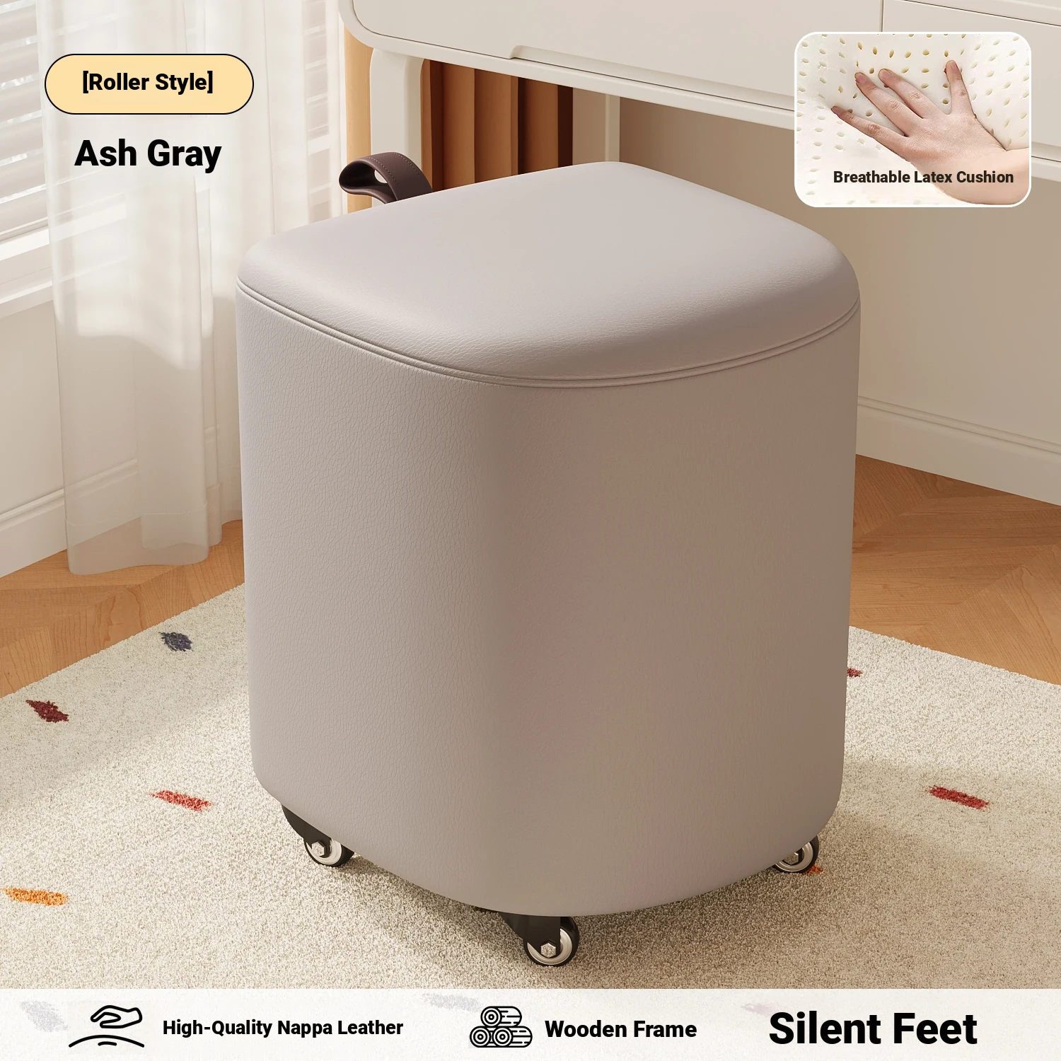Creamy Vanity Stool for Girls - Elegant Makeup Chair for Bedroom, Lightweight Luxury with Storage, Perfect for Home Use and Nail Art. Square Design for Stylish Comfort.