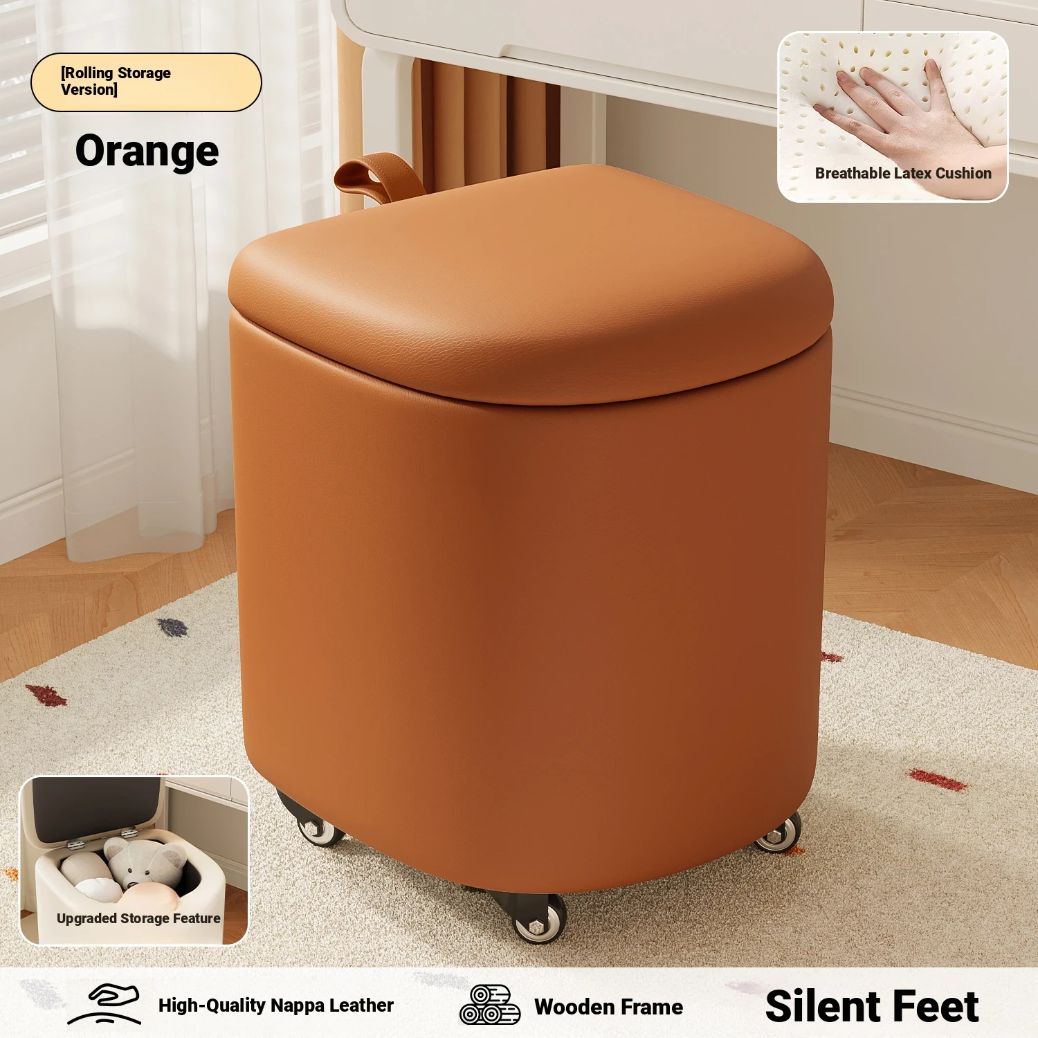 Roller Storage Item - Orange Red [Extrusive Latex Mat] High Quality Nappa Leather - 360° Rotating