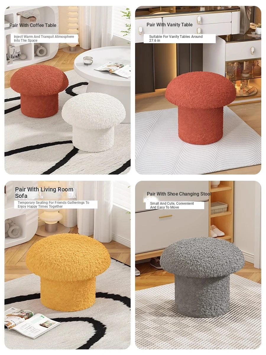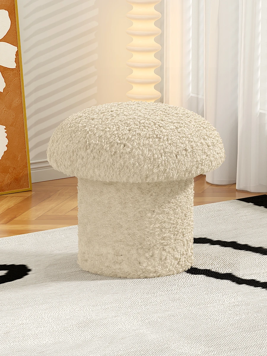 Cute Mushroom Makeup Stool for Girls' Bedroom - Creamy Aesthetic Vanity Chair, Stylish Small Round Ottoman for Home Use, Perfect for Sofas and Dressing Tables