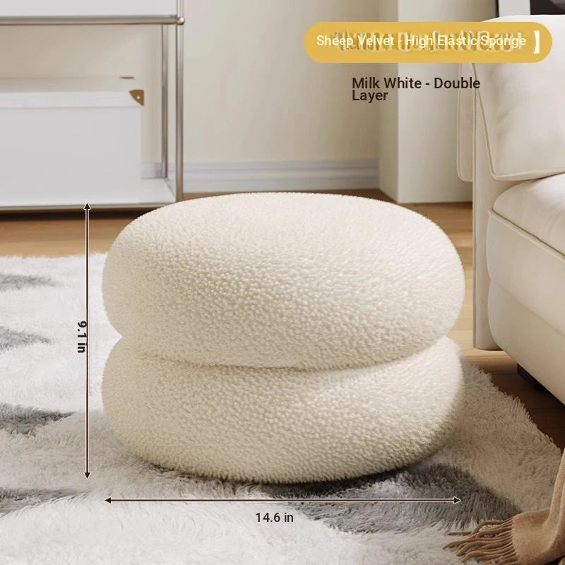 Widening thickened]⭐Creamy-white small Cashmere mushroom stool [high elastic sponge/solid load-bearing/Cashmere fabric]]