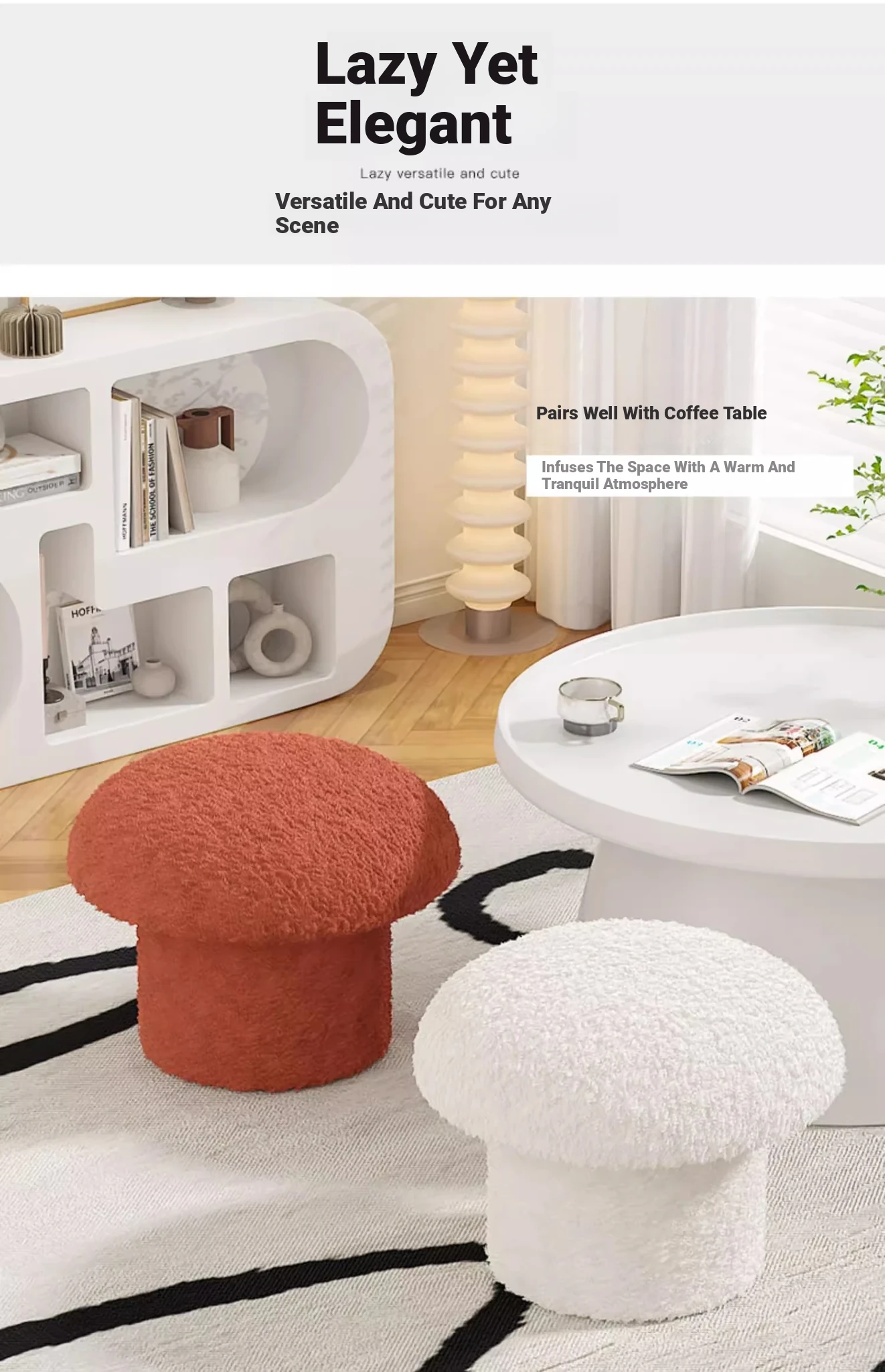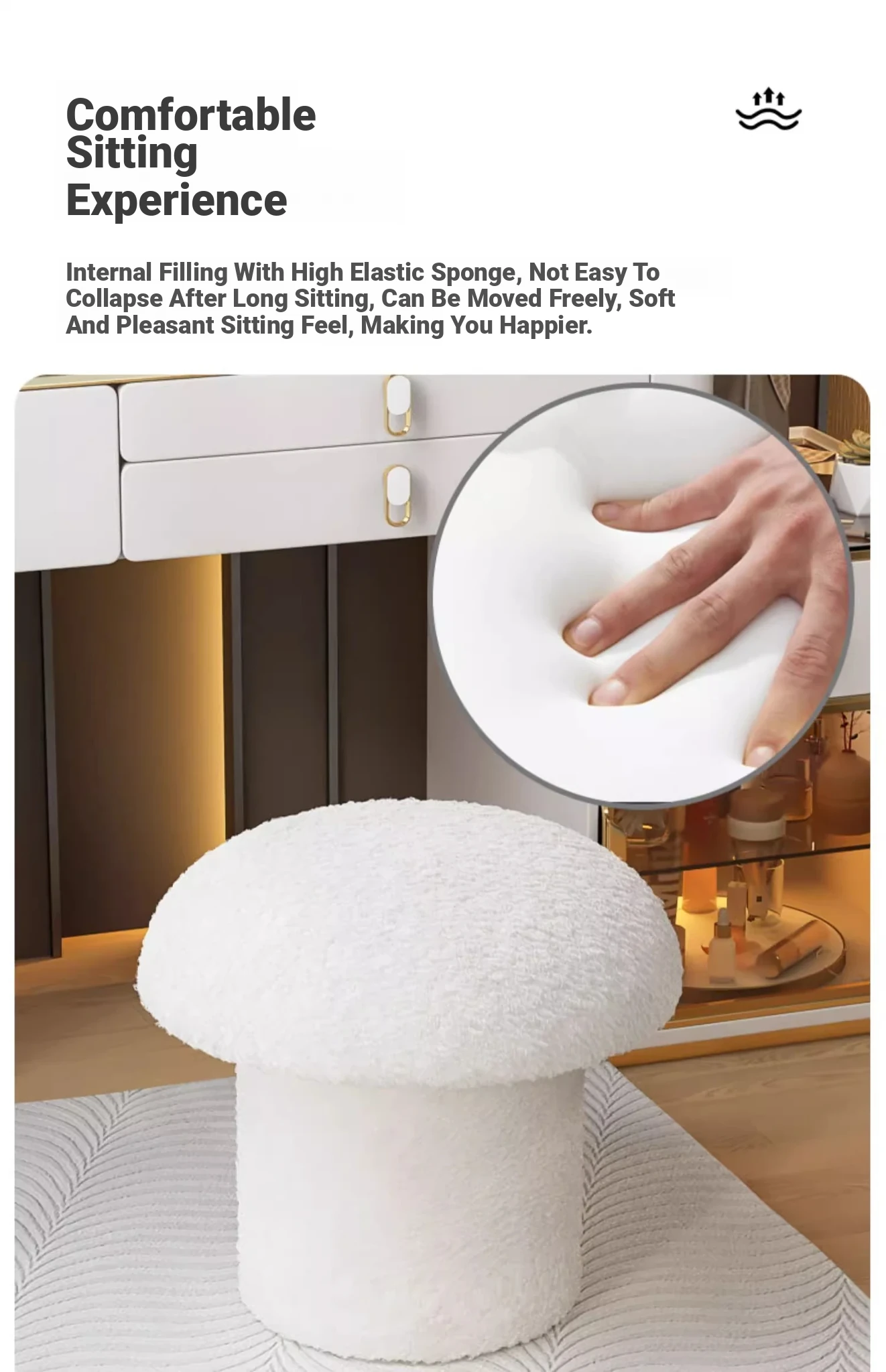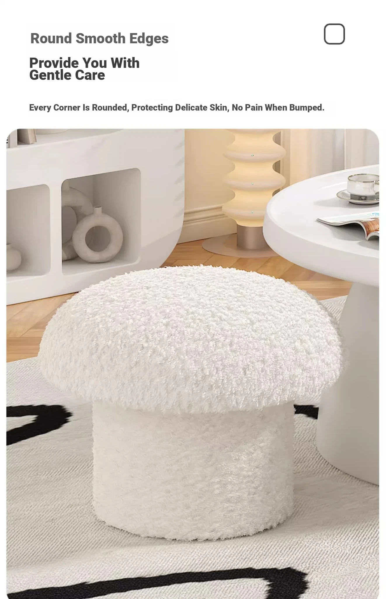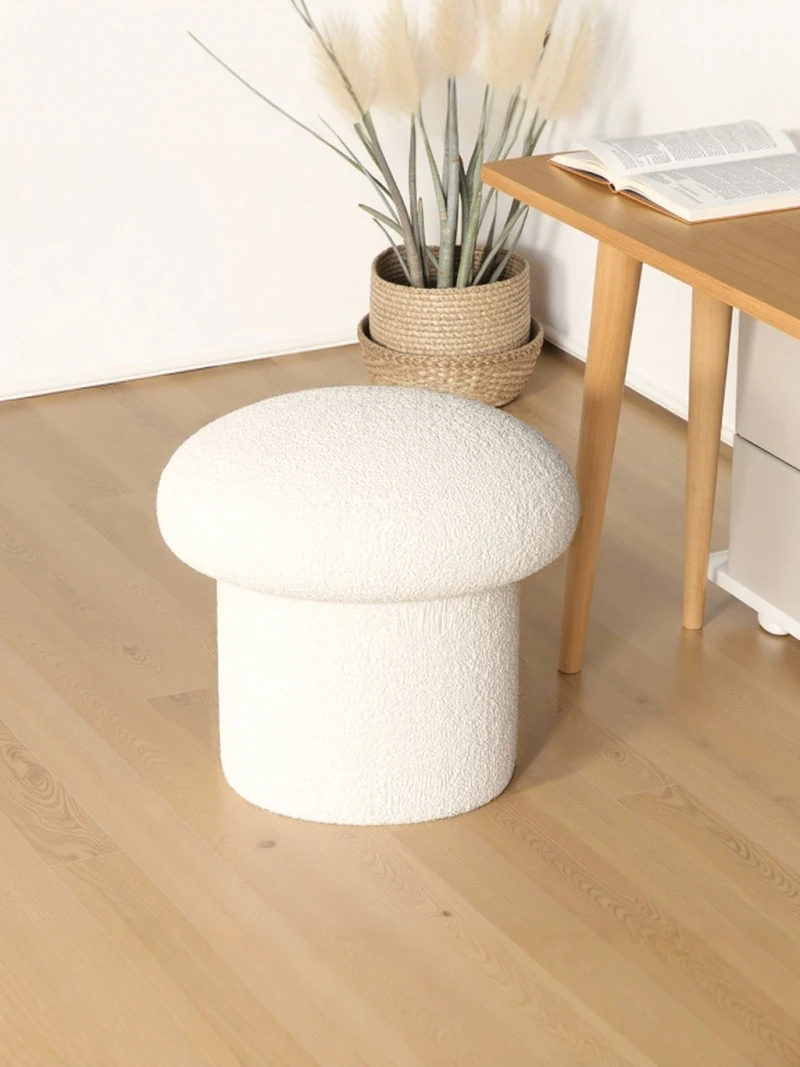 [Environmental-Friendly material]]⭐Creamy-white small Cashmere mushroom stool [high elastic sponge/solid load-bearing/Cashmere fabric]]
