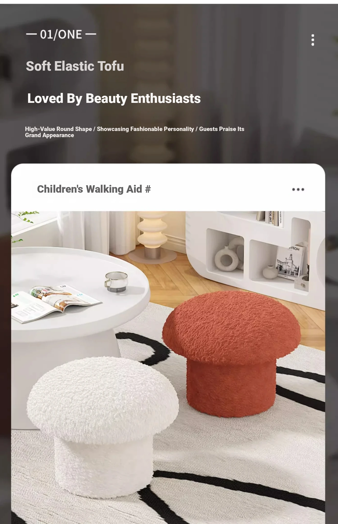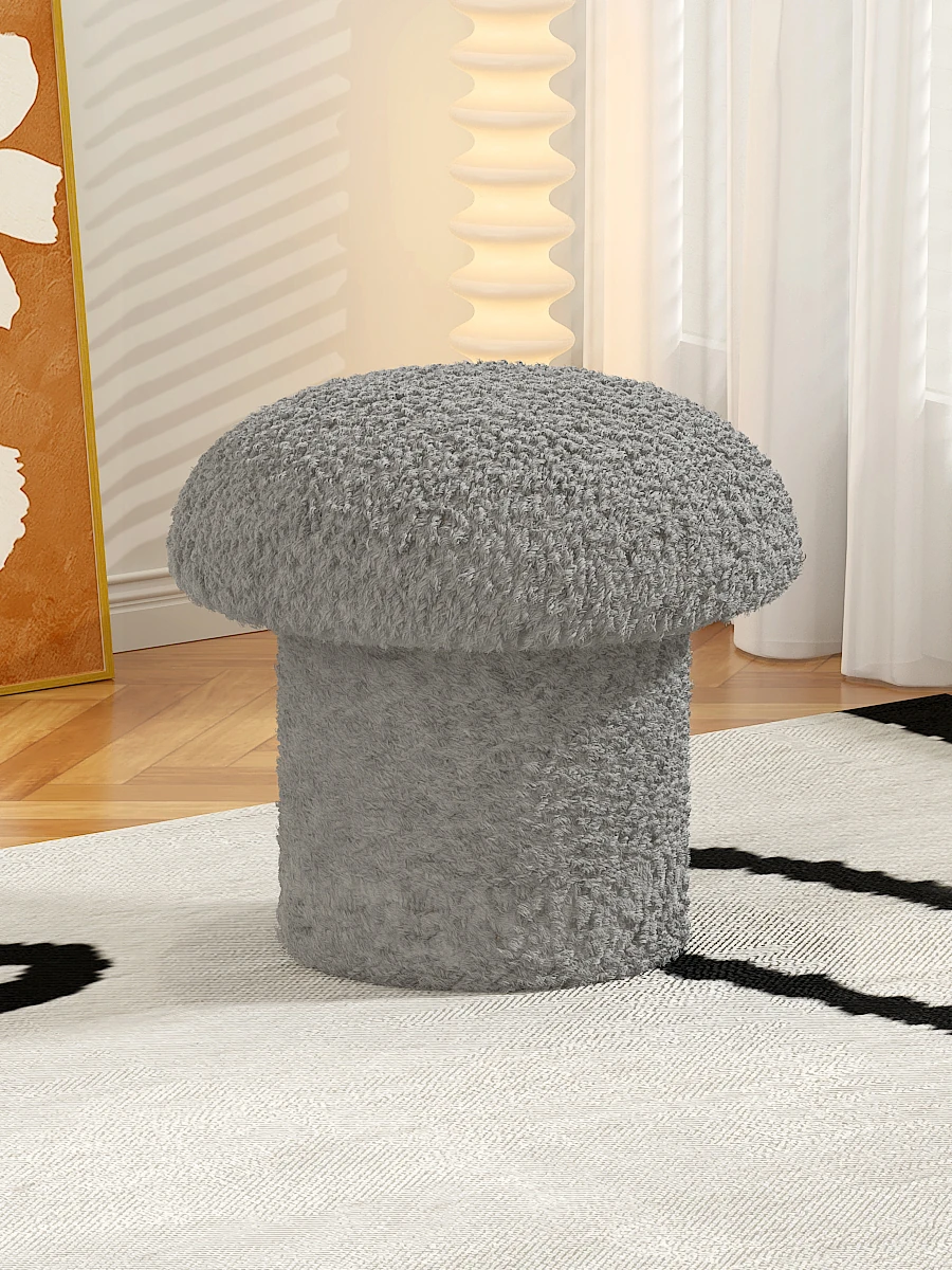 [Environmental-Friendly material]]⭐Light gray small Cashmere mushroom stool [high elastic sponge/solid load-bearing/Cashmere fabric]]