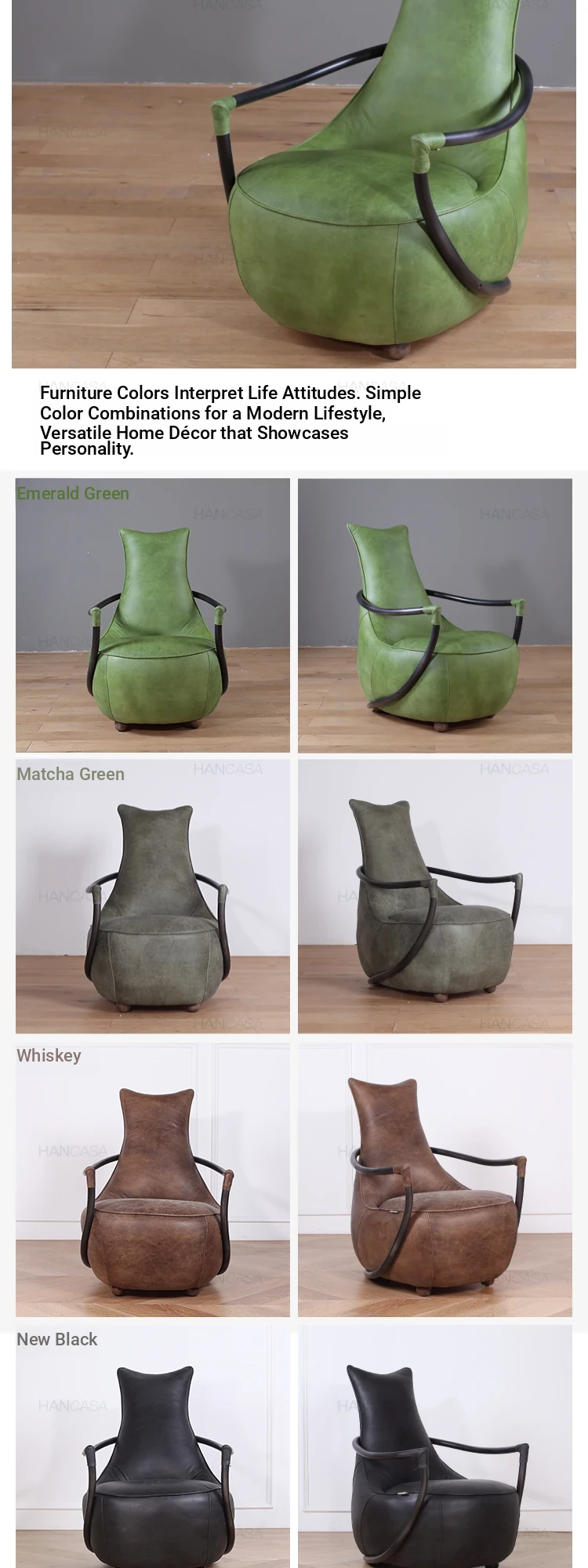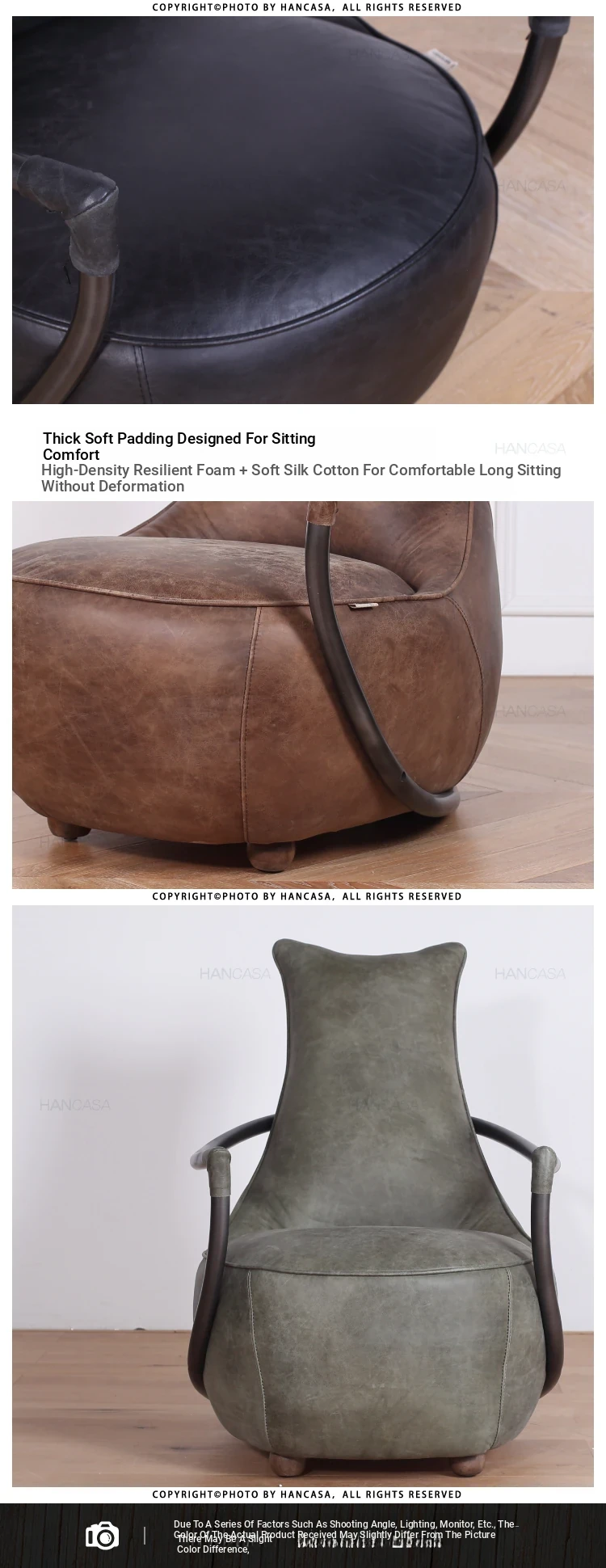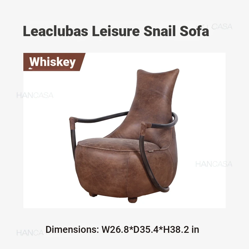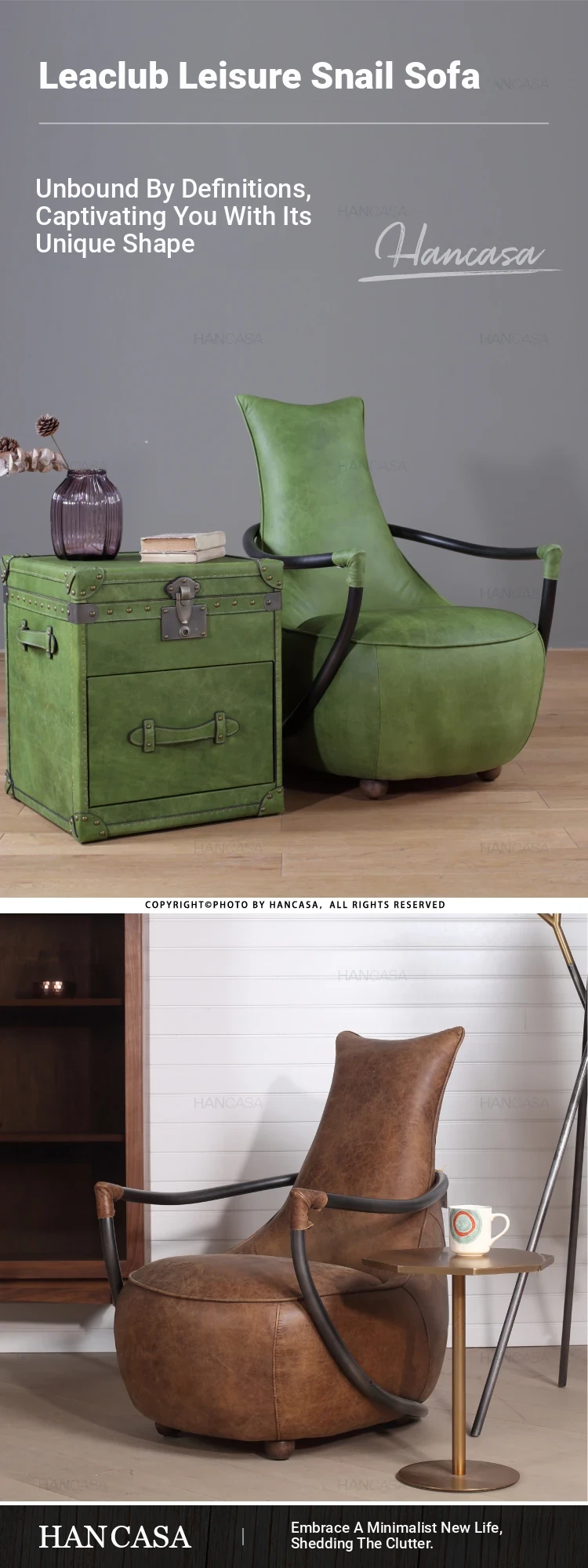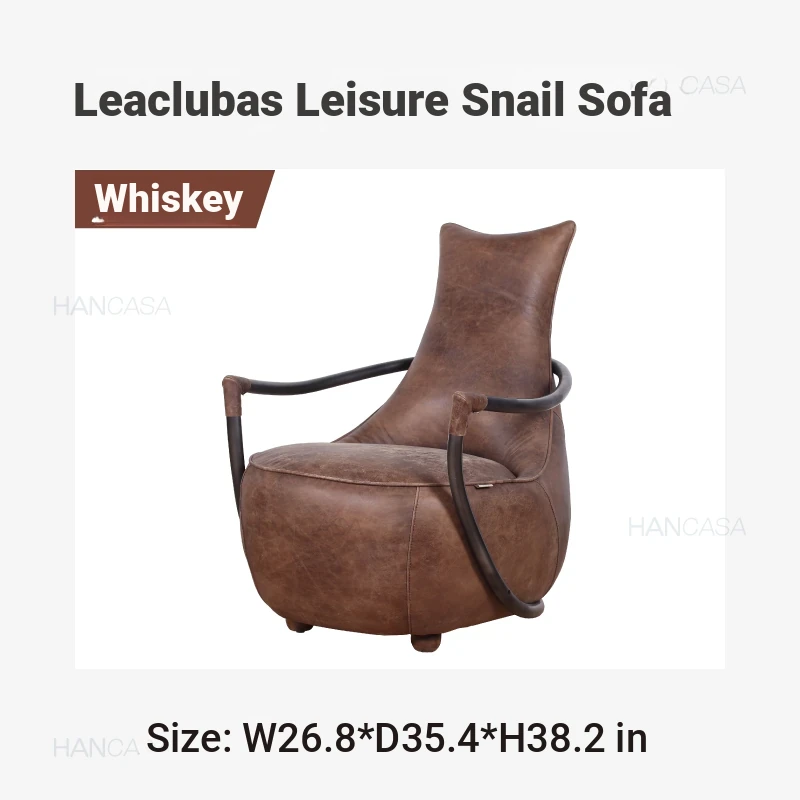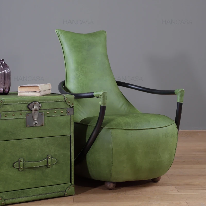 Designer Vintage Leather Single Sofa - High-End Luxury Curved Iron Art American Retro Armchair, Perfect for Stylish Relaxation