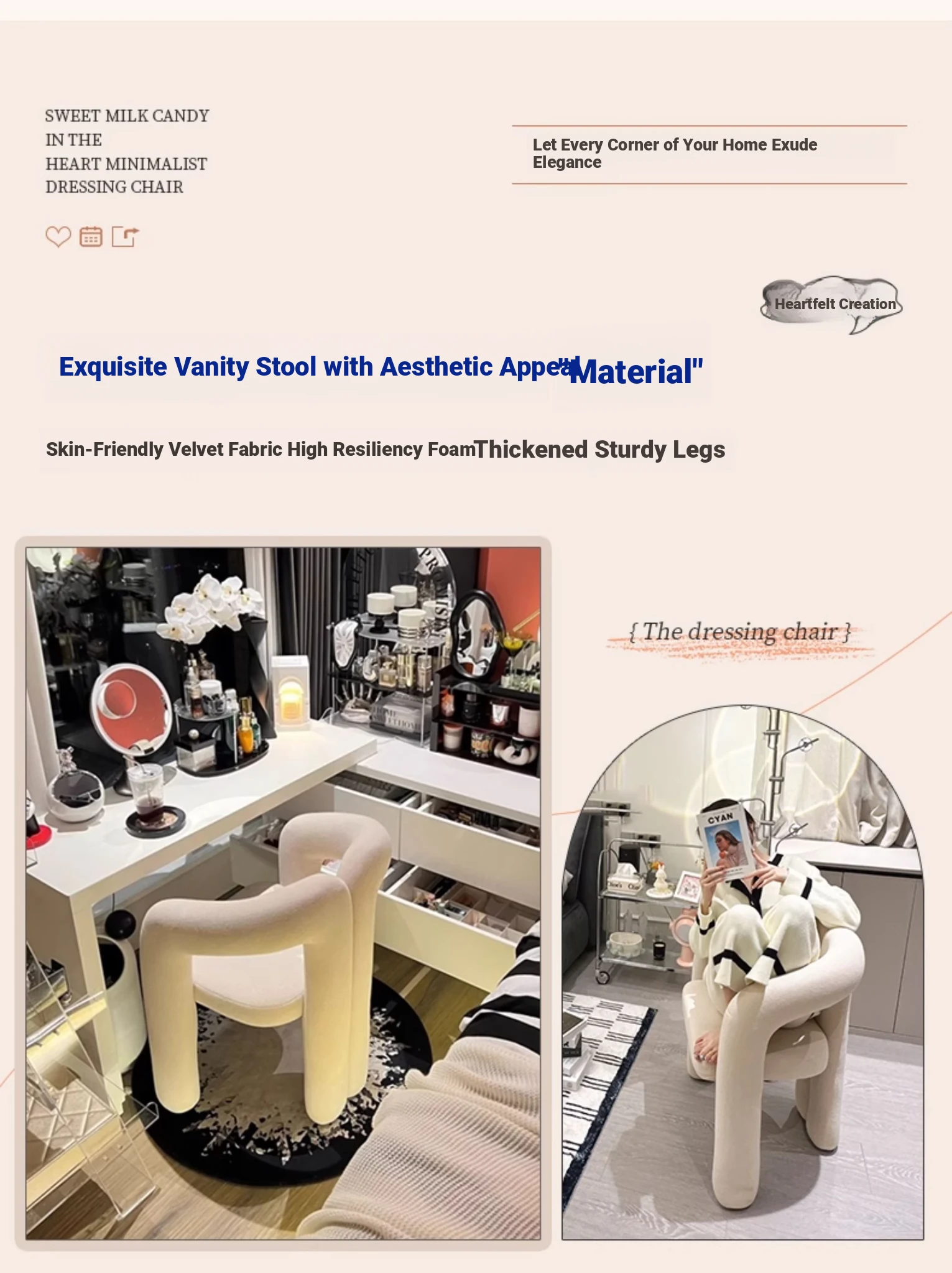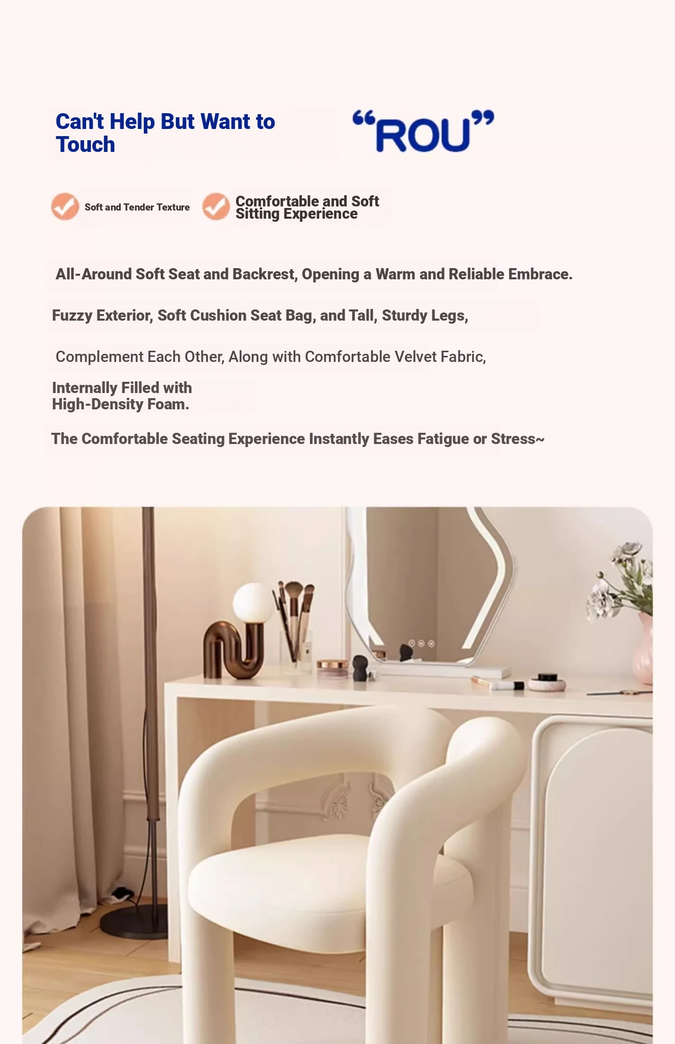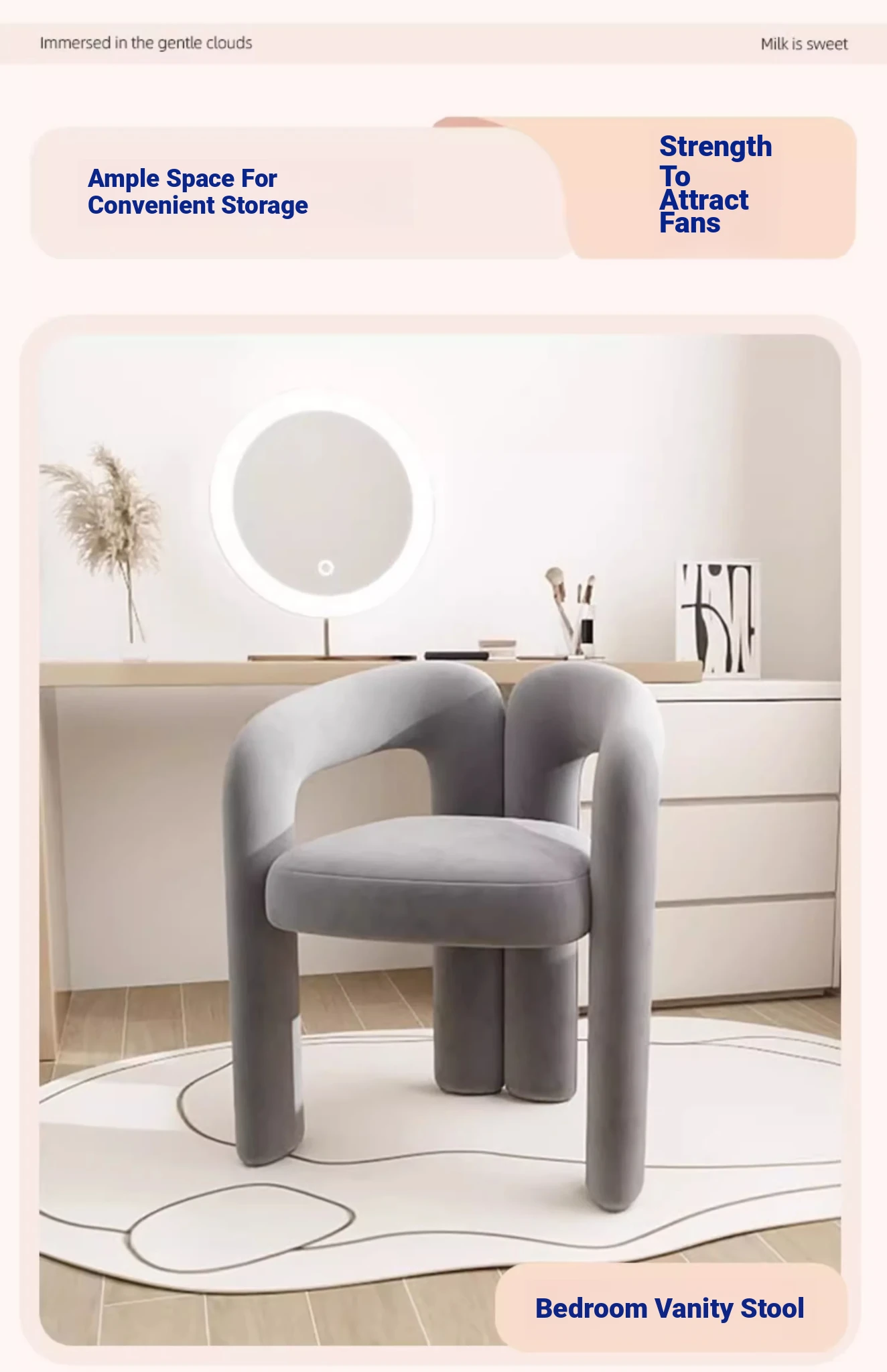 Elegant Dressing Table Stool for Girls' Bedrooms - Chic Makeup Chair with Backrest, Perfect for Nail Art and Home Use, Trending in Fashionable Closets!