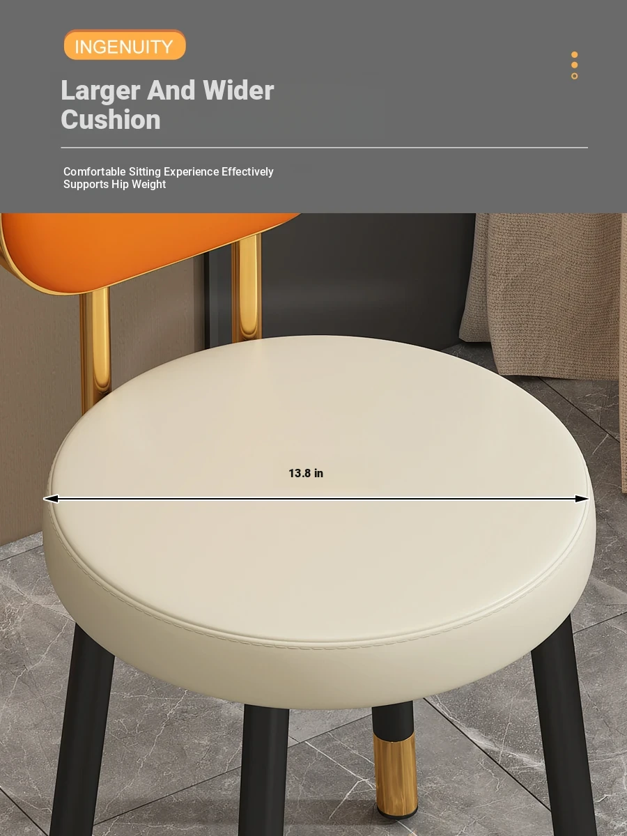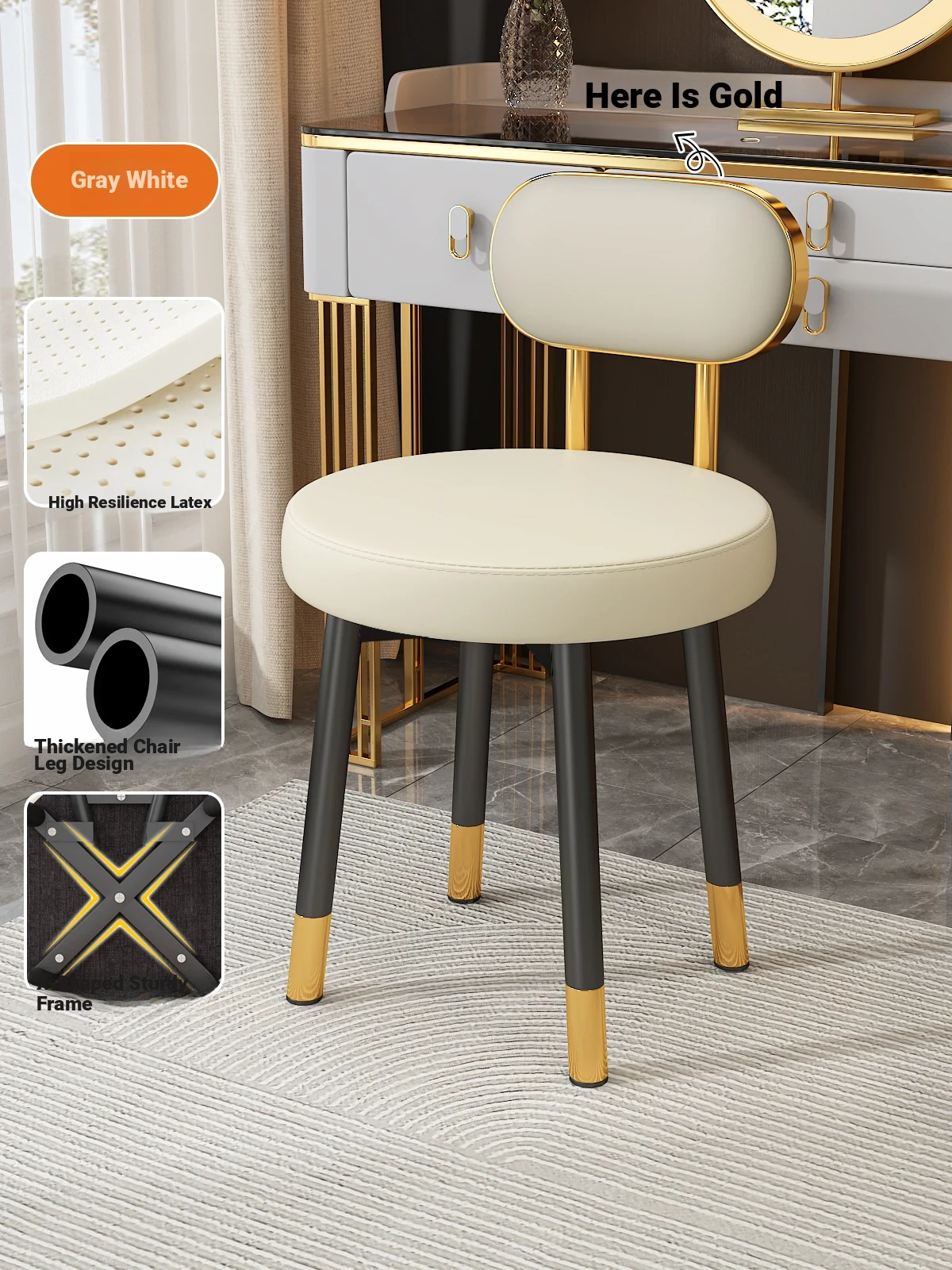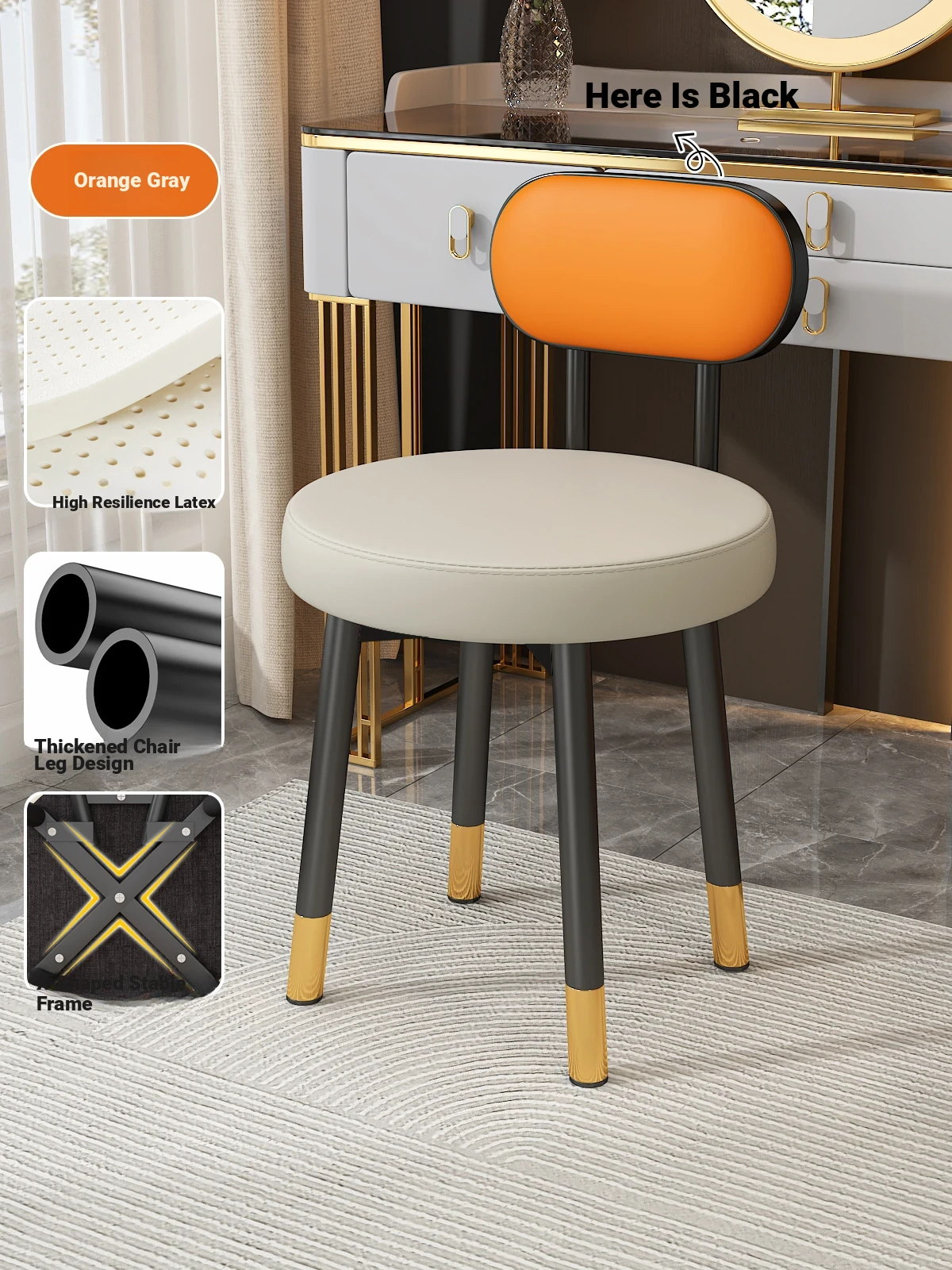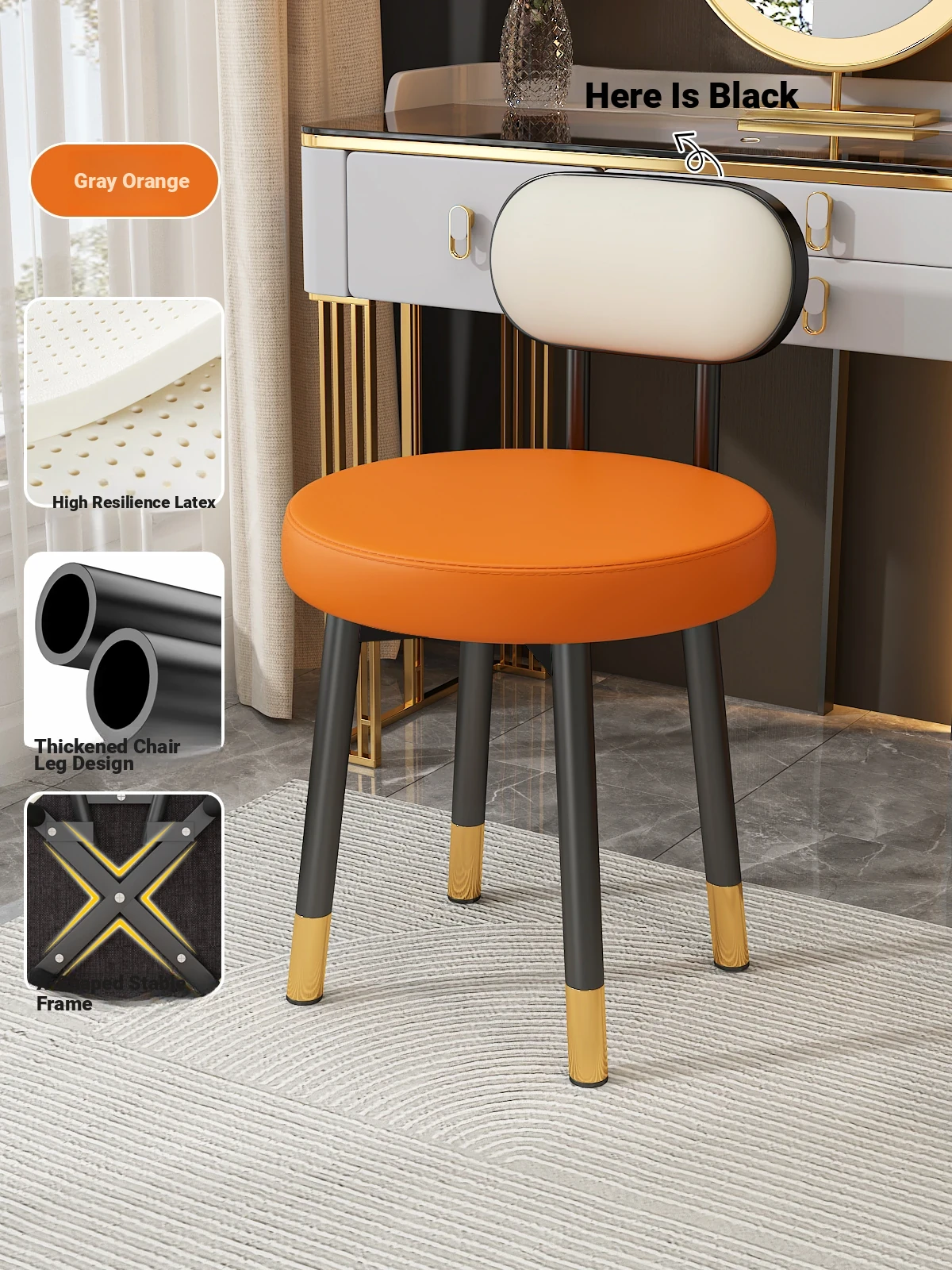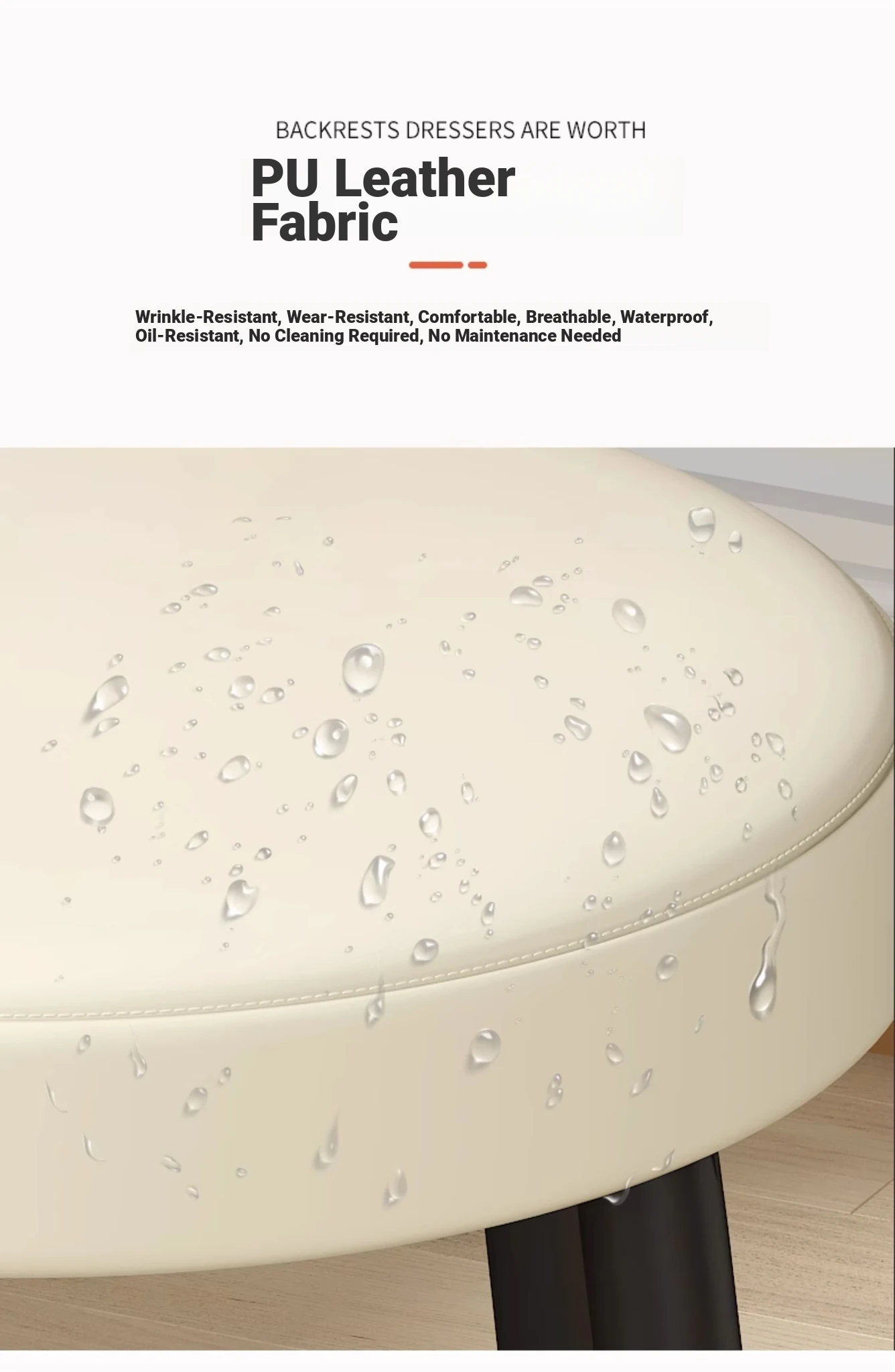 Elegant Home Makeup Stool - Luxury Feel for Women’s Bedroom Vanity. Stylish Backrest Chair, Compact Dining Chair, Perfect Round Stool for Any Space.