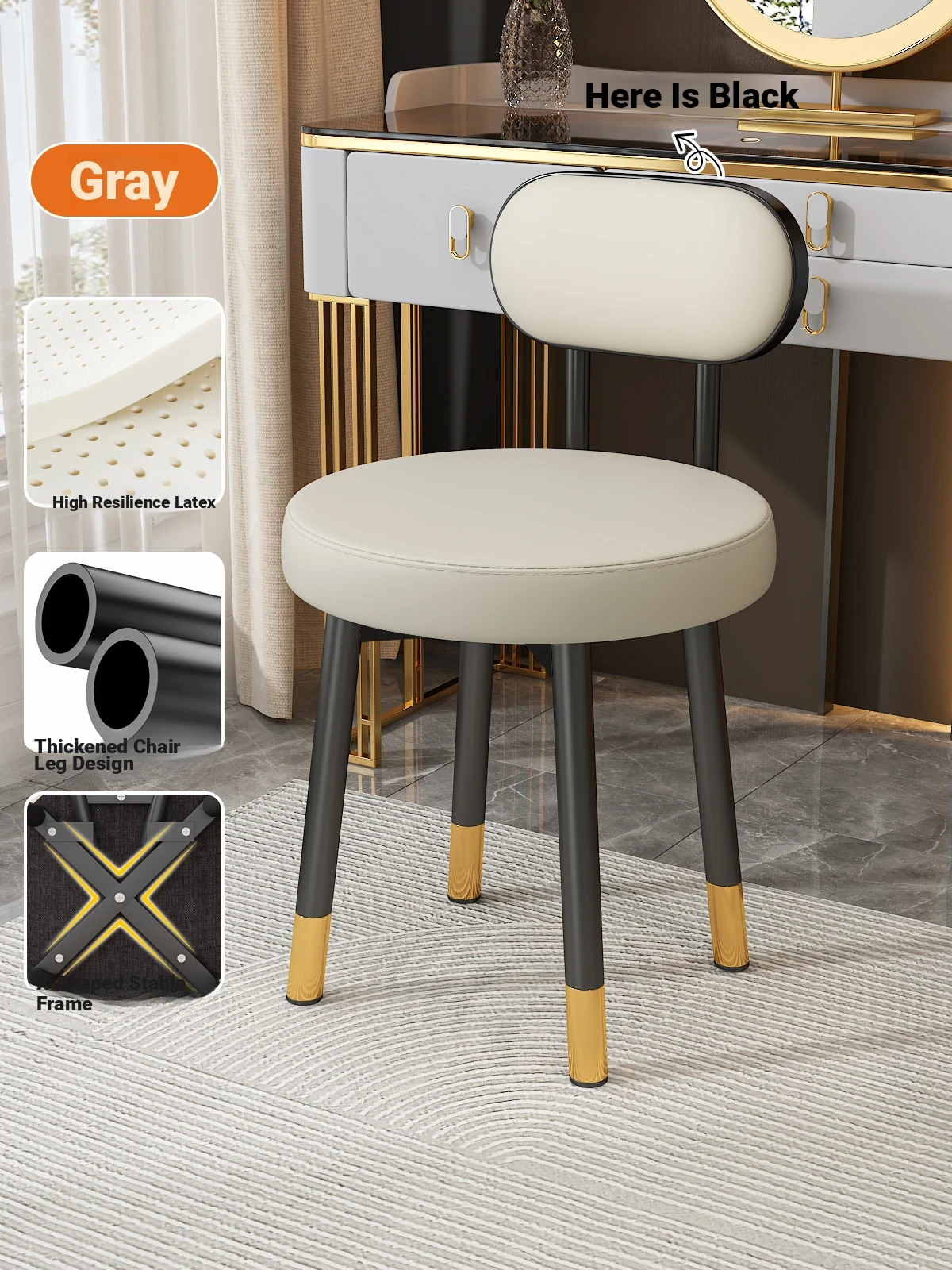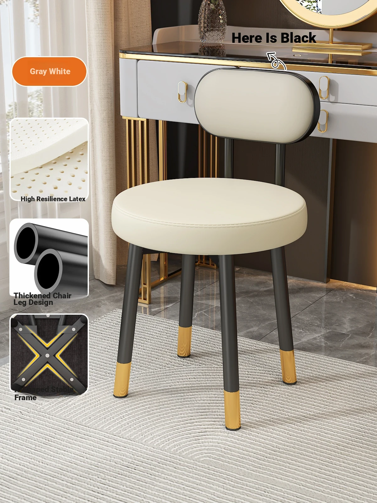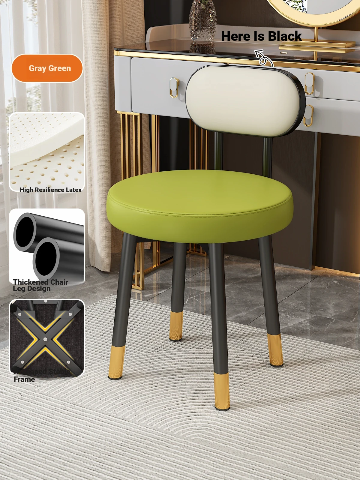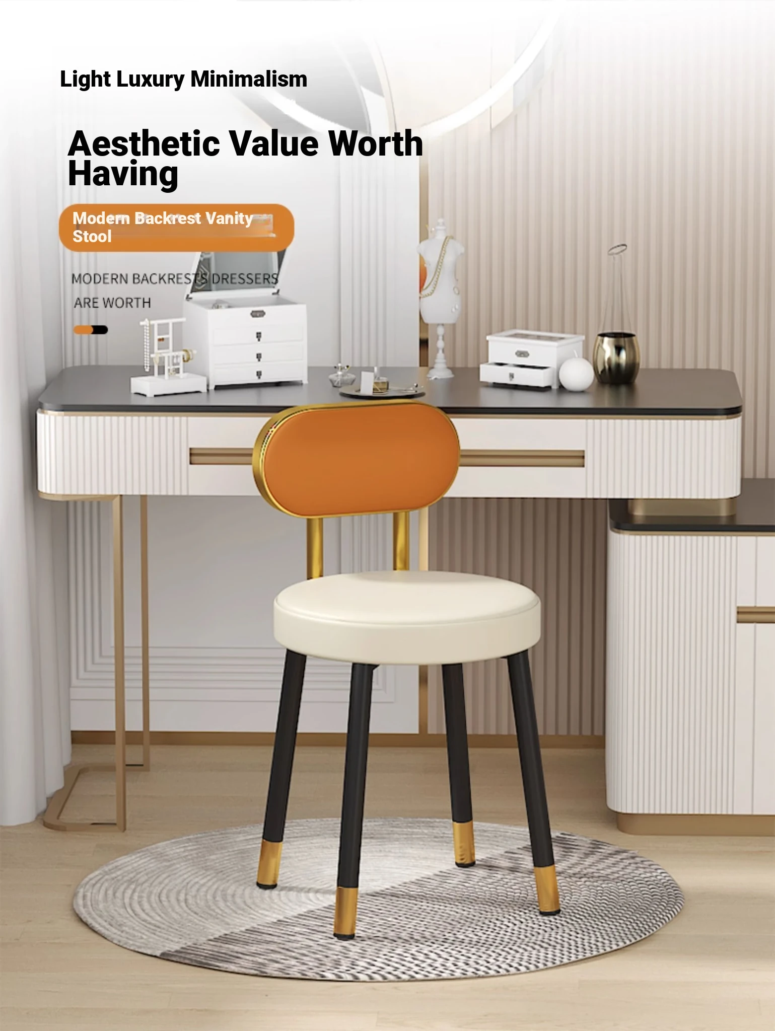 Elegant Home Makeup Stool - Luxury Feel for Women’s Bedroom Vanity. Stylish Backrest Chair, Compact Dining Chair, Perfect Round Stool for Any Space.
