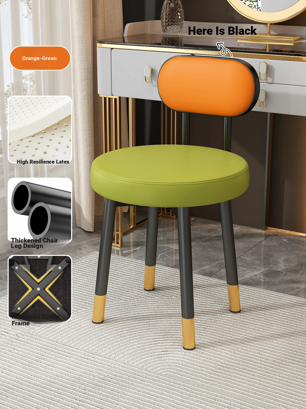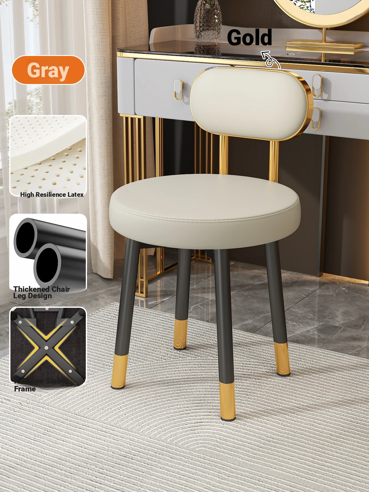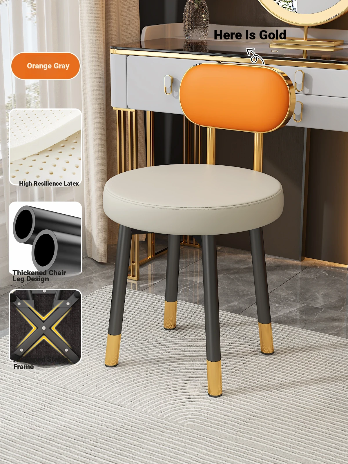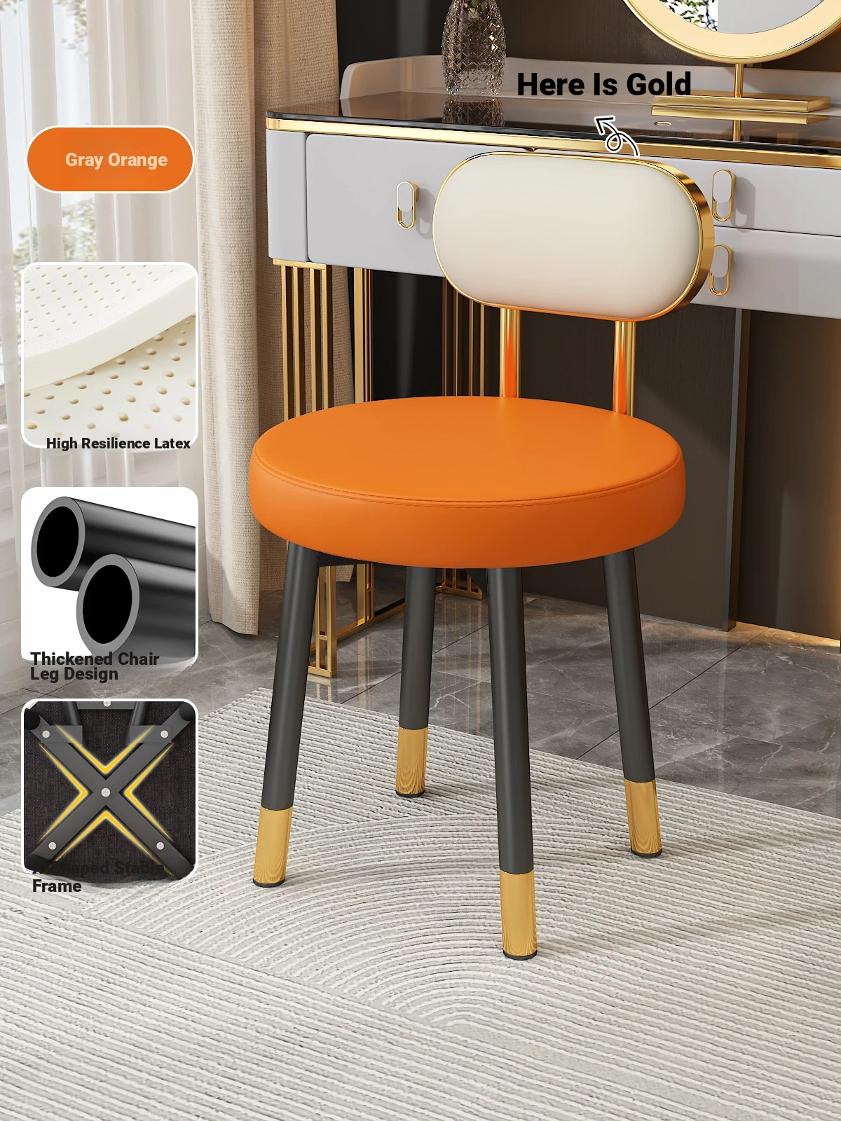 Elegant Home Makeup Stool - Luxury Feel for Women’s Bedroom Vanity. Stylish Backrest Chair, Compact Dining Chair, Perfect Round Stool for Any Space.
