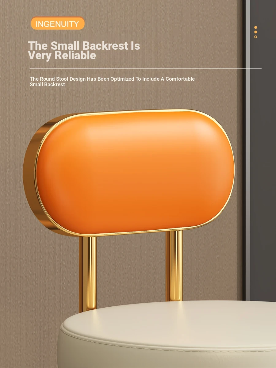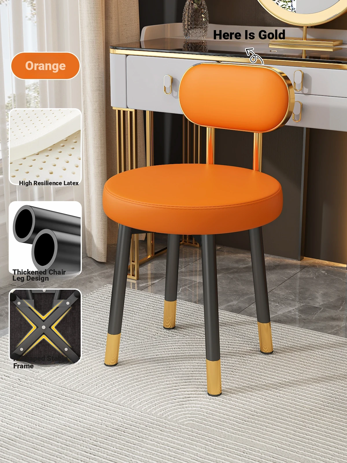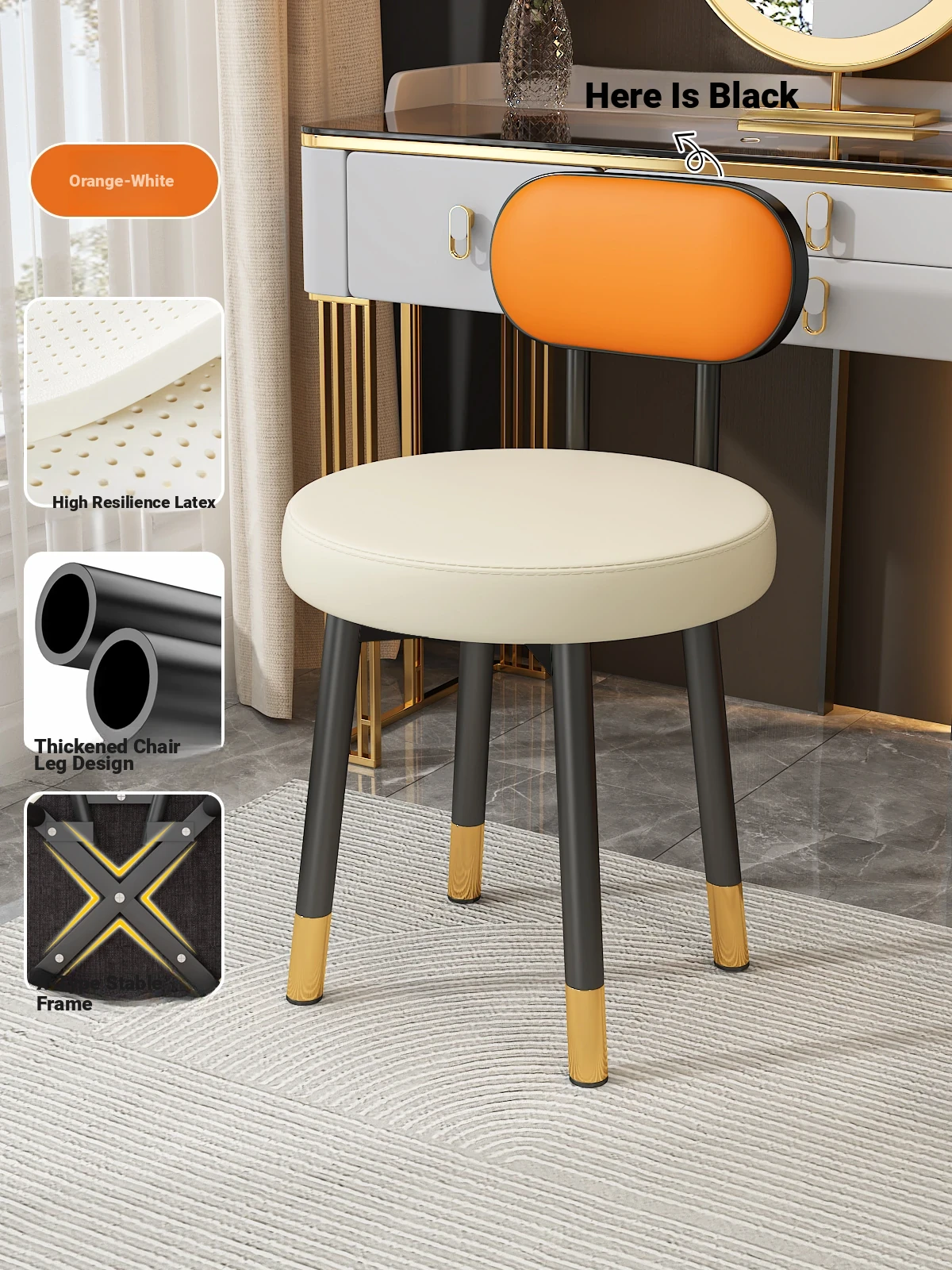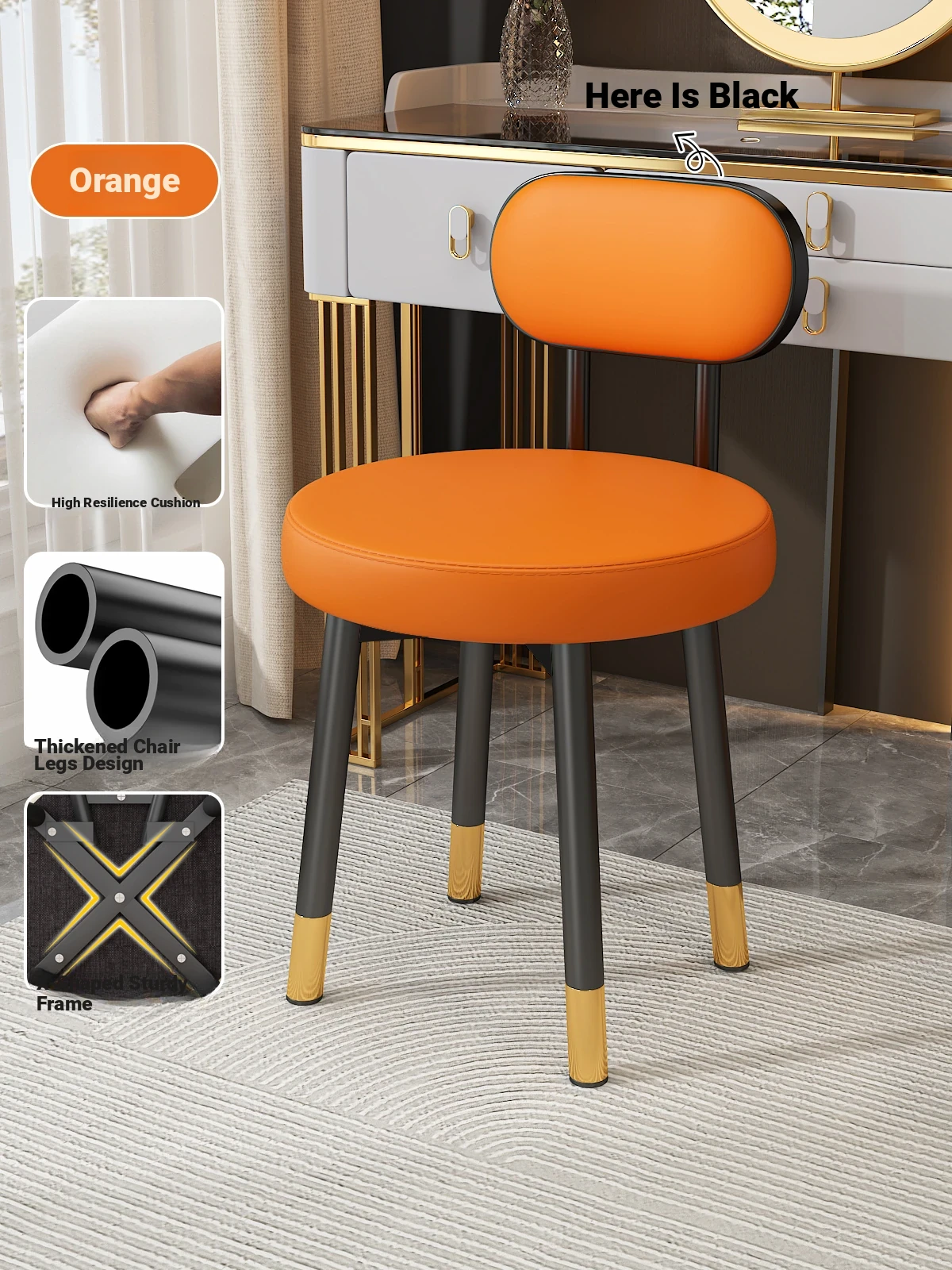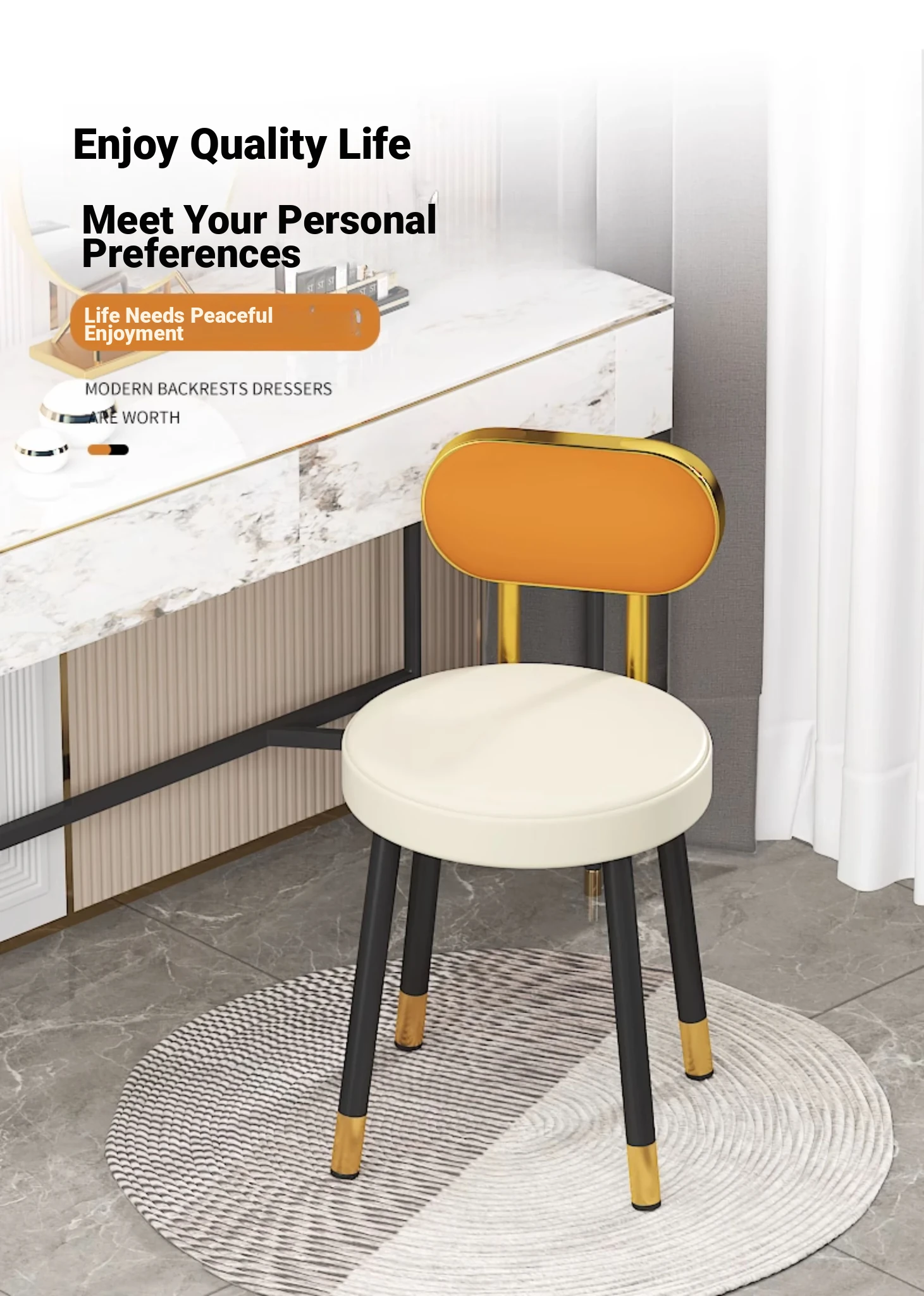 Elegant Home Makeup Stool - Luxury Feel for Women’s Bedroom Vanity. Stylish Backrest Chair, Compact Dining Chair, Perfect Round Stool for Any Space.