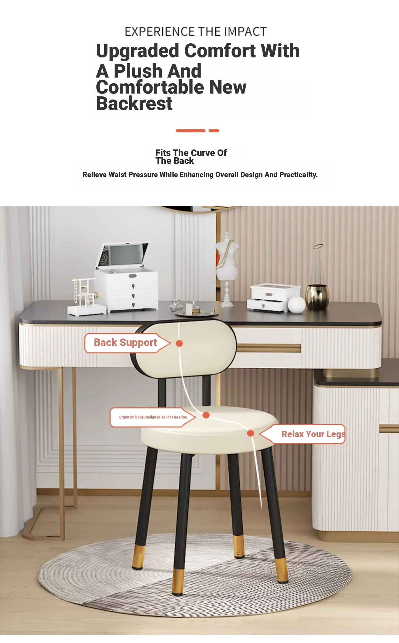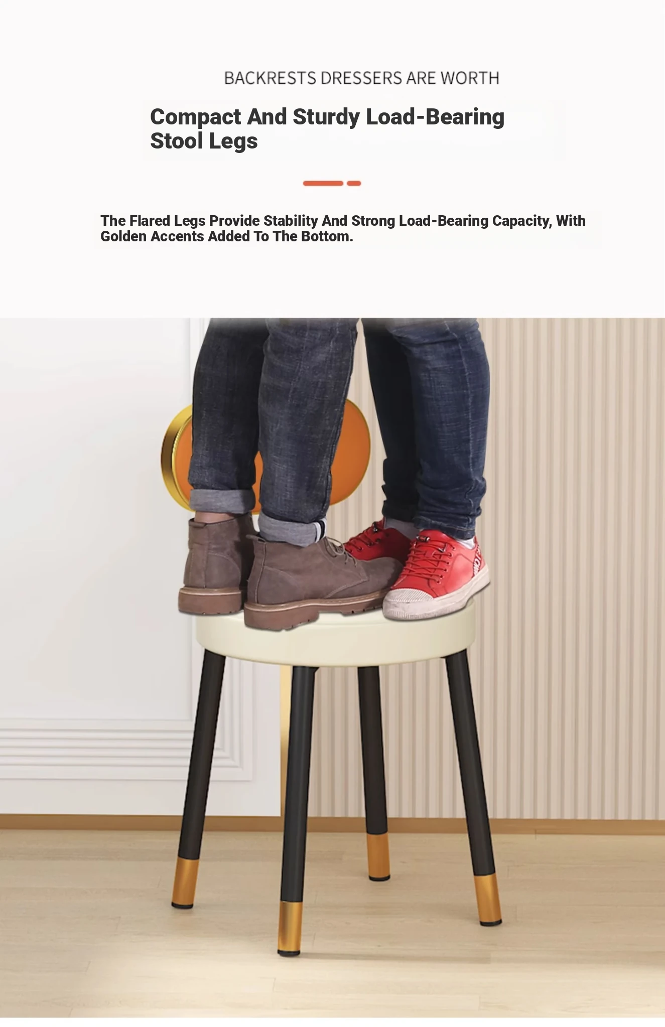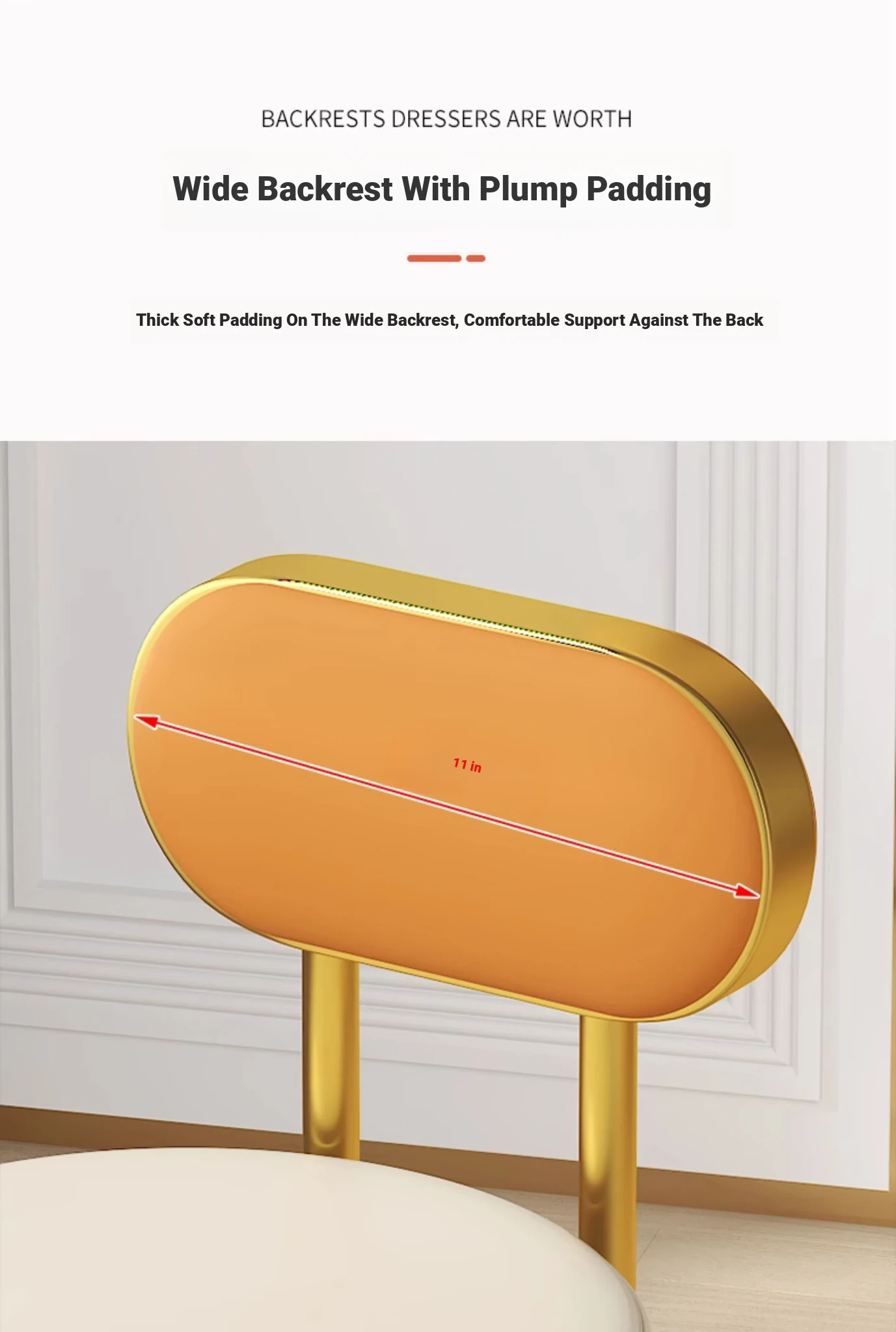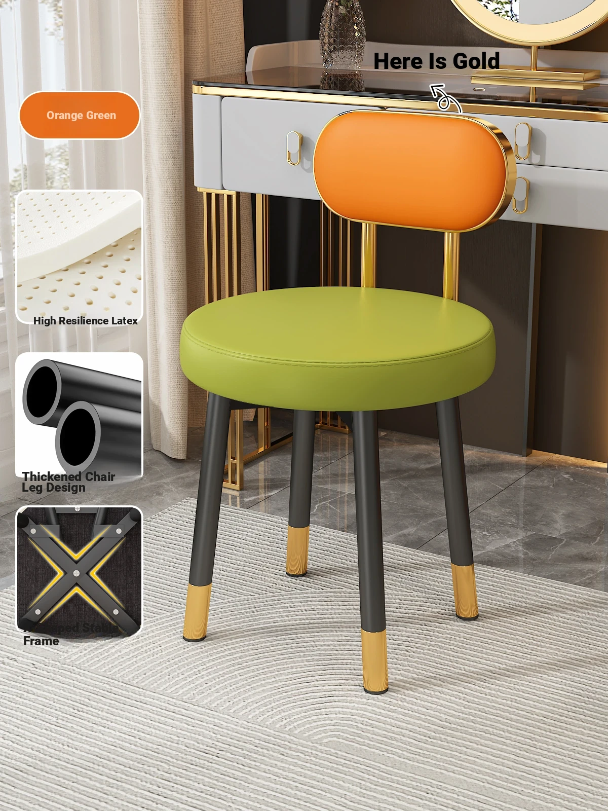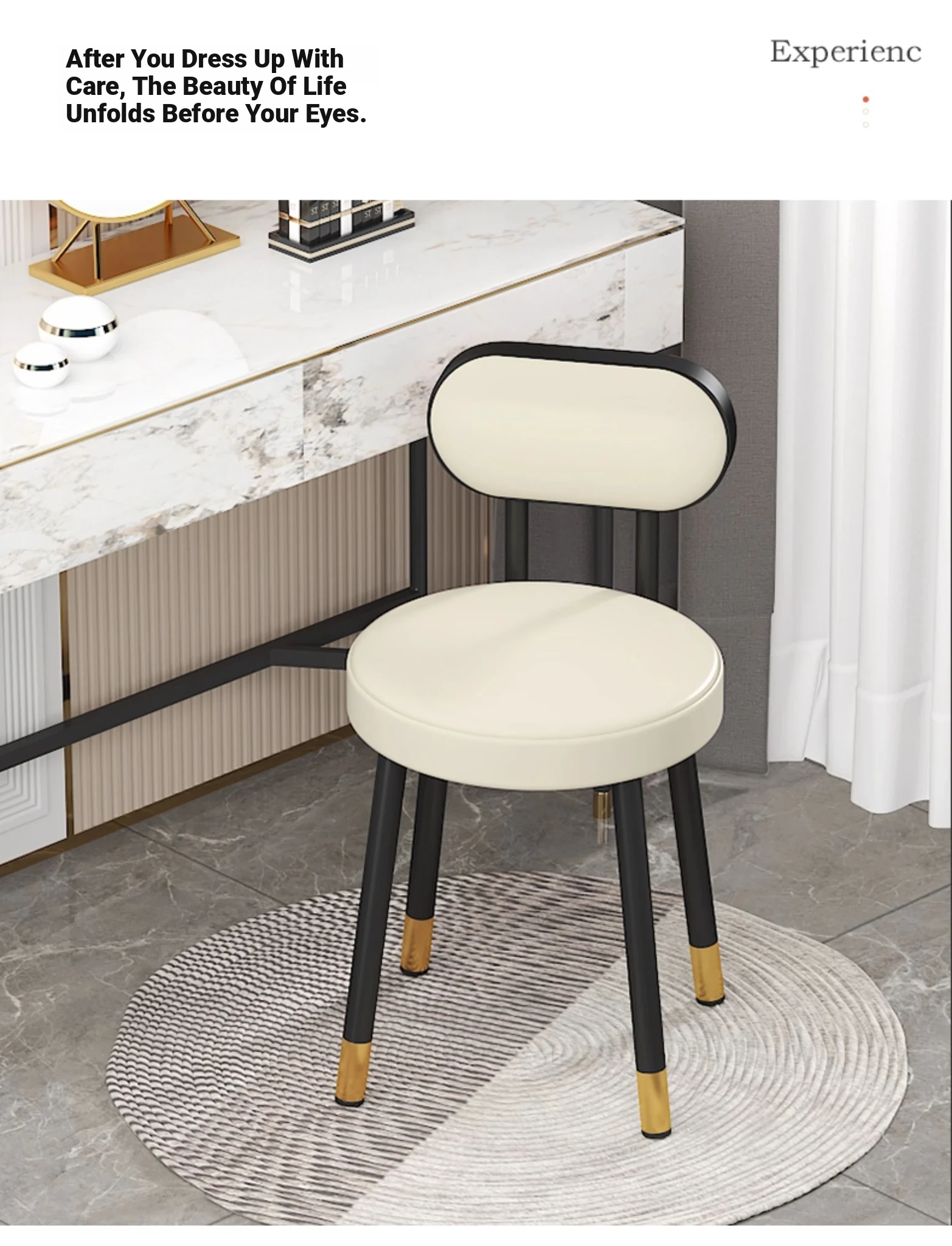 Elegant Home Makeup Stool - Luxury Feel for Women’s Bedroom Vanity. Stylish Backrest Chair, Compact Dining Chair, Perfect Round Stool for Any Space.