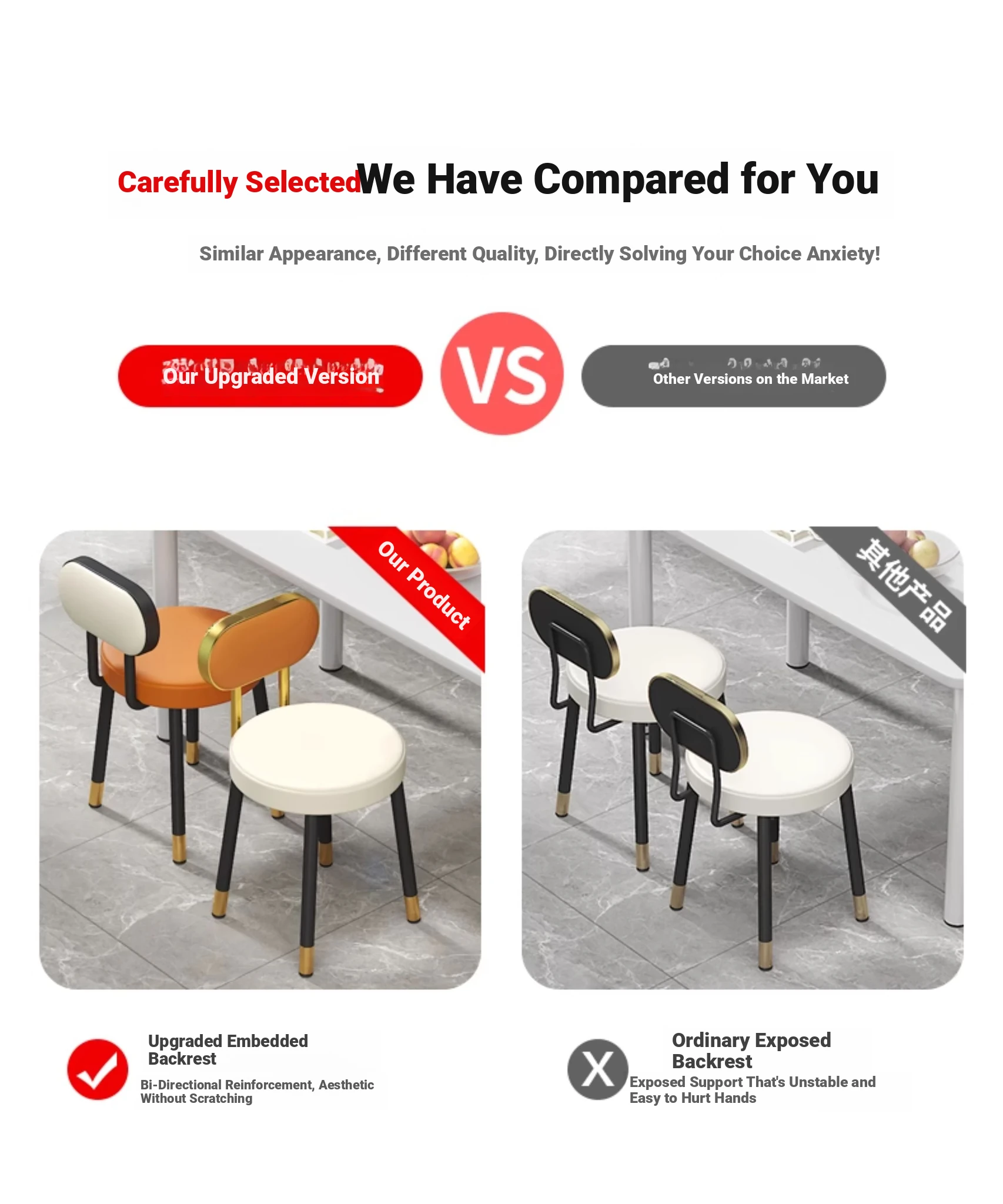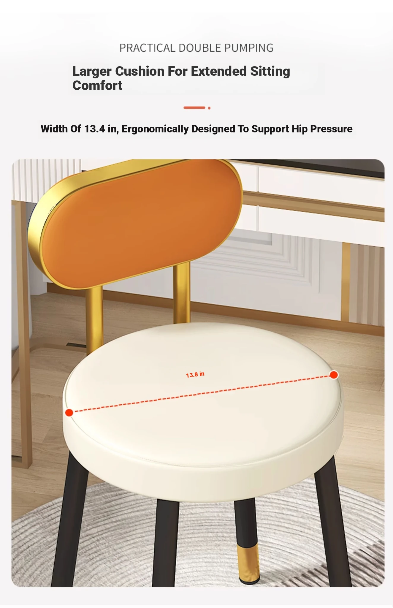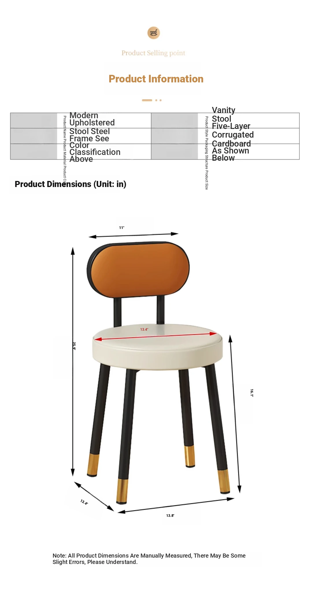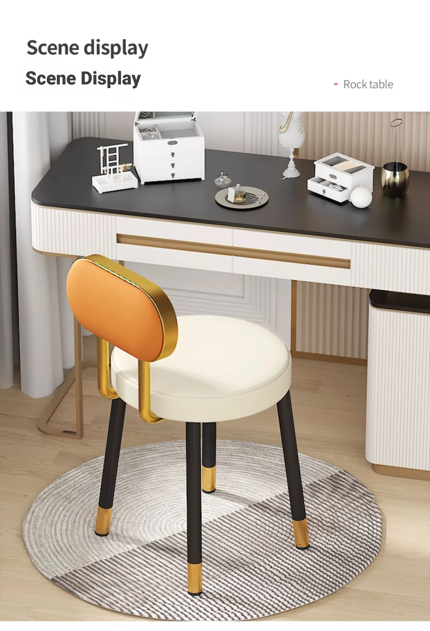 Elegant Home Makeup Stool - Luxury Feel for Women’s Bedroom Vanity. Stylish Backrest Chair, Compact Dining Chair, Perfect Round Stool for Any Space.