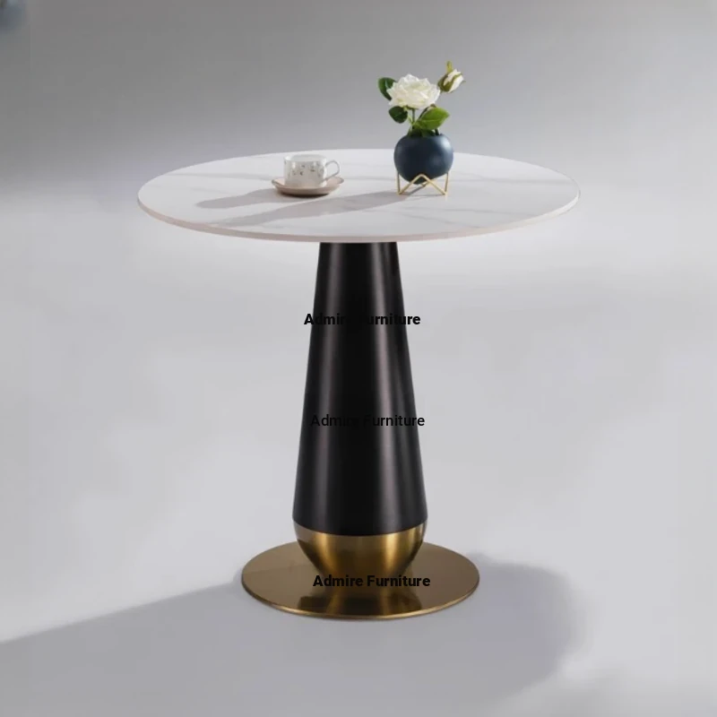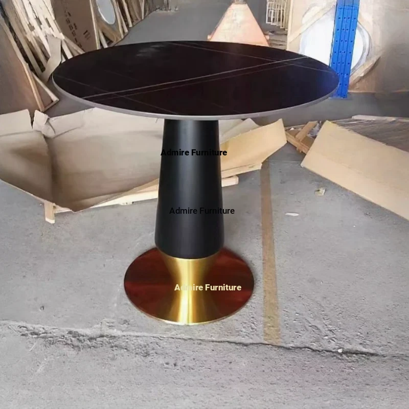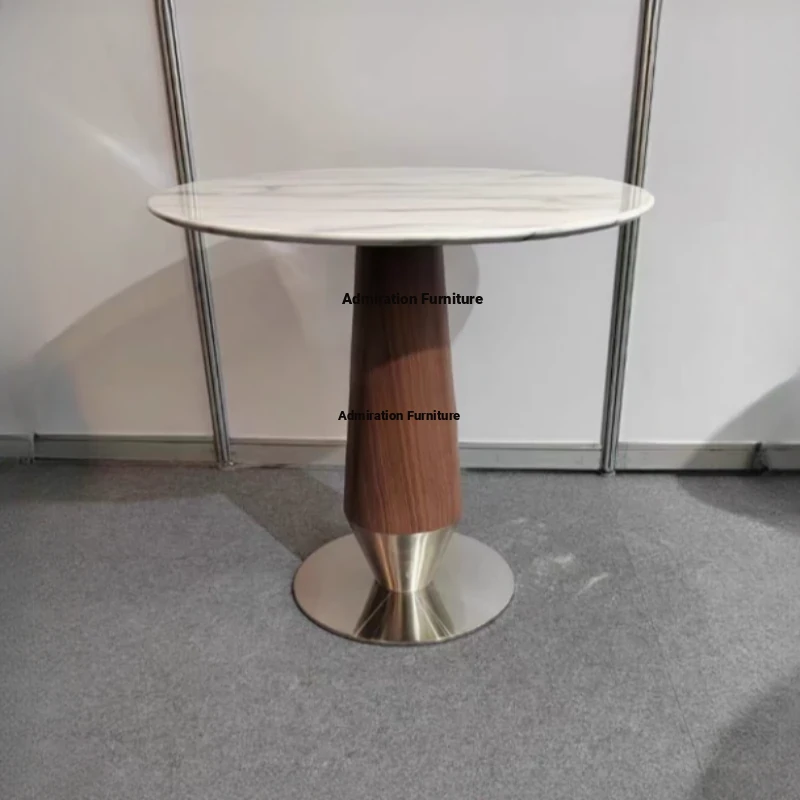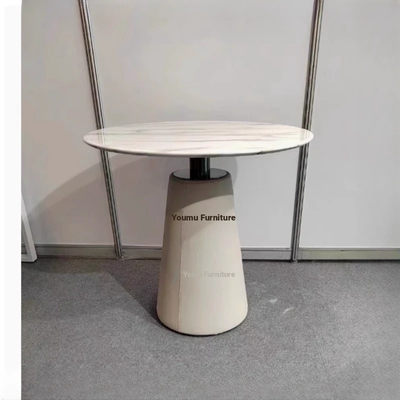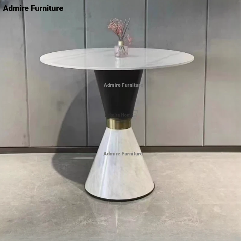 Elegant Lobby Reception Desk and Chair Set - Perfect for Milk Tea Shops, Real Estate Offices, and Western Restaurants. Stylish Small Round Table with Durable Rock Slab and Marble Finish for Home Use.