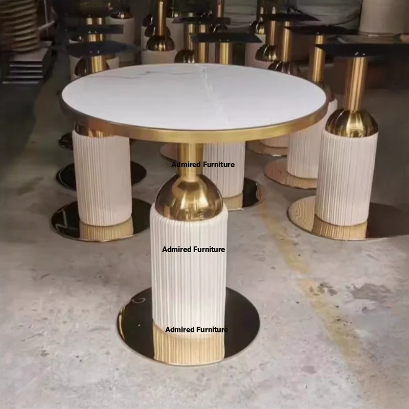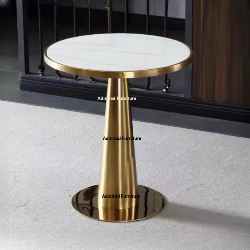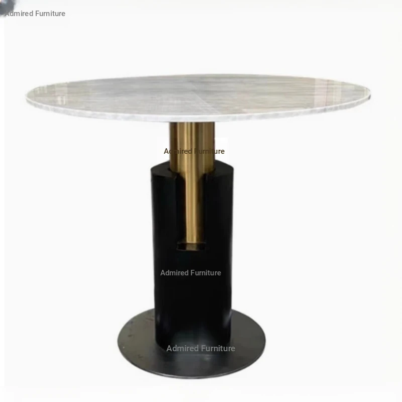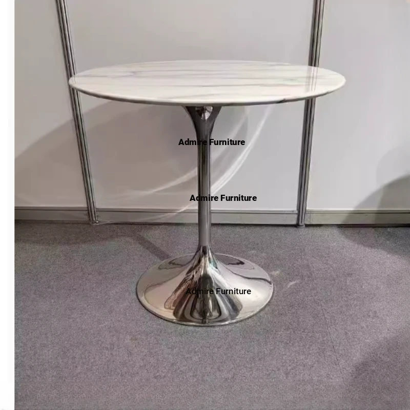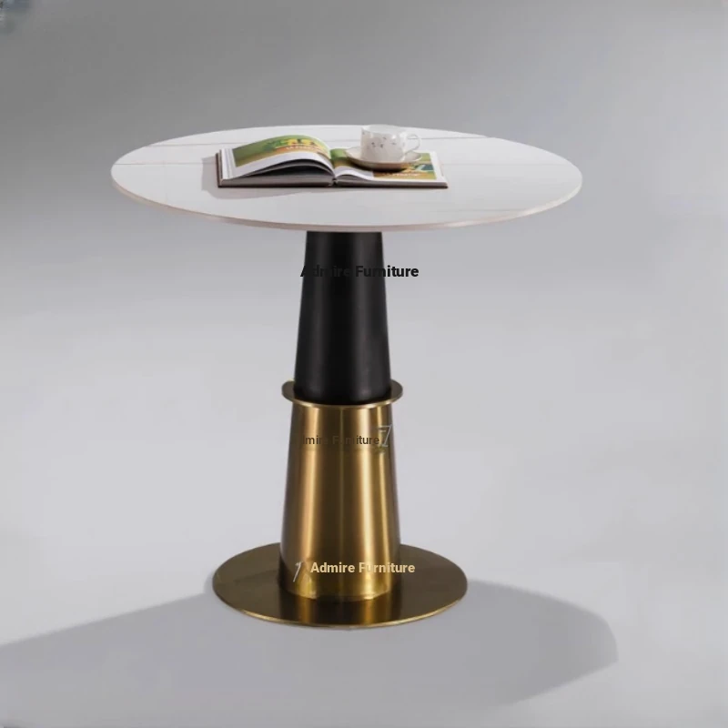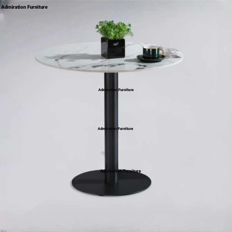 Elegant Lobby Reception Desk and Chair Set - Perfect for Milk Tea Shops, Real Estate Offices, and Western Restaurants. Stylish Small Round Table with Durable Rock Slab and Marble Finish for Home Use.
