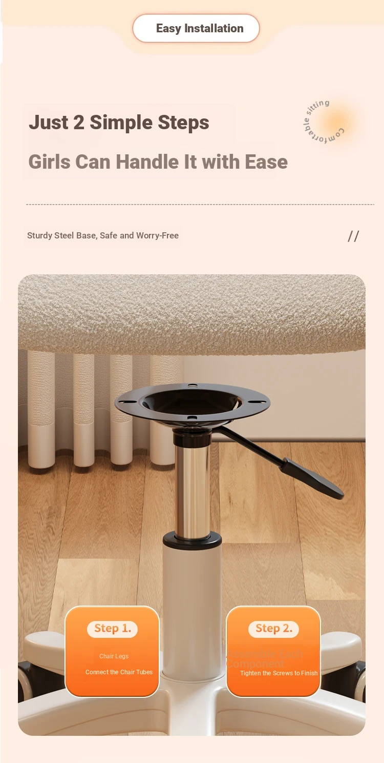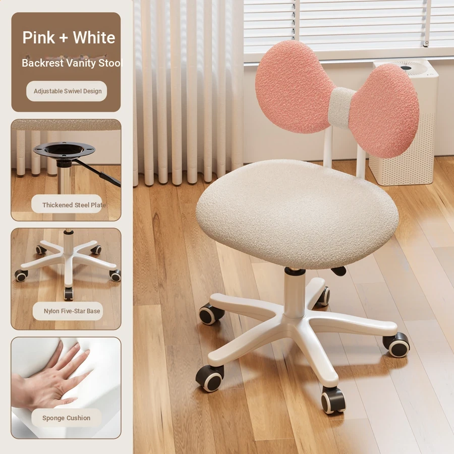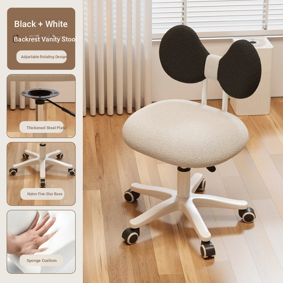 Elegant Luxury Makeup Stool for Bedroom - Modern Minimalist Vanity Chair for Small Spaces, Ideal for Home Use and Nail Art.