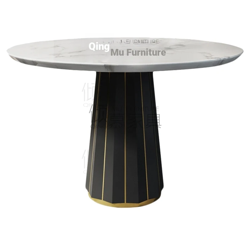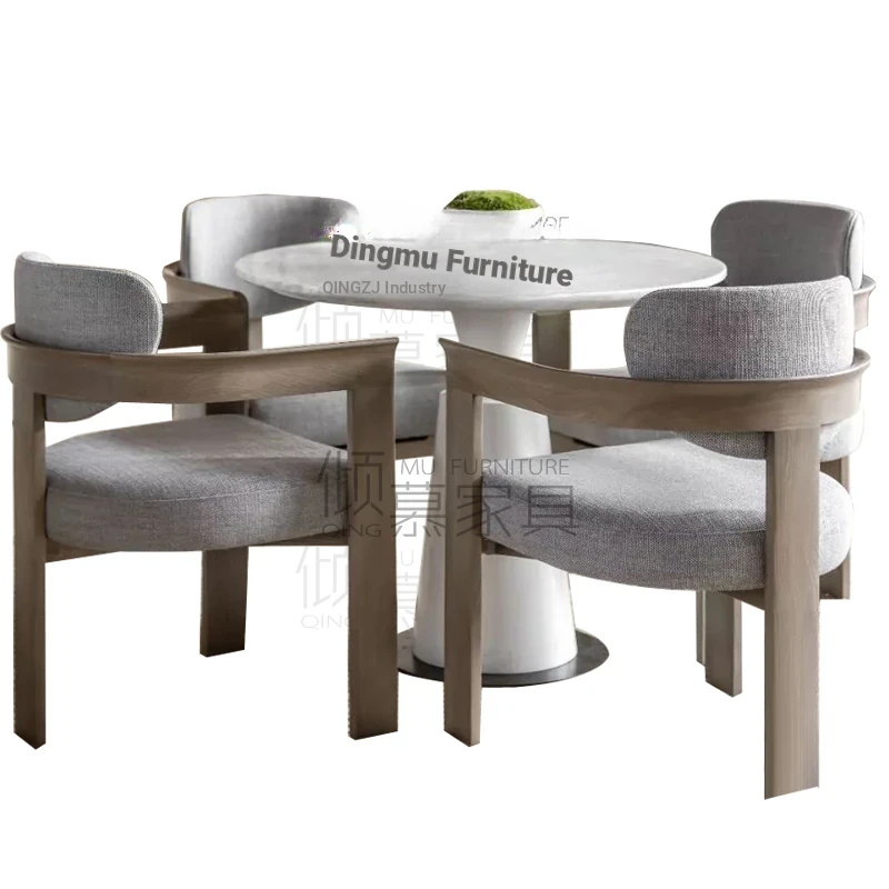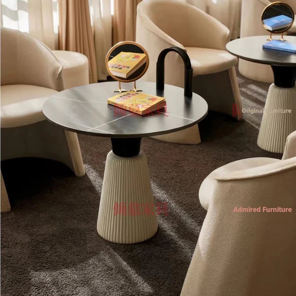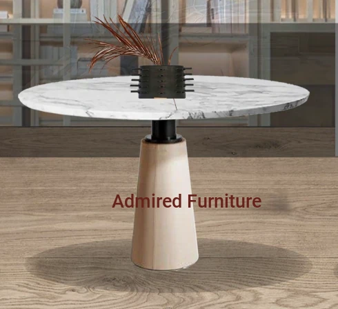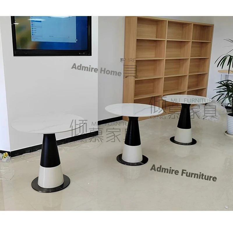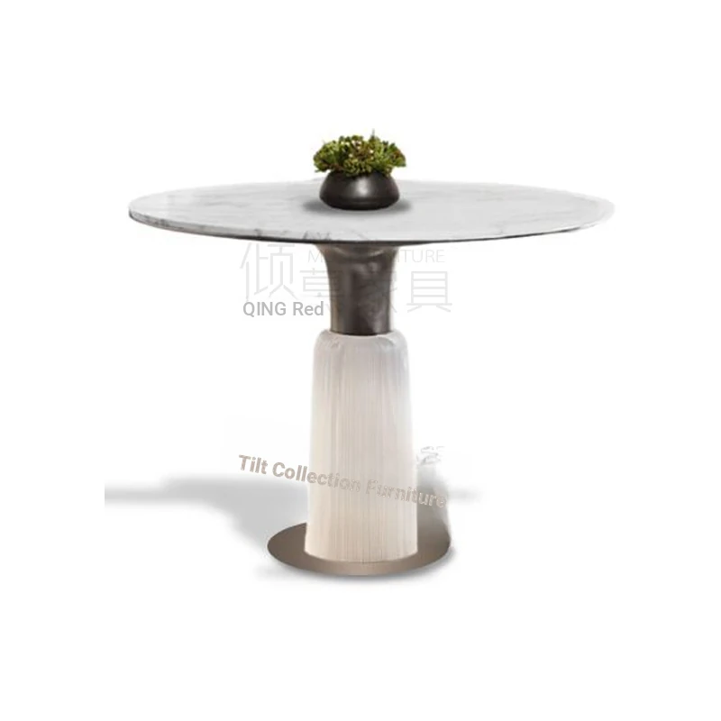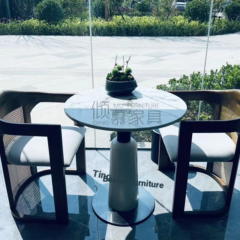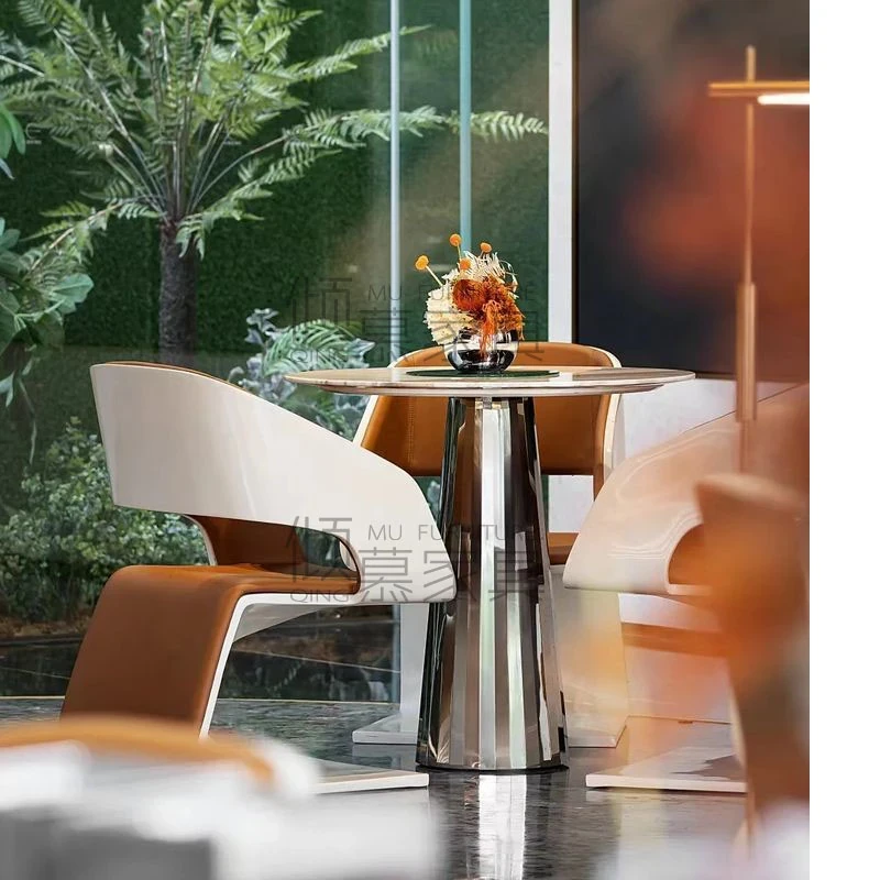 Elegant Marble Dining Table Set for Modern Showrooms - Chic Round Table and Chairs Combination for Reception and Casual Meetings
