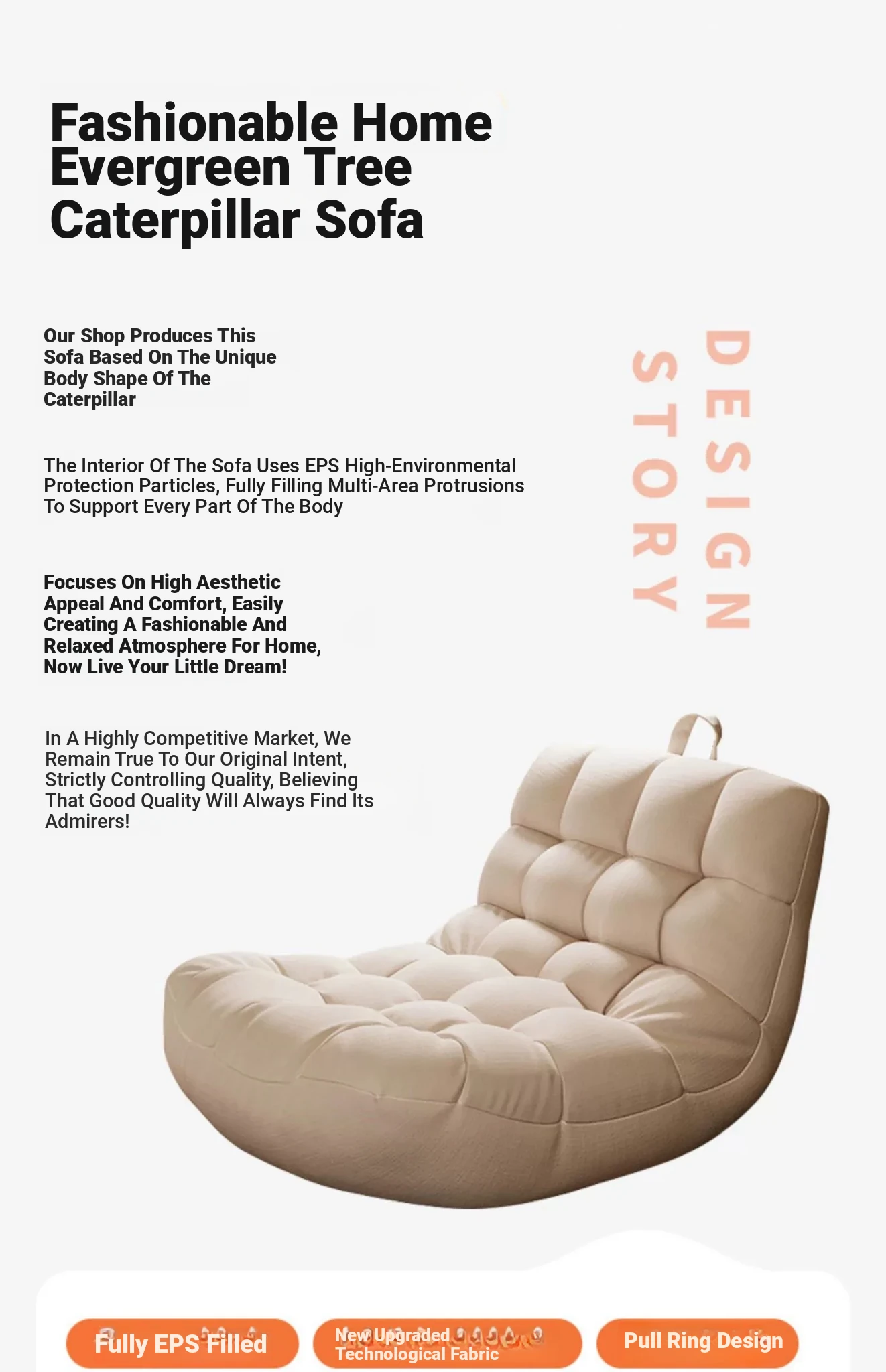 FALVLITE Cozy Caterpillar Single Sofa Chair - Perfect for Relaxation in Your Bedroom, Living Room, or Balcony. Ideal for Tatami and Leisure Moments!