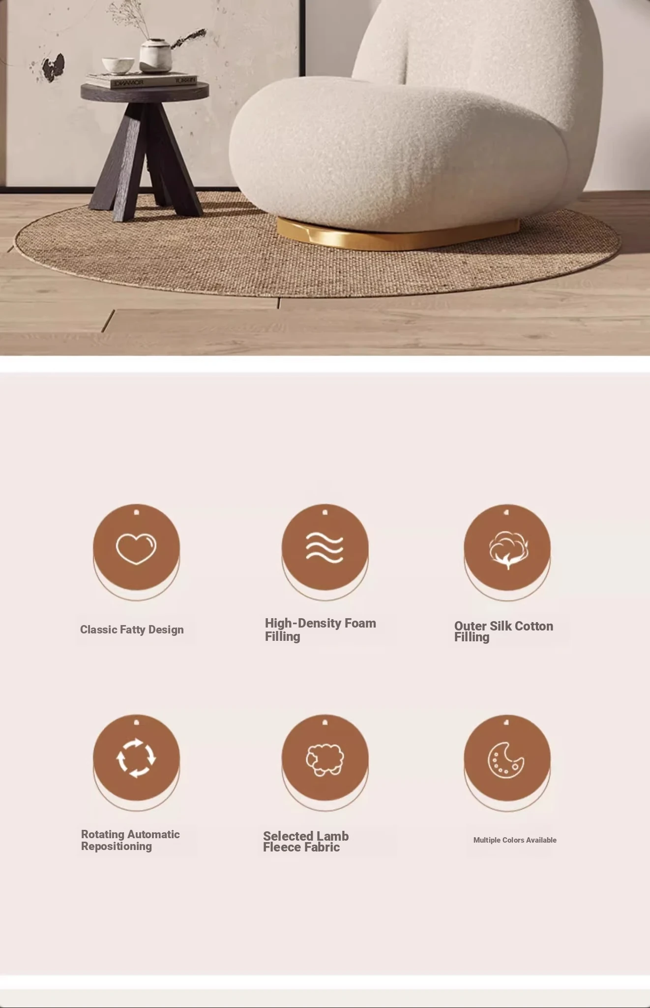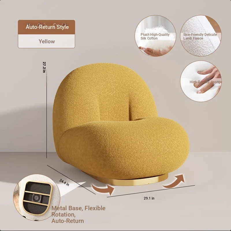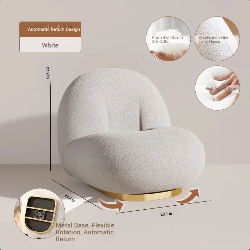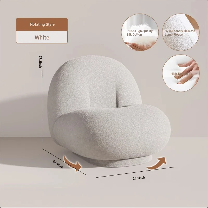 FALVLITE Cozy Lamb Fleece Lounge Chair - Trendy INS Style Lazy Sofa, Reclining, Sleeping, and Rotating Armchair for Ultimate Comfort