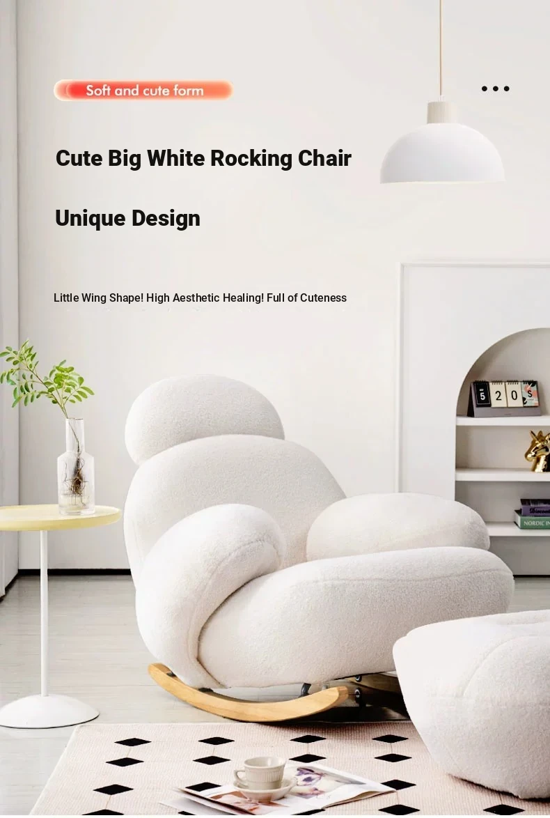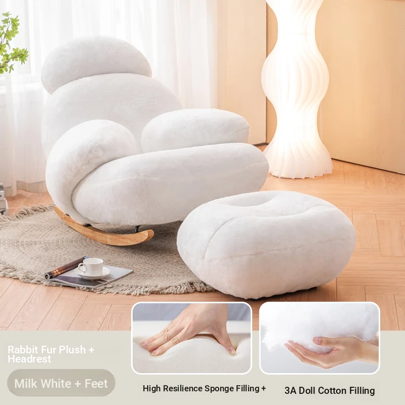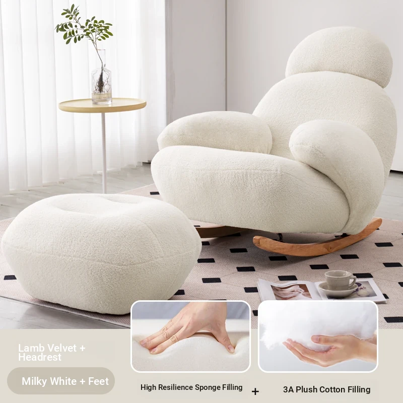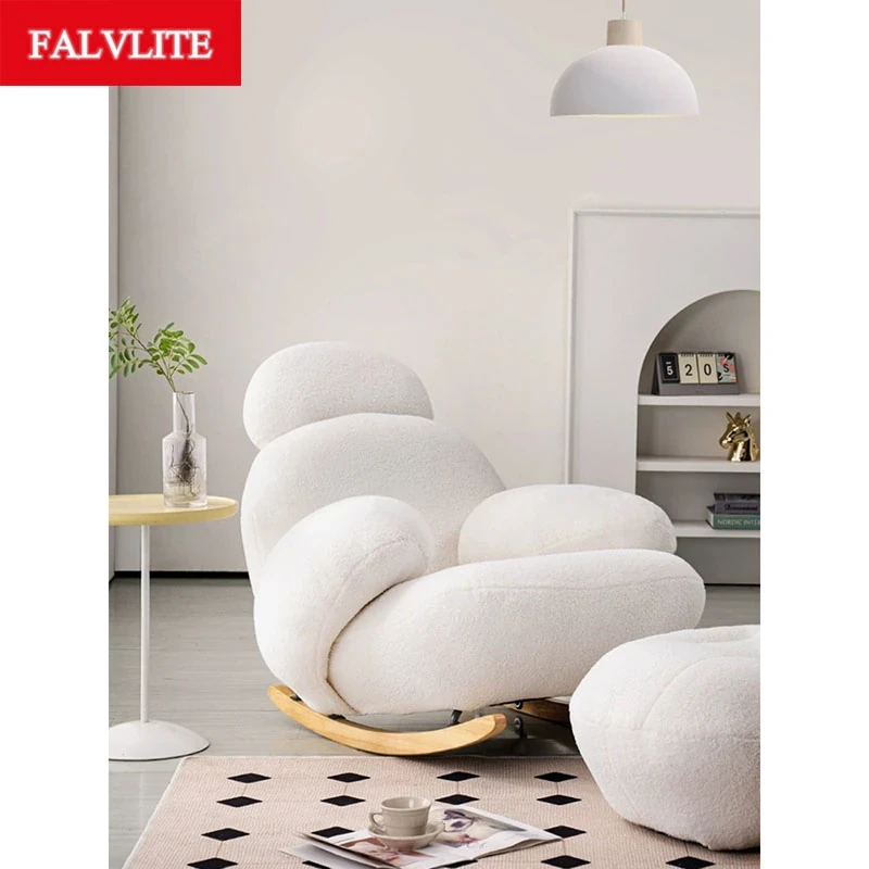 FALVLITE Cozy White Lazy Sofa Chair - Perfect for Home, Bedroom, Living Room, or Balcony - Comfortable Rocking Chair for Ultimate Relaxation